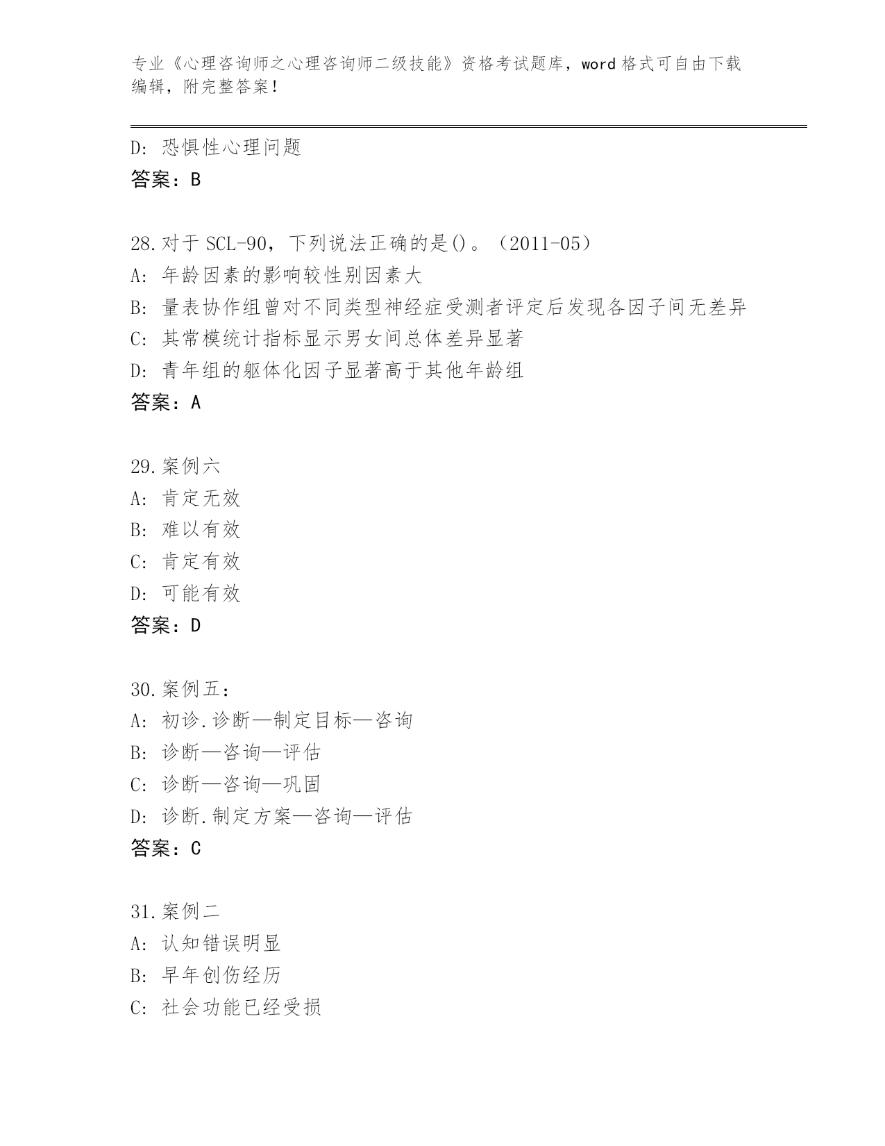 内部使用广东省《心理咨询师之心理咨询师二级技能》资格考试题库(夺冠)