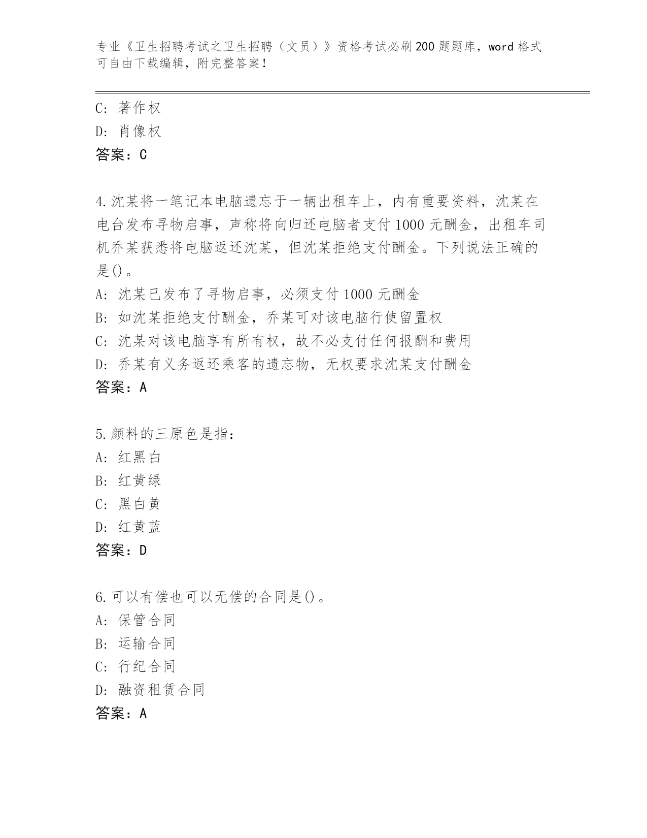 2024年河北省《卫生招聘考试之卫生招聘(文员)》考试必刷200题通关秘籍题库(有一套)