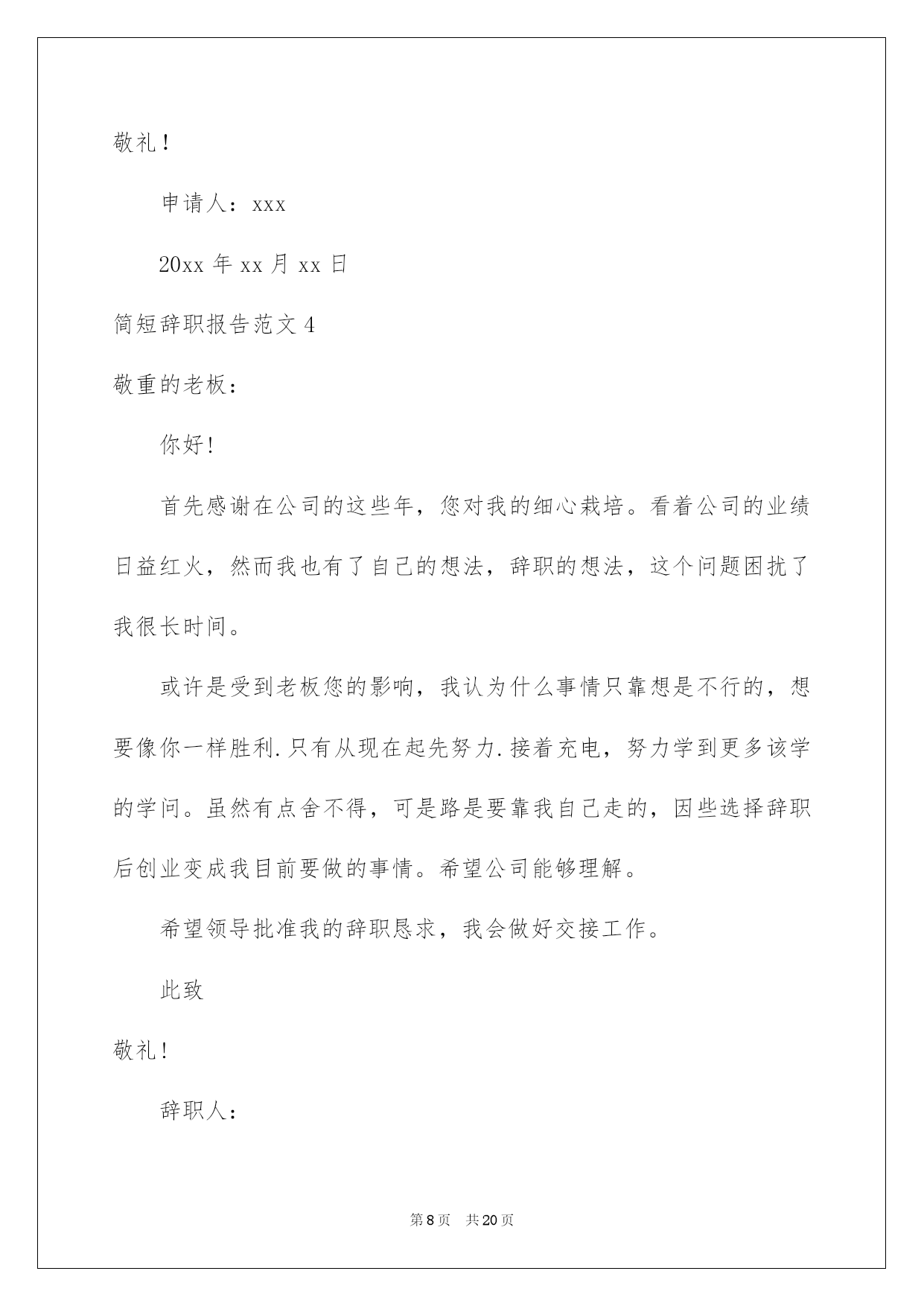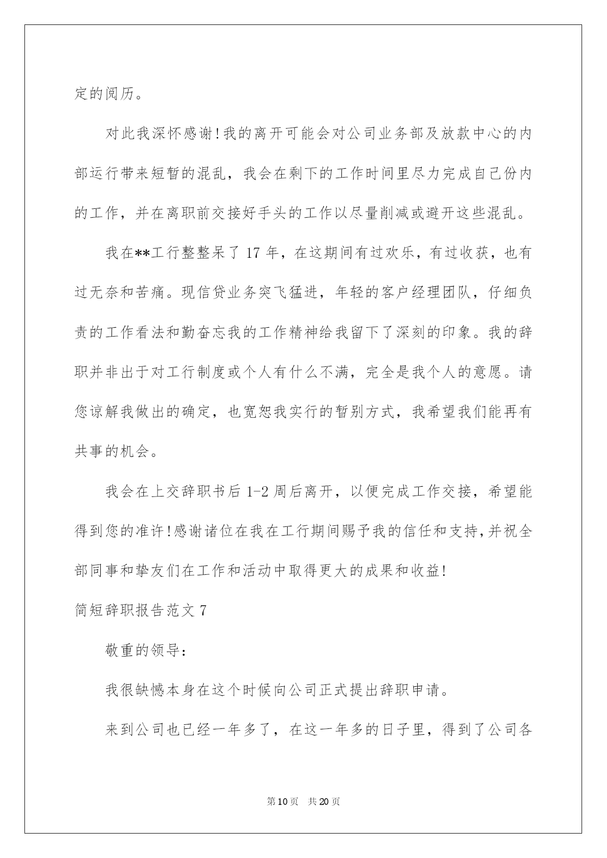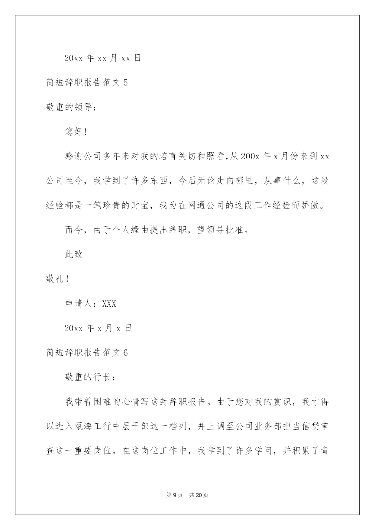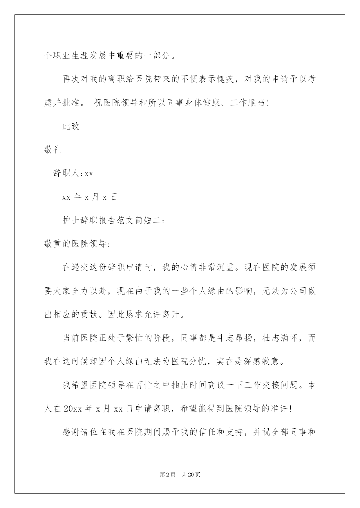 第PAGE\*Arabic\*MERGEFORMAT20页共NUMPAGES\*Arabic\*MERGEFORMAT20页第PAGE\*MERGEFORMAT20页共NUMPAGES\*MERGEFORMAT20页第PAGE\*MERGEFORMAT20页共NUMPAGES\*MERGEFORMAT20页第PAGE\*MERGEFORMAT20页共NUMPAGES\*MERGEFORMAT20页第PAGE\*MERGEFORMAT20页共NUMPAGES\*MERGEFORMAT20页第PAGE\*MERGEFORMAT20页共NUMPAGES\*MERGEFORMAT20页第PAGE\*MERGEFORMAT20页共NUMPAGES\*MERGEFORMAT20页第PAGE\*MERGEFORMAT20页共NUMPAGES\*MERGEFORMAT20页第PAGE\*MERGEFORMAT20页共NUMPAGES\*MERGEFORMAT20页第PAGE\*MERGEFORMAT20页共NUMPAGES\*MERGEFORMAT20页第PAGE\*MERGEFORMAT20页共NUMPAGES\*MERGEFORMAT20页2022简短辞职报告简短辞职报告范文进入一家公司一段时间后,有时会因为一些缘由离开岗位,这也意味着,须要写辞职报告了。辞职报告怎么写才合适呢?下面是我收集整理的简短辞职报告范文,希望能够帮助到大家。简短辞职报告范文1敬重的领导:您好!首先感谢您在百忙中抽出时间阅读我的辞职信。我是怀着非常的心情写这封辞职信的。自我进入医院之后,由于您对我的关切、指导和信任,使我在护士行业获得了许多机遇和挑战。经过这段时间在医院的工作,我在护士领域学到了许多学问,积累了肯定的阅历,对此我深表感谢。我已打算好离职,并且做好工作交接,以削减因我的离职而给医院带来的不便。特别感谢您在这段时间里对我的教育和照看。在医院的这段经验于我而言特别宝贵。将来无论什么时候,我都会为自己曾经是医院的一员而感到荣幸。我确信在医院的这段工作经验将是我整个职业生涯发展中重要的一部分。再次对我的离职给医院带来的不便表示愧疚,对我的申请予以考虑并批准。祝医院领导和所以同事身体健康、工作顺当!此致敬礼辞职人:xxxx年x月x日护士辞职报告范文简短二:敬重的医院领导:在递交这份辞职申请时,我的心情非常沉重。现在医院的发展须要大家全力以赴,现在由于我的一些个人缘由的影响,无法为公司做出相应的贡献。因此恳求允许离开。当前医院正处于繁忙的阶段,同事都是斗志昂扬,壮志满怀,而我在这时候却因个人缘由无法为医院分忧,实在是深感歉意。我希望医院领导在百忙之中抽出时间商议一下工作交接问题。本人在20xx年x月xx日申请离职,希望能得到医院领导的准许!感谢诸位在我在医院期间赐予我的信任和支持,并祝全部同事和挚友们在工作和活动中取得更大的成果和收益!此致敬礼!辞职人:xxxx年x月x日护士辞职报告范文简短三:敬重的医院领导:您好!首先感谢您在百忙之中抽出时间阅读我的辞职信。我是怀着非常困难的心情写这封辞职信的。自我进入医院之后,由于您对我的关切、指导和信任,使我在护士行业获得了许多机遇和挑战.经过这段时间在医院的工作,我在护士领域学到了许多学问,积累了肯定的阅历,对此我深表感谢。由于我自身身体不适,不能胜任护士一职。为此,我进行了长时间的思索,为了不因为我个人实力的缘由而影响医院的运作,经过深思熟虑之后我确定辞去目前在医院和护士组所担当的职务和工作。我知道这个过程会给您带来肯定程度上的不便,对此我深表愧疚。特别感谢您在这段时间里对我的教育和照看。在医院的这段经验于我而言特别宝贵,将来无论什么时候,我都会为自己曾经是医院的一员而感到荣幸。我确信在医院的这段工作经验将是我整个职业生涯发展中相当重要的一部分。今日,请允许我在此正式向医院辞职,请领导们批准!祝医院领导和全部同事身体健康、工作顺当!再次对我的离职给医院带来的不便表示愧疚,同时我也希望医院能够体恤我的个人实际,对我的申请予以考虑并批准。此致辞职人:xxxx年x月x日护士辞职报告范文简短四:敬重的医院领导:您好!首先感谢您在百忙之中抽出时间阅读我的辞职信。我是怀着非常困难的心情写这封辞职信的。自我进入医院之后,由于各位领导、同事对我的关切、指导和信任,使我在护士岗位上获得了许多收获。经过这段时间在医院的工作,我在护士职业领域学到了许多新学问,积累了肯定阅历,对此我深表感谢。由于我自身身体不适,及便利照看家庭之缘由,在短期内自感难以全身心投入护士岗位。为此,我经过了慎重