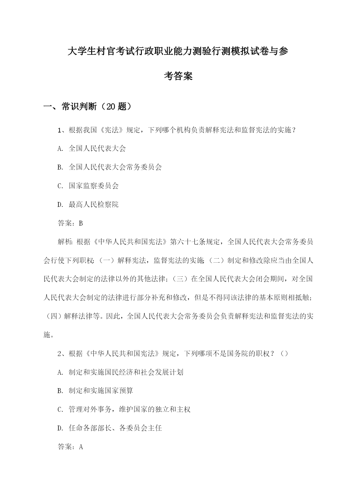 大学生村官考试行政职业能力测验行测模拟试卷与参考答案.docx