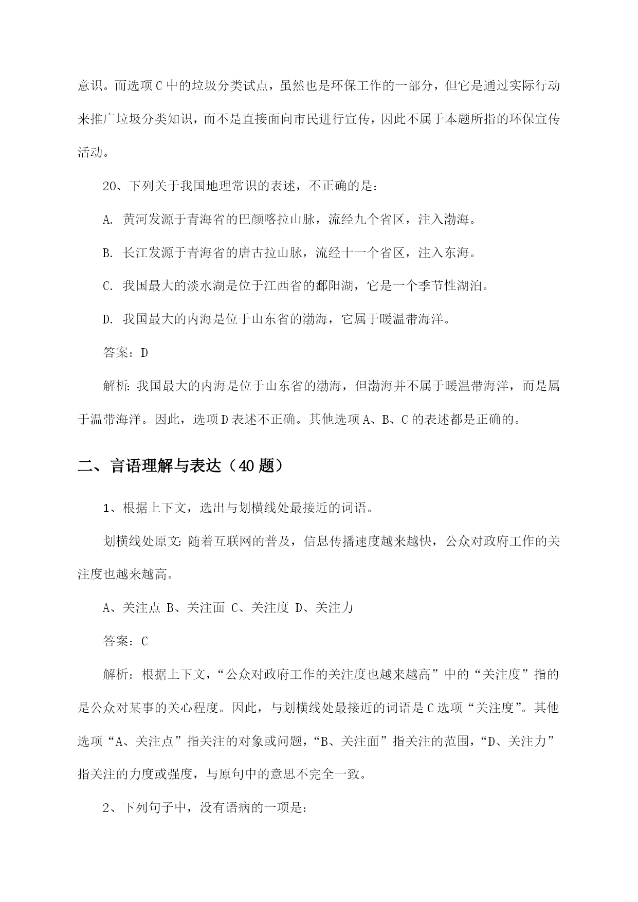 大学生村官考试行政职业能力测验行测模拟试卷与参考答案