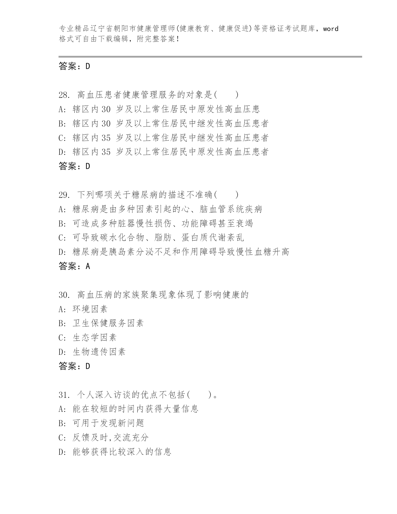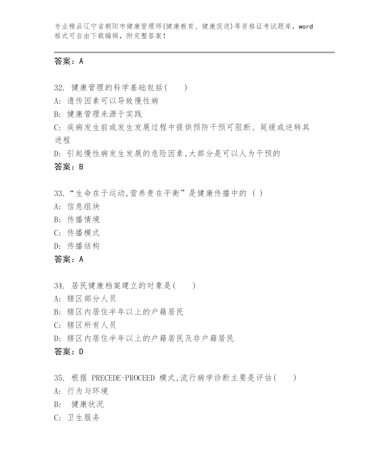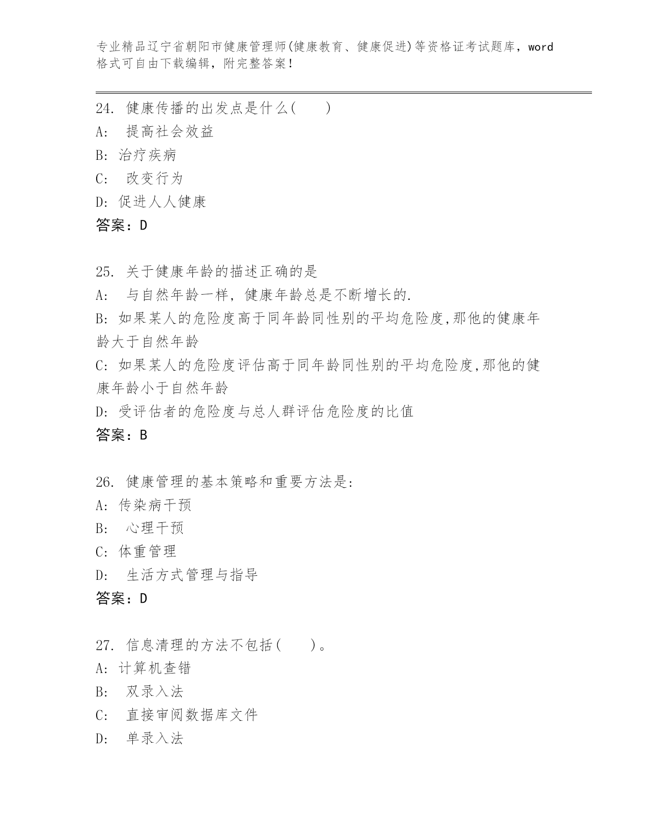 辽宁省朝阳市健康管理师(健康教育、健康促进)等资格证考试王牌题库精品(能力提升)