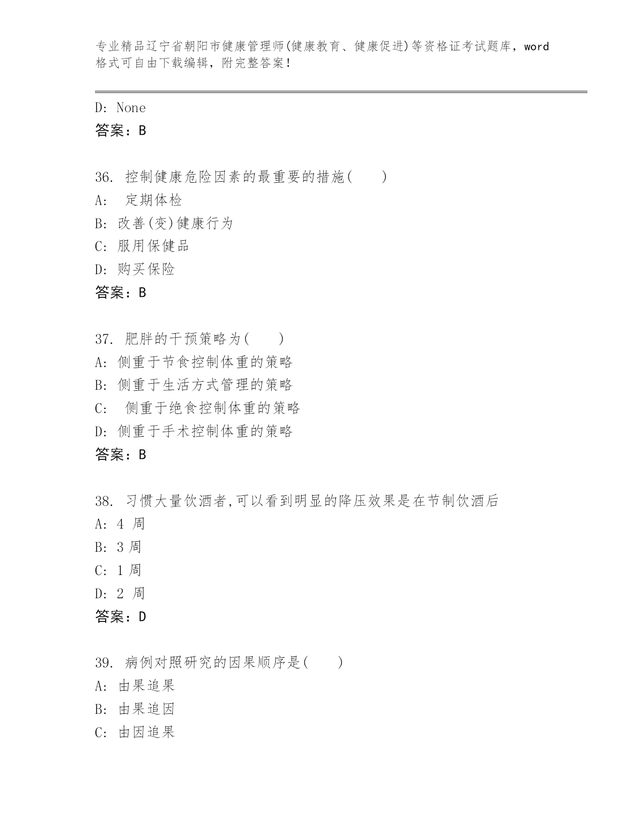 辽宁省朝阳市健康管理师(健康教育、健康促进)等资格证考试王牌题库精品(能力提升).docx