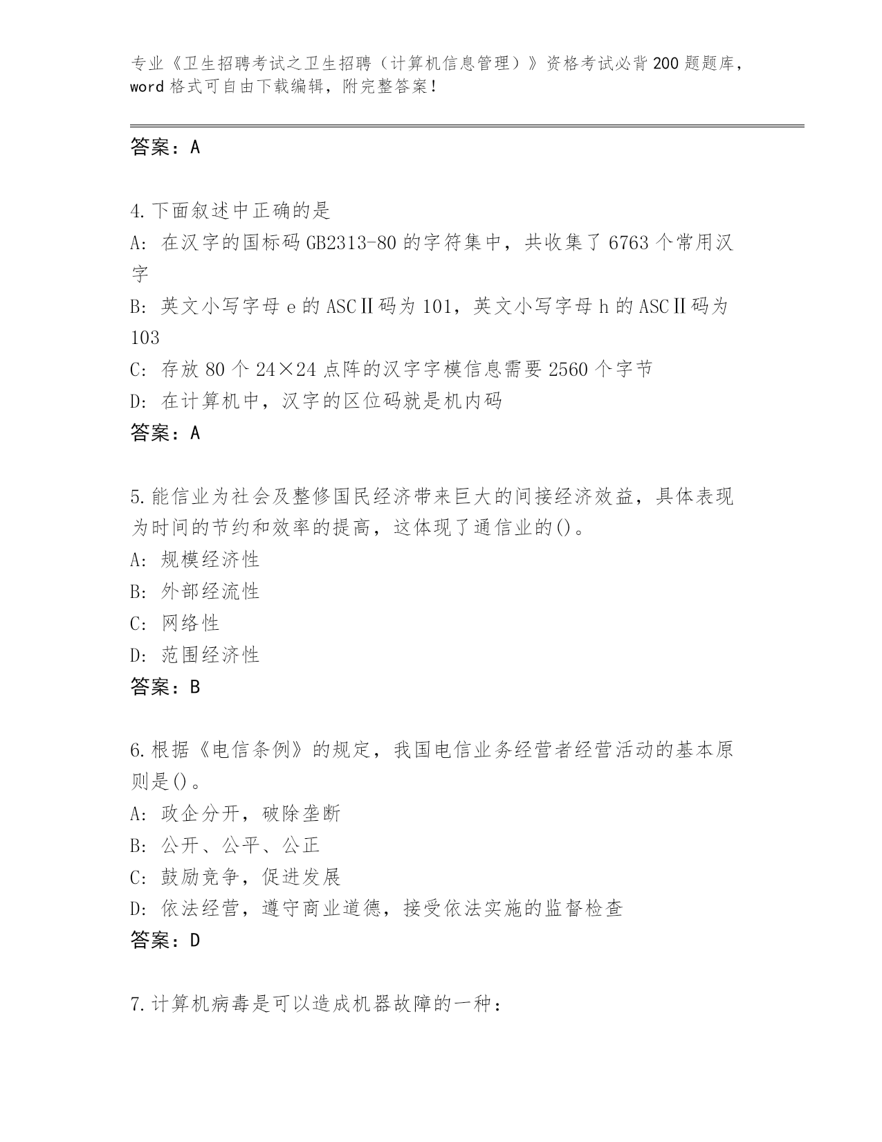 山西省神池县整理《卫生招聘考试之卫生招聘(计算机信息管理)》资格考试必背200题题库(夺分金卷)