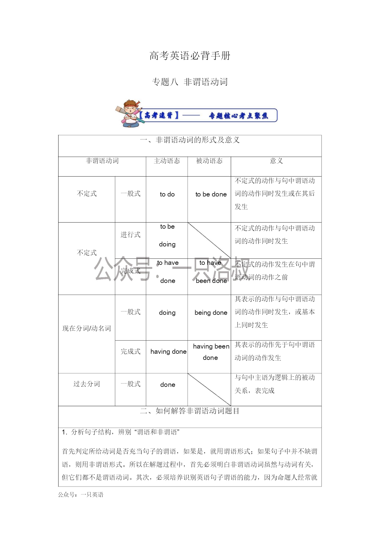 专题 08 高考英语语法【非谓语动词】核心考点聚焦 -高考英语必背手册