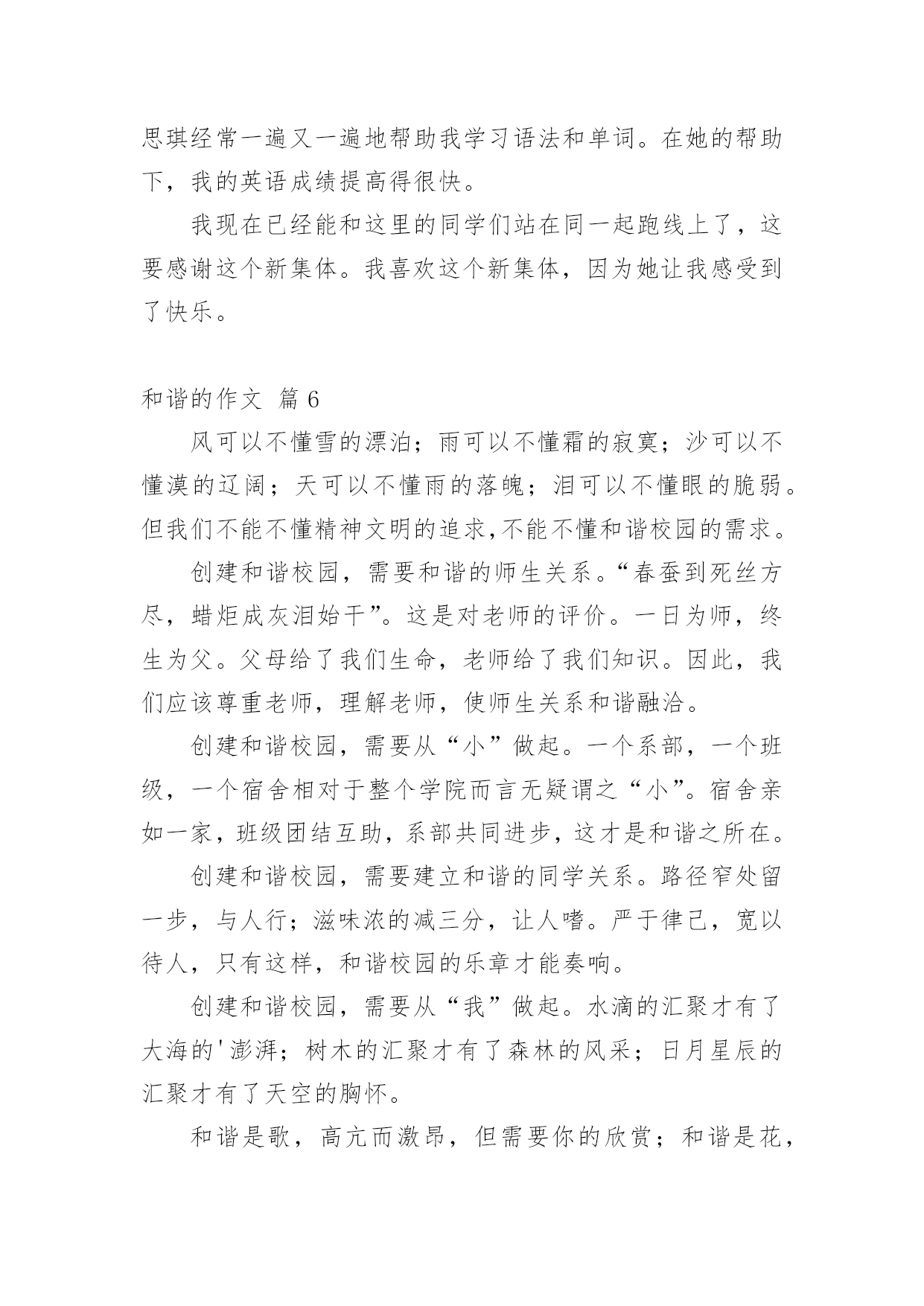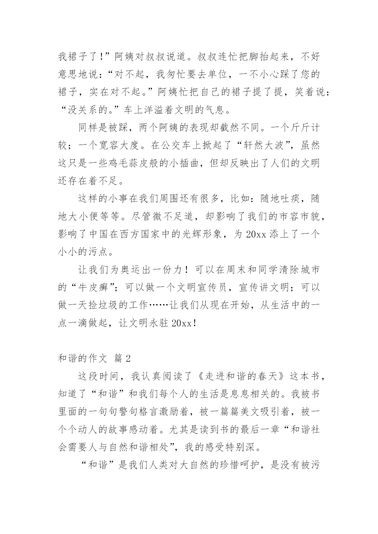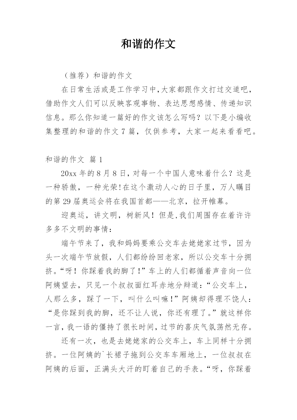和谐的作文(推荐)和谐的作文在日常生活或是工作学习中,大家都跟作文打过交道吧,借助作文人们可以反映客观事物、表达思想感情、传递知识信息。那么你知道一篇好的作文该怎么写吗?以下是小编收集整理的和谐的作文7篇,仅供参考,大家一起来看看吧。和谐的作文篇120xx年的8月8日,对每一个中国人意味着什么?这是一种骄傲,一种光荣!在这个激动人心的日子里,万人瞩目的第29届奥运会将在我国首都——北京,拉开帷幕。迎奥运,讲文明,树新风!但是,我们周围存在着许许多多不文明的事情:端午节来了,我和妈妈要乘公交车去姥姥家过节,因为头一次端午节放假,人们都纷纷回老家,所以公交车十分拥挤。“呀!你踩着我的脚了!”车上的人们都循着声音向一位阿姨望去,只见一个叔叔面红耳赤地分辩道:“公交车上,人那么多,踩了一下,叫什么叫嘛!”阿姨却得理不饶人:“是你踩到我的脚,还不让人说,你还有理了。”就这样你一言,我一语的僵持了很长时间,过节的喜庆气氛荡然无存。还有一次,也是去姥姥家的公交车上,车上同样十分拥挤。一位阿姨的`长裙子拖到公交车车厢地上,一位叔叔在阿姨的后面,正满头大汗的盯着自己的手表。“呀,你踩着我裙子了!”阿姨对叔叔说道。叔叔连忙把脚抬起来,不好意思地说:“对不起,我匆忙要去单位,一不小心踩了您的裙子,实在对不起。”阿姨忙把自己的裙子提了提,笑着说:“没关系的。”车上洋溢着文明的气息。同样是被踩,两个阿姨的表现却截然不同。一个斤斤计较;一个宽容大度。在公交车上掀起了“轩然大波”,虽然这只是一些鸡毛蒜皮般的小插曲,但却反映出了人们的文明还存在着不足。这样的小事在我们周围还有很多,比如:随地吐痰,随地大小便等等。尽管微不足道,却影响了我们的市容市貌,影响了中国在西方国家中的光辉形象,为20xx添上了一个小小的污点。让我们为奥运出一份力!可以在周末和同学清除城市的“牛皮癣”;可以做一个文明宣传员,宣传讲文明;可以做一天捡垃圾的工作……让我们从现在开始,从生活中的一点一滴做起,让文明永驻20xx!和谐的作文篇2这段时间,我认真阅读了《走进和谐的春天》这本书,知道了“和谐”和我们每个人的生活是息息相关的。我被书里面的一句句警句格言激励着,被一篇篇美文吸引着,被一个个动人的故事感动着。尤其是读到书的最后一章“和谐社会需要人与自然和谐相处”,我的感受特别深。“和谐”是我们人类对大自然的珍惜呵护,是没有被污染的土地,是郁郁葱葱的.大森林,也是所有自由栖息成长的生命。我们人类生活在美丽的地球上,地球是我们共同的家园,我们应该好好保护她,关爱她。可是,千万年来,我们人类只知道无穷无尽地向大自然索取,而不知道去保护她,将越来越多的污染无情地抛给了她,让她不堪重负,造成了许多生物濒临灭绝,资源不断消耗,能源紧缺,环境污染……昨天,我在小区的草坪上发现了一棵“一枝黄花”,它看上去很漂亮,可我知道它是一种繁殖能力超强的外来物种。前几年,就是这“一枝黄花”在我们嘉兴地区四处蔓延,严重破坏了本土植被的多样性和生态平衡,导致绿化地和灌木成片死亡,橘树的大面积减产。我急忙跑过去仔细观察了一番,高兴地说:“还好花正开得旺,还没有结出种子。”说完,我就用力把它连根拔起,扔进了垃圾箱,免得小区里四处长满它。其实,环保就在我们生活的每一个细节中,只要做个有心人,我们人人都能成为环保小卫士。当看到地上有垃圾时,弯弯腰随手把它捡起来,分类投入垃圾箱;当我们跟着爸爸妈妈上商店时,要记得带上一个环保小布袋;每天早上洗完脸,要把洗脸水保存好,这样就可以进行二次利用冲厕所了……就让我们共同努力和大自然永远和谐相处!从心做起!从我做起!从小事做起!珍惜每一滴水、每一度电、每一张纸、每一棵树、每一朵花……和谐的作文篇3吃完了晚饭,还有一点儿自由时间,我去村民的家。到了村民的家,老人们给我讲他们以前的故事,我仔细聆听。远远听见蛙声,不,她们是妇女的谈笑声。她们一边织着毛衣,一边谈论着家常事,一些年轻的人下着象棋,“将军!我赢了,给钱……”风在天空中浮动,为我们在炎热的夏天降温,仿佛它是大自然奖励我们的礼物!小花小草随风舞动婀娜多姿,让人在酷热的夏天里,舒展心情,让他们脱下了假面具。树上的鸟雀在枝头上鸣叫,这里没有城市里的尾气和吵杂的声音,让鸟儿们快乐的生活在树上,不会当心捕猎者的追捕,在这里,你们无需当心!蛙鼓在丛林响起伴随着昆虫发出清脆的声音,这是个优美的交响乐,带给了人们无限的舒畅。小河里有许多人在船上“散步”,游赏美丽的.风景,困了拿出自家编的草垫,铺在船板,听着那交响乐,渐渐的睡了,当他们醒来的时候,便临来公鸡的叫声。老人们,拉着自己珍爱有加的二胡,拉出的声音有些悲伤,又有些忧伤,是他们在想念儿女的幽乡。这是一个和谐的农村生活,真想留下来呀!和谐的作文篇4今天是正月初四。这是一个阳光明媚的早晨。吃完早餐