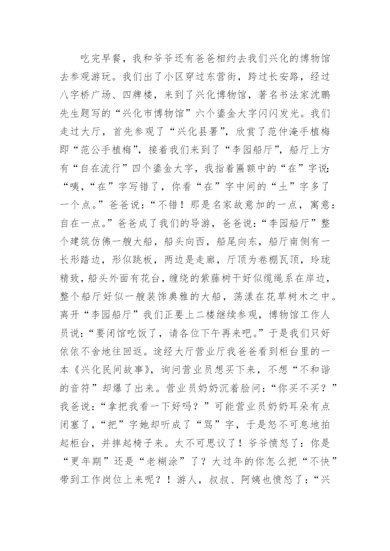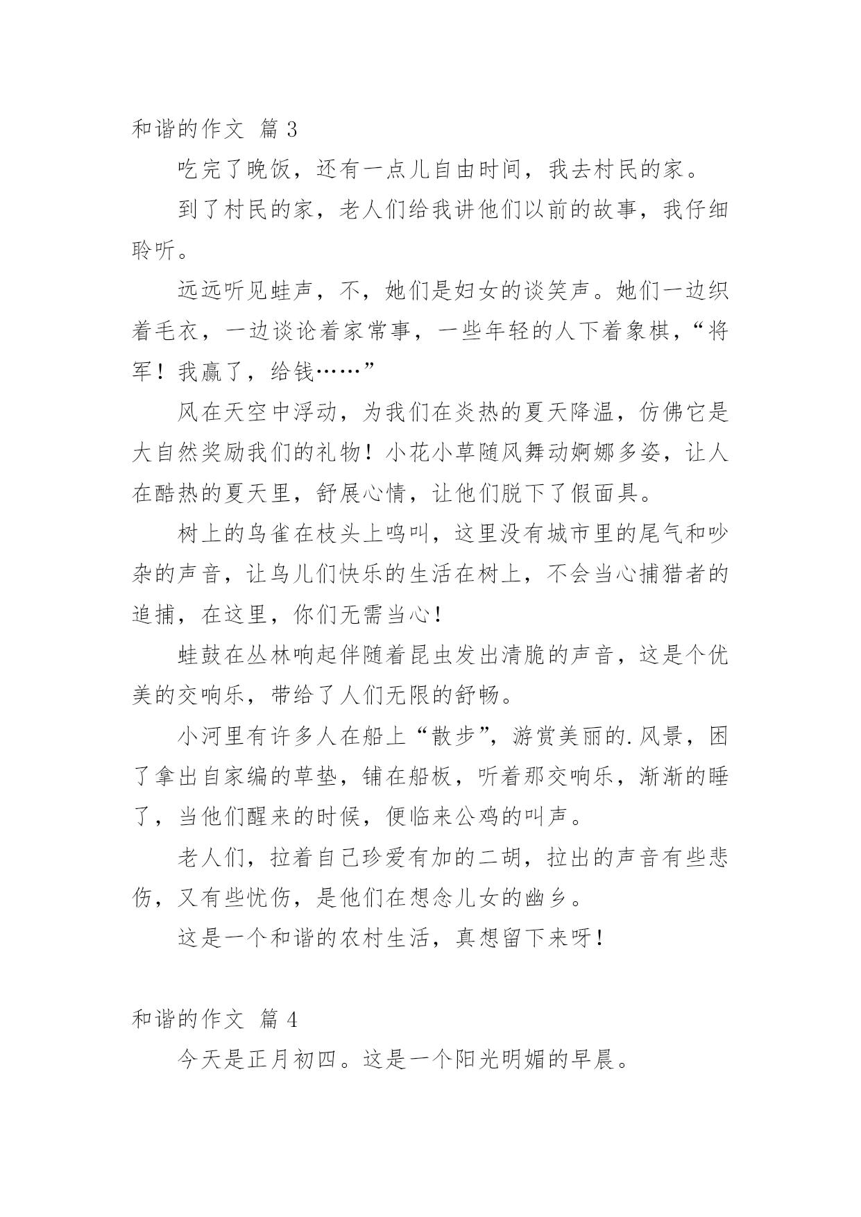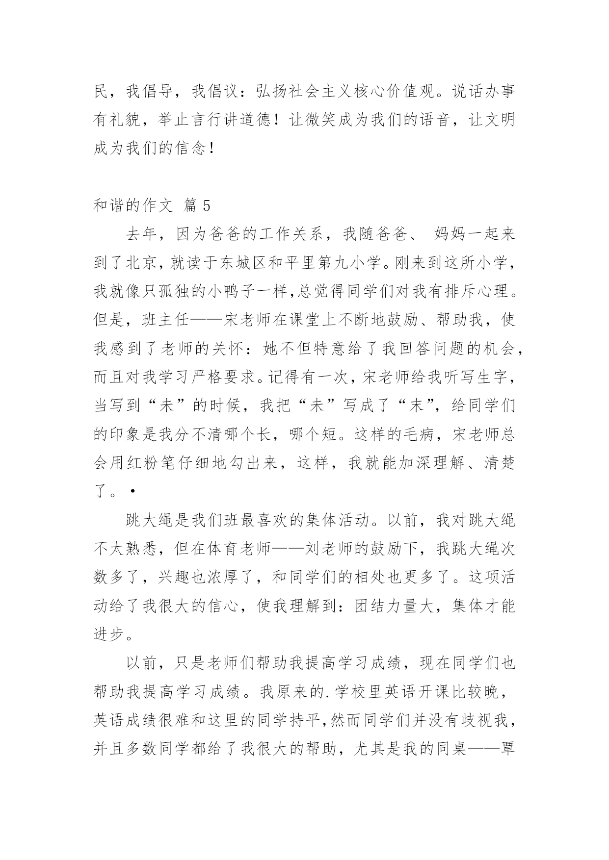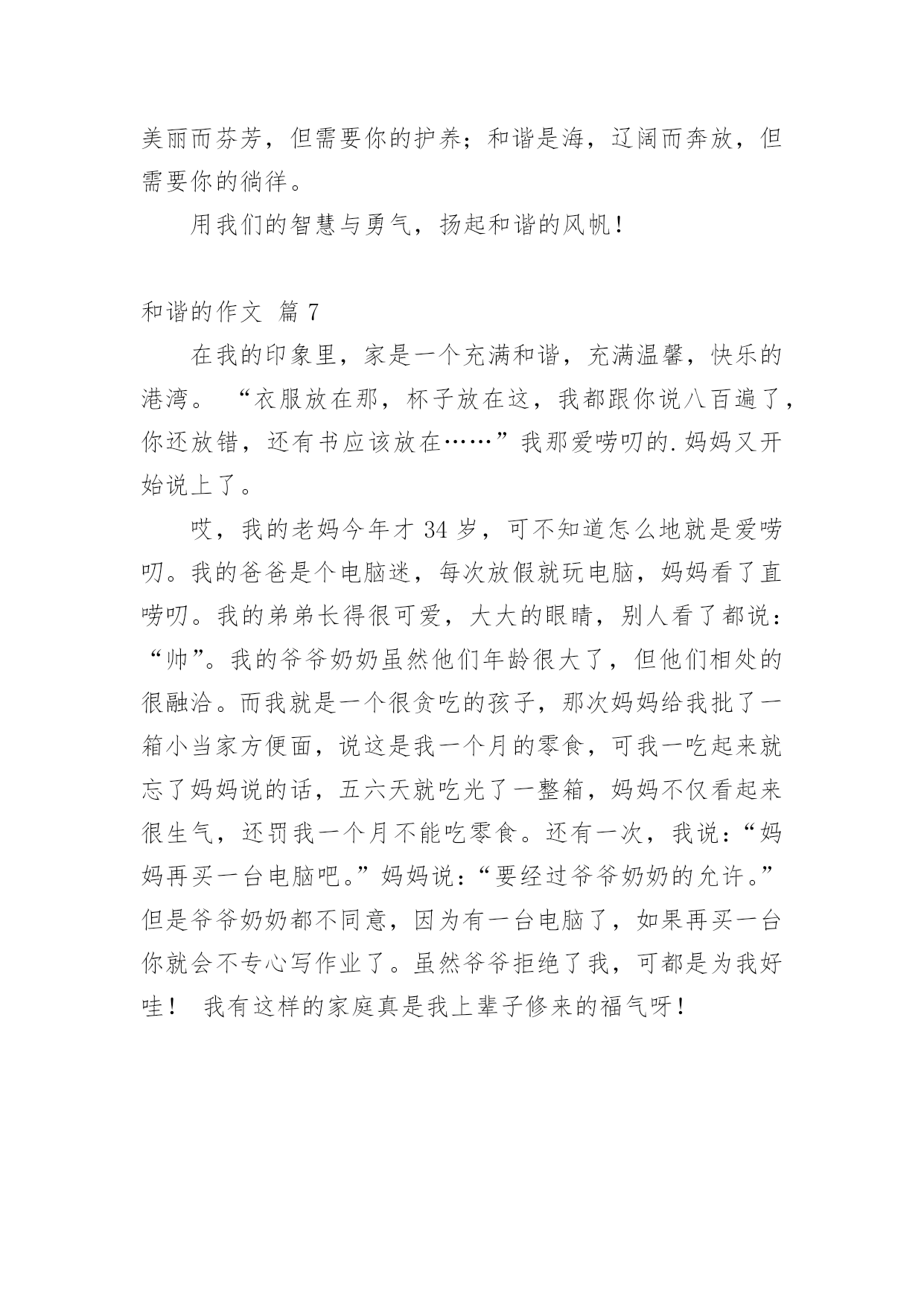 和谐的作文(推荐)和谐的作文在日常生活或是工作学习中,大家都跟作文打过交道吧,借助作文人们可以反映客观事物、表达思想感情、传递知识信息。那么你知道一篇好的作文该怎么写吗?以下是小编收集整理的和谐的作文7篇,仅供参考,大家一起来看看吧。和谐的作文篇120xx年的8月8日,对每一个中国人意味着什么?这是一种骄傲,一种光荣!在这个激动人心的日子里,万人瞩目的第29届奥运会将在我国首都——北京,拉开帷幕。迎奥运,讲文明,树新风!但是,我们周围存在着许许多多不文明的事情:端午节来了,我和妈妈要乘公交车去姥姥家过节,因为头一次端午节放假,人们都纷纷回老家,所以公交车十分拥挤。“呀!你踩着我的脚了!”车上的人们都循着声音向一位阿姨望去,只见一个叔叔面红耳赤地分辩道:“公交车上,人那么多,踩了一下,叫什么叫嘛!”阿姨却得理不饶人:“是你踩到我的脚,还不让人说,你还有理了。”就这样你一言,我一语的僵持了很长时间,过节的喜庆气氛荡然无存。还有一次,也是去姥姥家的公交车上,车上同样十分拥挤。一位阿姨的`长裙子拖到公交车车厢地上,一位叔叔在阿姨的后面,正满头大汗的盯着自己的手表。“呀,你踩着我裙子了!”阿姨对叔叔说道。叔叔连忙把脚抬起来,不好意思地说:“对不起,我匆忙要去单位,一不小心踩了您的裙子,实在对不起。”阿姨忙把自己的裙子提了提,笑着说:“没关系的。”车上洋溢着文明的气息。同样是被踩,两个阿姨的表现却截然不同。一个斤斤计较;一个宽容大度。在公交车上掀起了“轩然大波”,虽然这只是一些鸡毛蒜皮般的小插曲,但却反映出了人们的文明还存在着不足。这样的小事在我们周围还有很多,比如:随地吐痰,随地大小便等等。尽管微不足道,却影响了我们的市容市貌,影响了中国在西方国家中的光辉形象,为20xx添上了一个小小的污点。让我们为奥运出一份力!可以在周末和同学清除城市的“牛皮癣”;可以做一个文明宣传员,宣传讲文明;可以做一天捡垃圾的工作……让我们从现在开始,从生活中的一点一滴做起,让文明永驻20xx!和谐的作文篇2这段时间,我认真阅读了《走进和谐的春天》这本书,知道了“和谐”和我们每个人的生活是息息相关的。我被书里面的一句句警句格言激励着,被一篇篇美文吸引着,被一个个动人的故事感动着。尤其是读到书的最后一章“和谐社会需要人与自然和谐相处”,我的感受特别深。“和谐”是我们人类对大自然的珍惜呵护,是没有被污染的土地,是郁郁葱葱的.大森林,也是所有自由栖息成长的生命。我们人类生活在美丽的地球上,地球是我们共同的家园,我们应该好好保护她,关爱她。可是,千万年来,我们人类只知道无穷无尽地向大自然索取,而不知道去保护她,将越来越多的污染无情地抛给了她,让她不堪重负,造成了许多生物濒临灭绝,资源不断消耗,能源紧缺,环境污染……昨天,我在小区的草坪上发现了一棵“一枝黄花”,它看上去很漂亮,可我知道它是一种繁殖能力超强的外来物种。前几年,就是这“一枝黄花”在我们嘉兴地区四处蔓延,严重破坏了本土植被的多样性和生态平衡,导致绿化地和灌木成片死亡,橘树的大面积减产。我急忙跑过去仔细观察了一番,高兴地说:“还好花正开得旺,还没有结出种子。”说完,我就用力把它连根拔起,扔进了垃圾箱,免得小区里四处长满它。其实,环保就在我们生活的每一个细节中,只要做个有心人,我们人人都能成为环保小卫士。当看到地上有垃圾时,弯弯腰随手把它捡起来,分类投入垃圾箱;当我们跟着爸爸妈妈上商店时,要记得带上一个环保小布袋;每天早上洗完脸,要把洗脸水保存好,这样就可以进行二次利用冲厕所了……就让我们共同努力和大自然永远和谐相处!从心做起!从我做起!从小事做起!珍惜每一滴水、每一度电、每一张纸、每一棵树、每一朵花……和谐的作文篇3吃完了晚饭,还有一点儿自由时间,我去村民的家。到了村民的家,老人们给我讲他们以前的故事,我仔细聆听。远远听见蛙声,不,她们是妇女的谈笑声。她们一边织着毛衣,一边谈论着家常事,一些年轻的人下着象棋,“将军!我赢了,给钱……”风在天空中浮动,为我们在炎热的夏天降温,仿佛它是大自然奖励我们的礼物!小花小草随风舞动婀娜多姿,让人在酷热的夏天里,舒展心情,让他们脱下了假面具。树上的鸟雀在枝头上鸣叫,这里没有城市里的尾气和吵杂的声音,让鸟儿们快乐的生活在树上,不会当心捕猎者的追捕,在这里,你们无需当心!蛙鼓在丛林响起伴随着昆虫发出清脆的声音,这是个优美的交响乐,带给了人们无限的舒畅。小河里有许多人在船上“散步”,游赏美丽的.风景,困了拿出自家编的草垫,铺在船板,听着那交响乐,渐渐的睡了,当他们醒来的时候,便临来公鸡的叫声。老人们,拉着自己珍爱有加的二胡,拉出的声音有些悲伤,又有些忧伤,是他们在想念儿女的幽乡。这是一个和谐的农村生活,真想留下来呀!和谐的作文篇4今天是正月初四。这是一个阳光明媚的早晨。吃完早餐