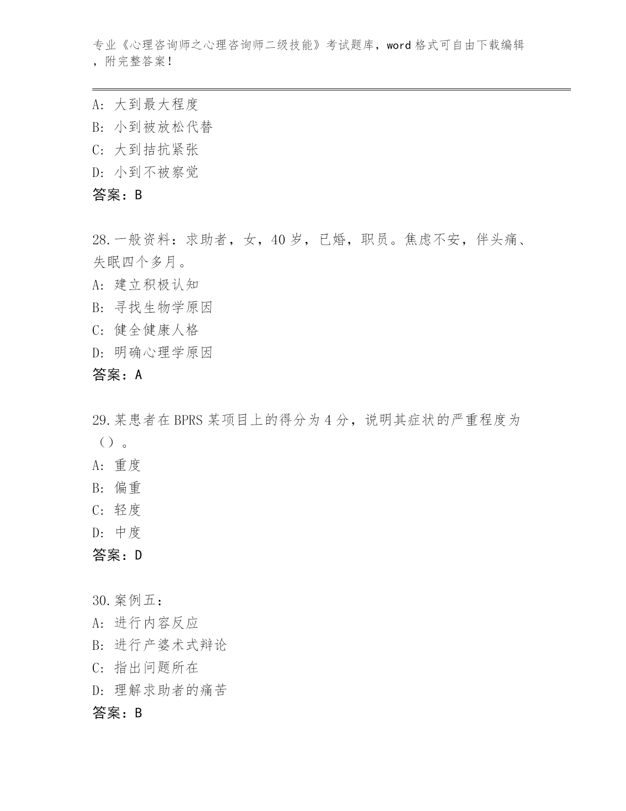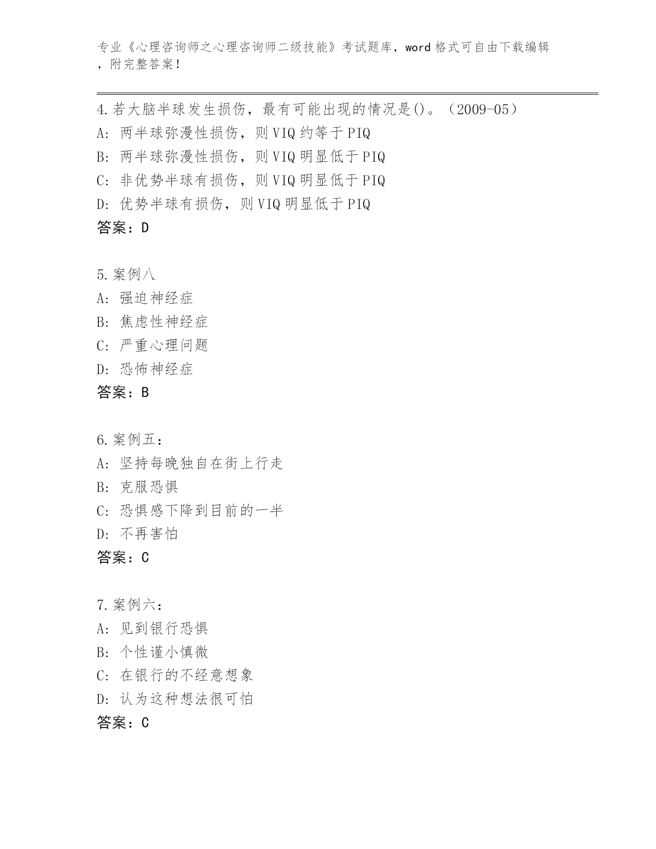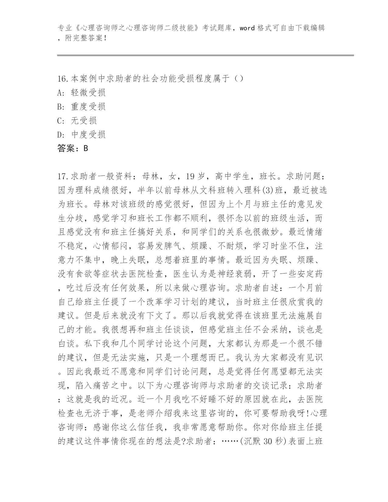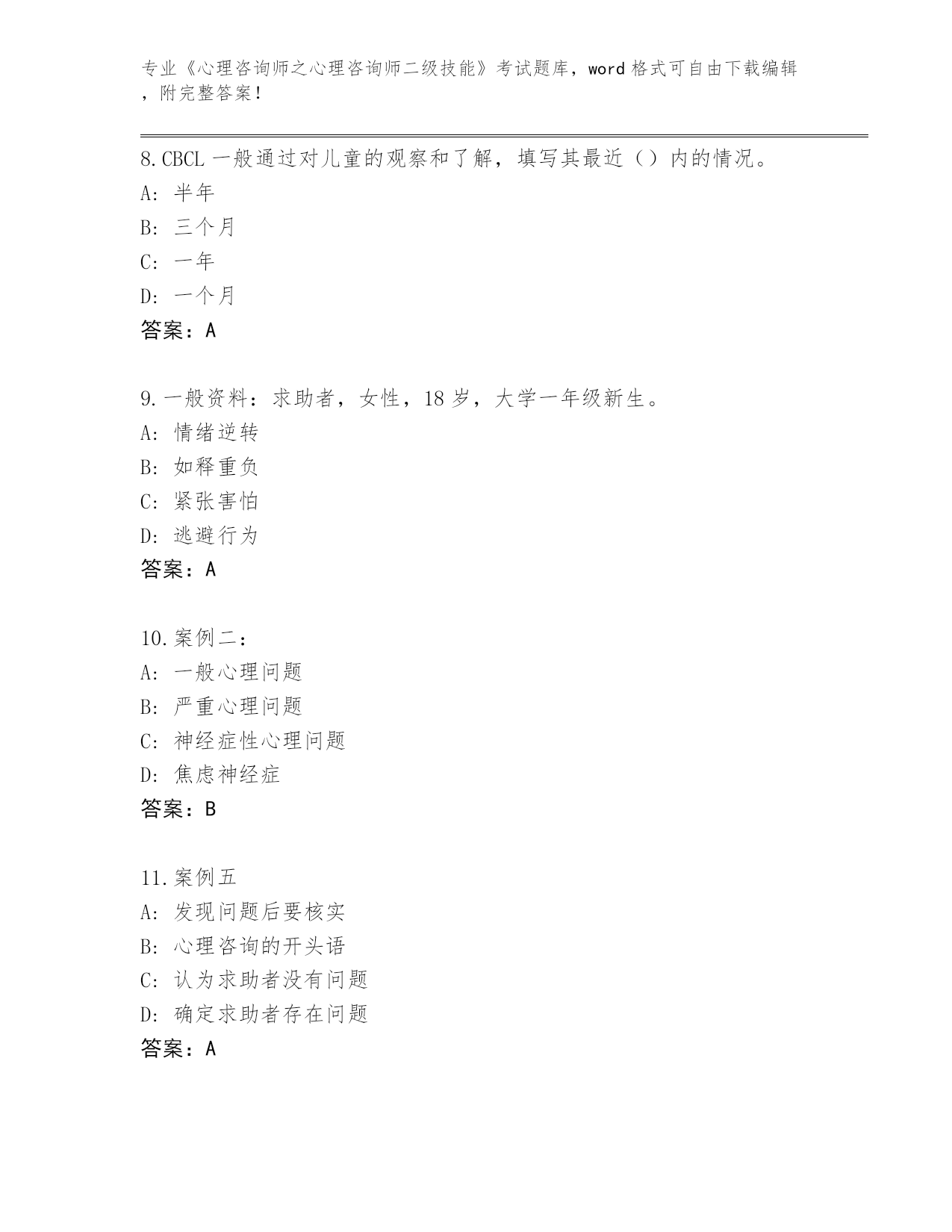 吉林省绿园区整理《心理咨询师之心理咨询师二级技能》考试必考200题完整题库(夺冠系列)