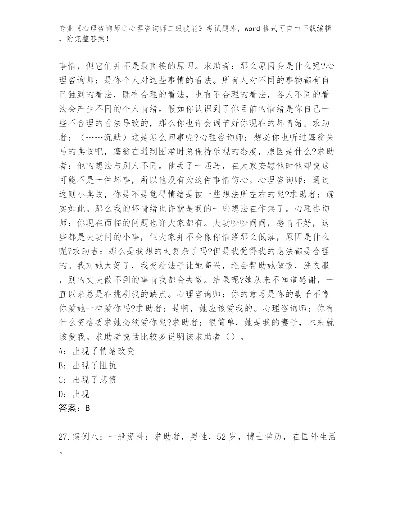 2024年吉林省《心理咨询师之心理咨询师二级技能》资格考试真题及答案【夺冠系列】