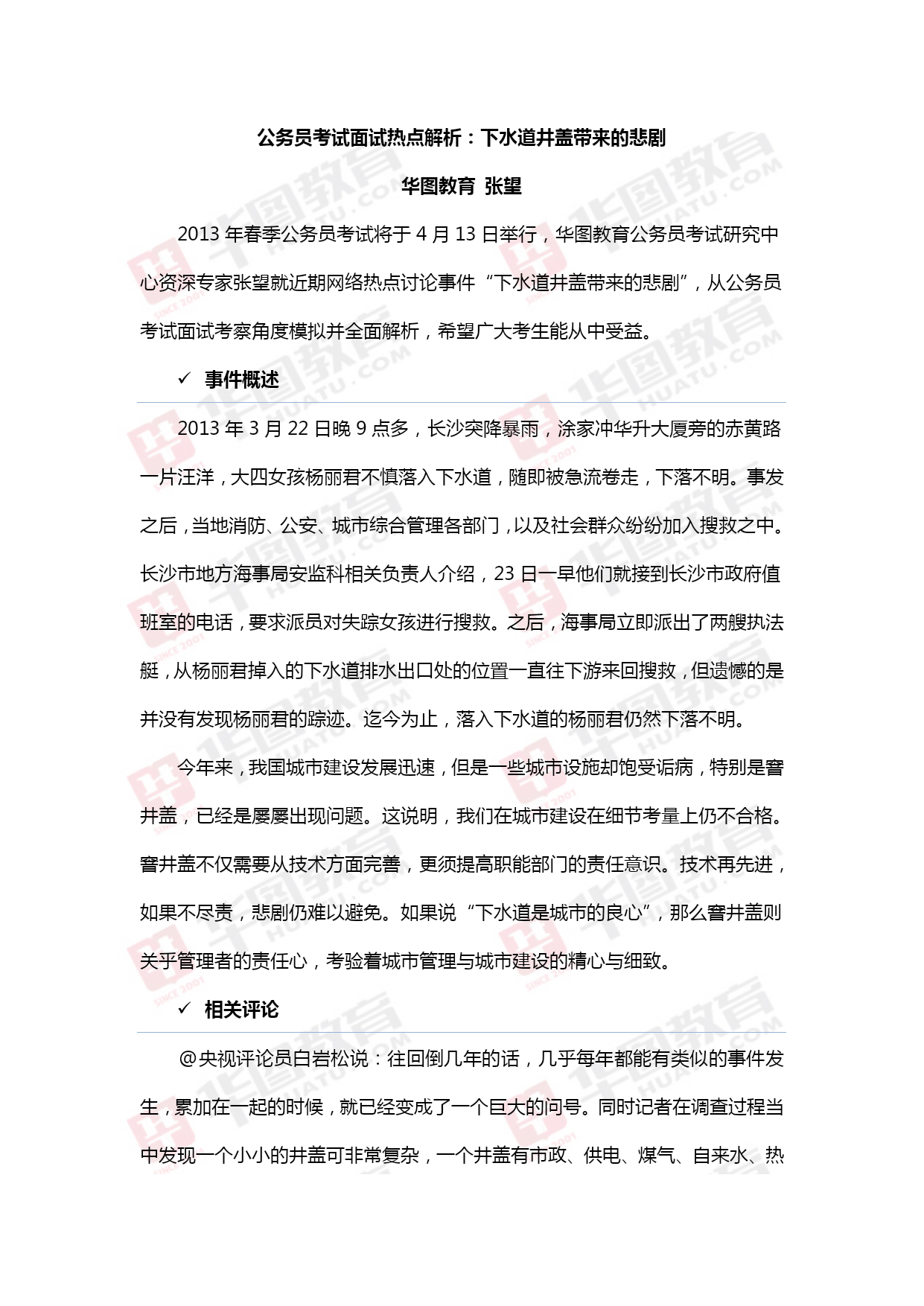 公务员考试面试热点解析:下水道井盖带来的悲剧.doc