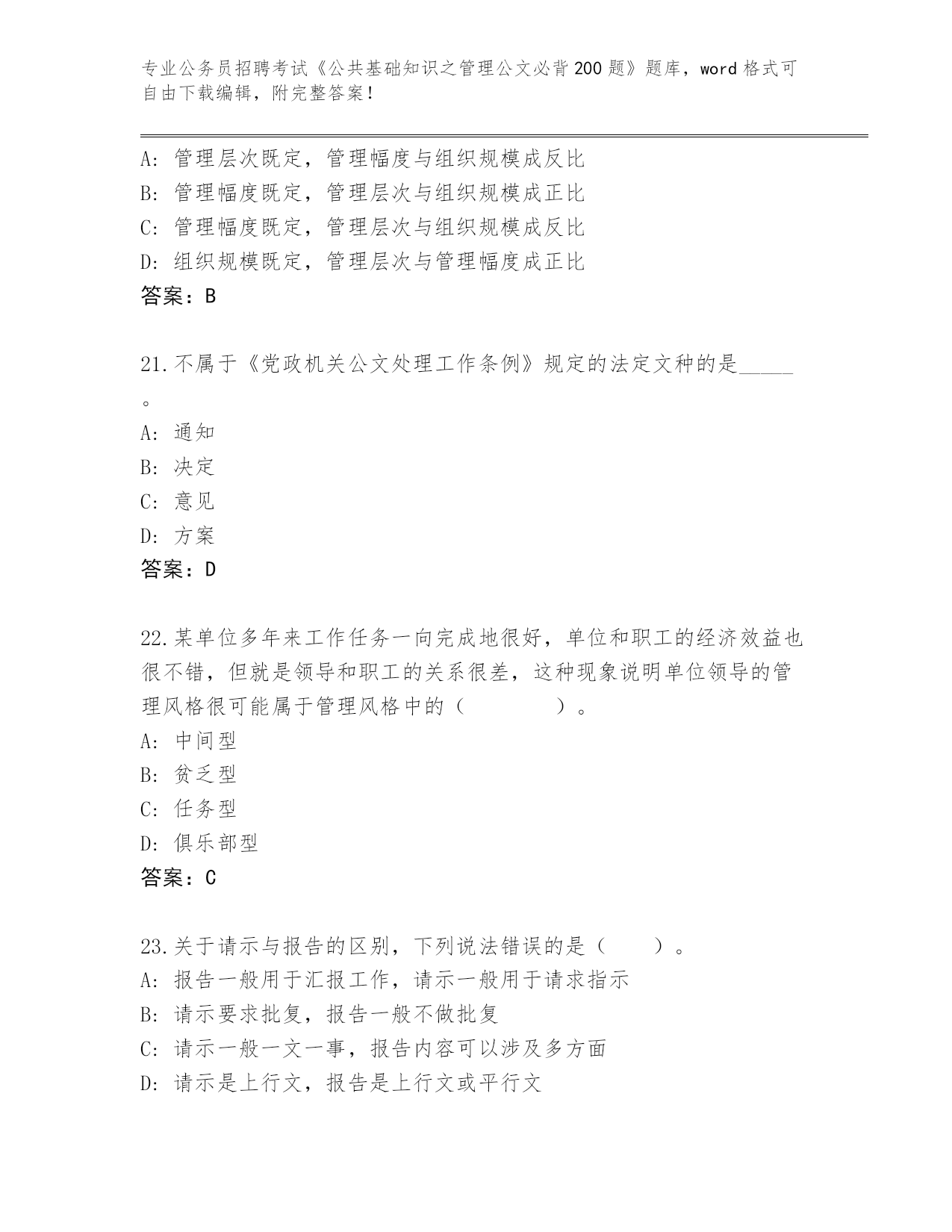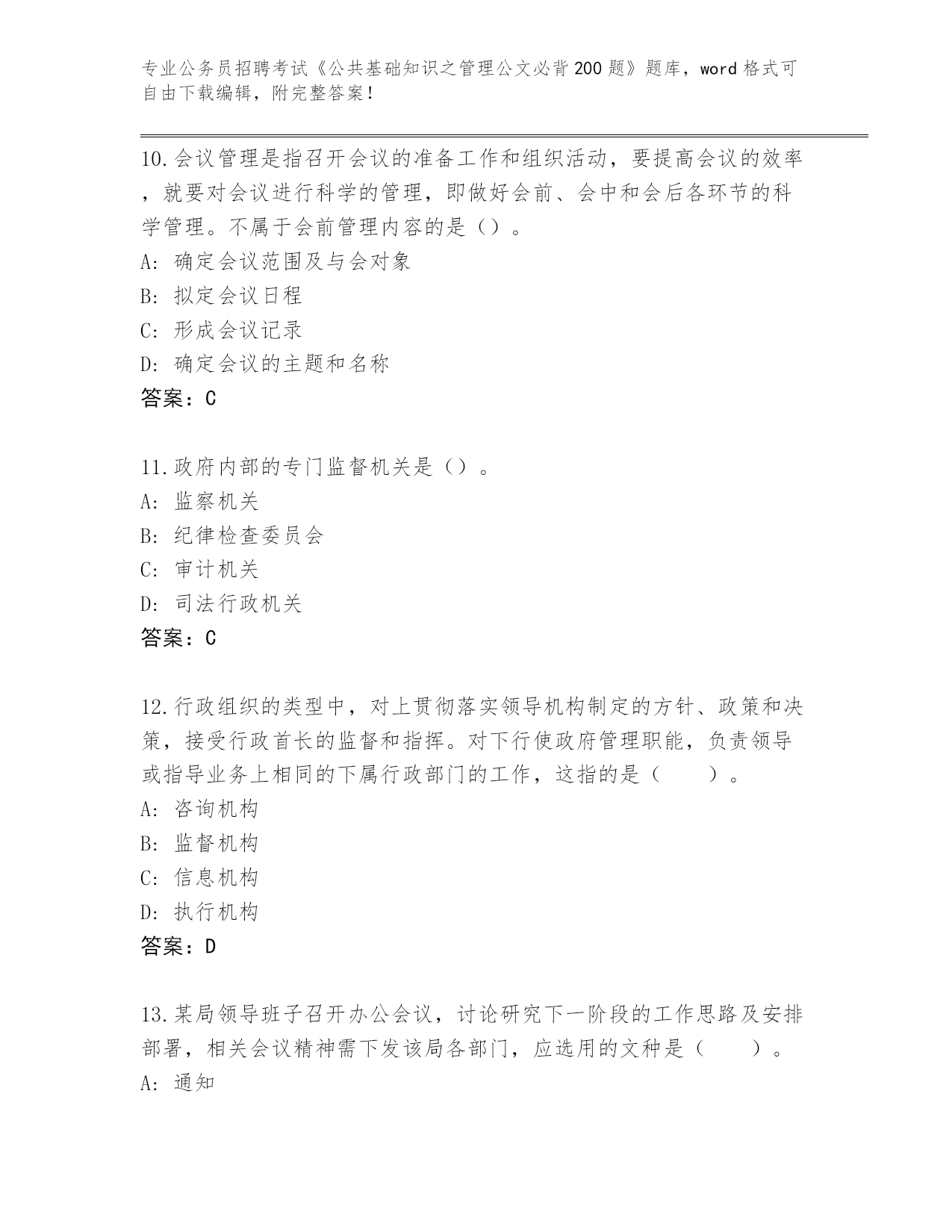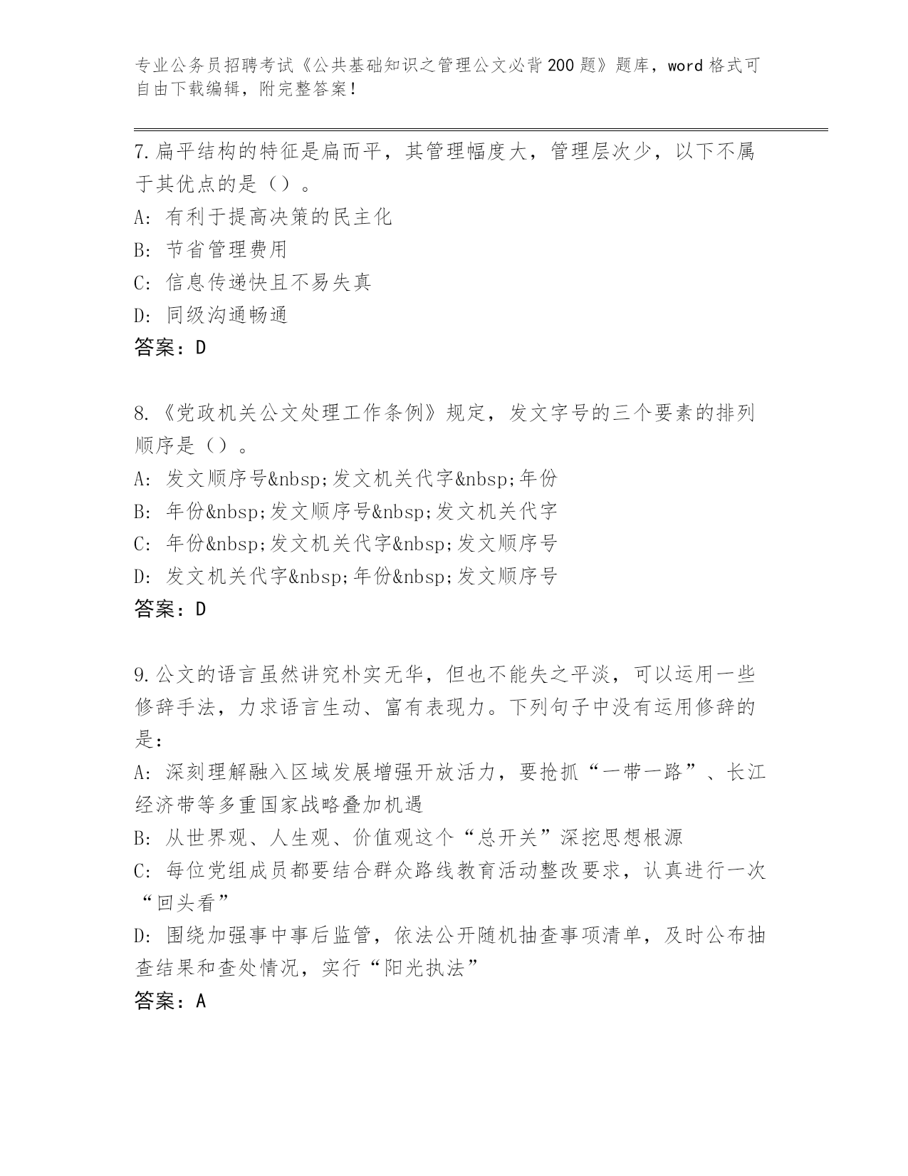 整理广东省始兴县公务员招聘考试《公共基础知识之管理公文必背200题》题库及参考答案