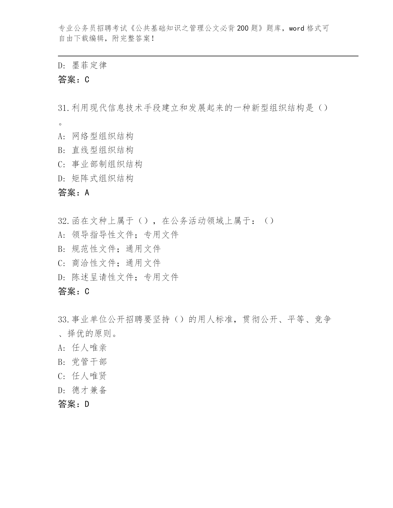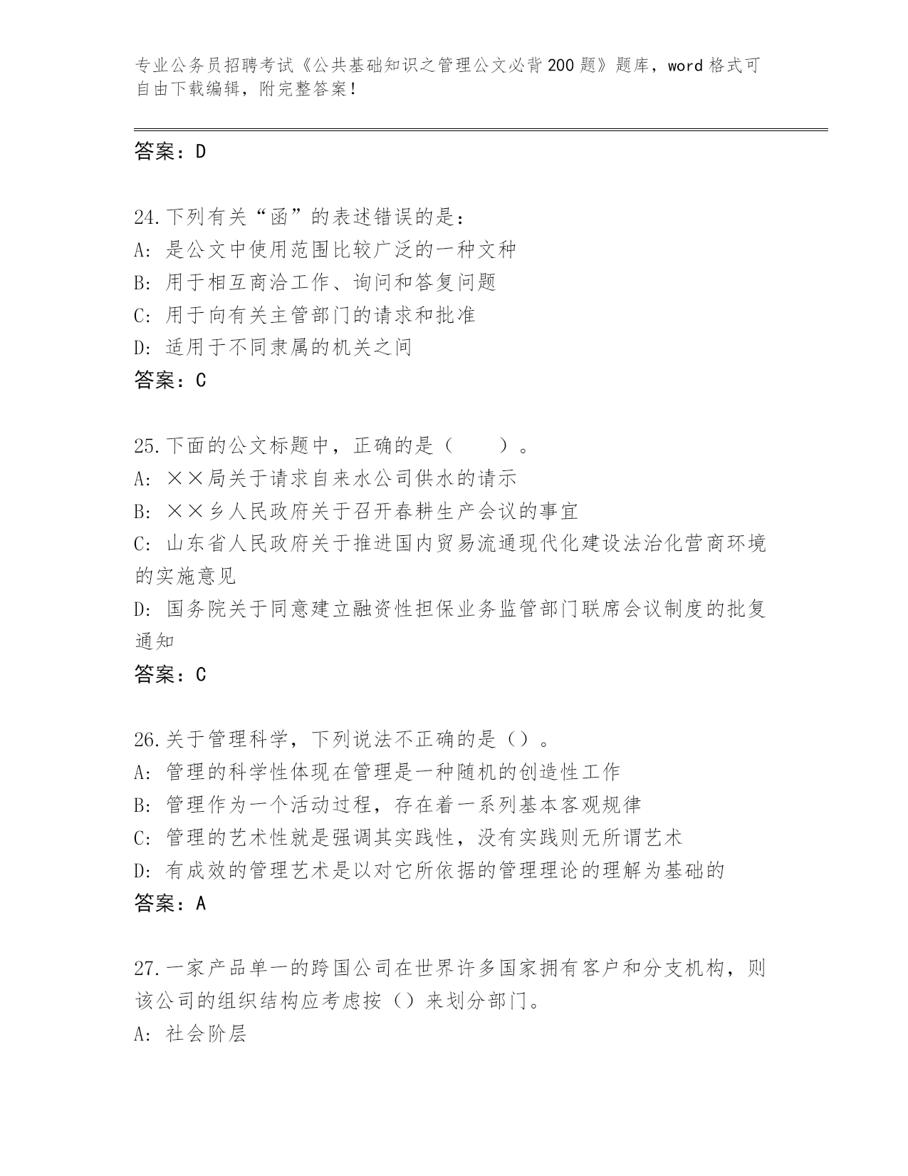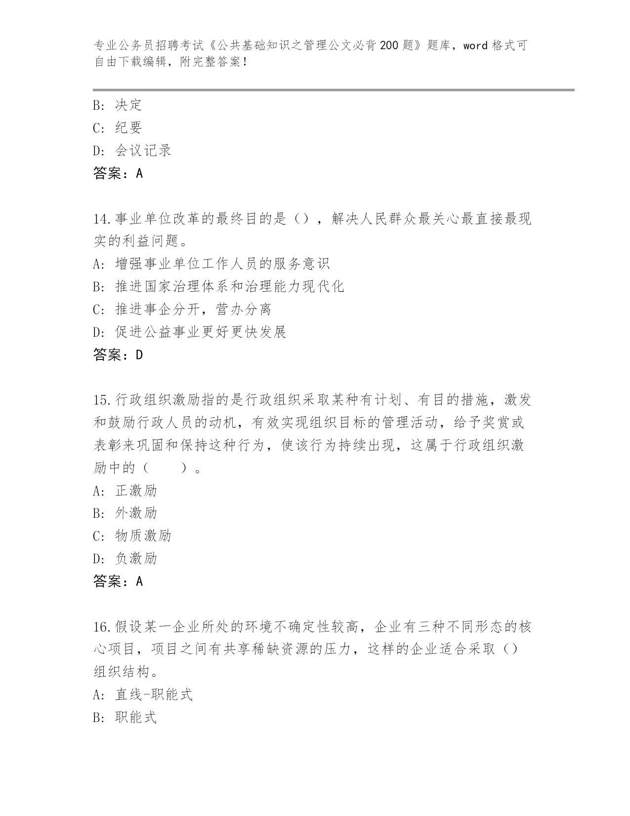 整理广东省始兴县公务员招聘考试《公共基础知识之管理公文必背200题》题库及参考答案