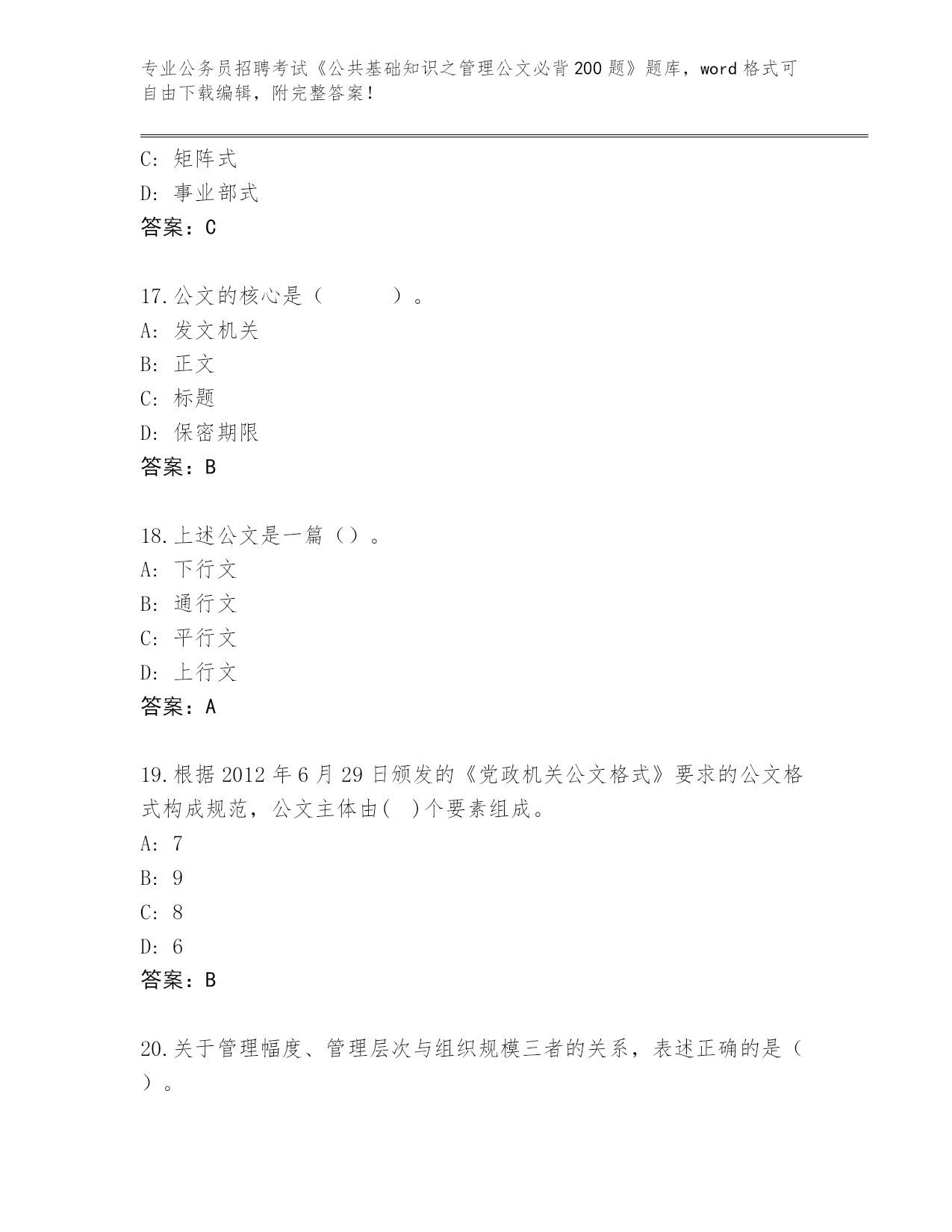 整理广东省始兴县公务员招聘考试《公共基础知识之管理公文必背200题》题库及参考答案.docx