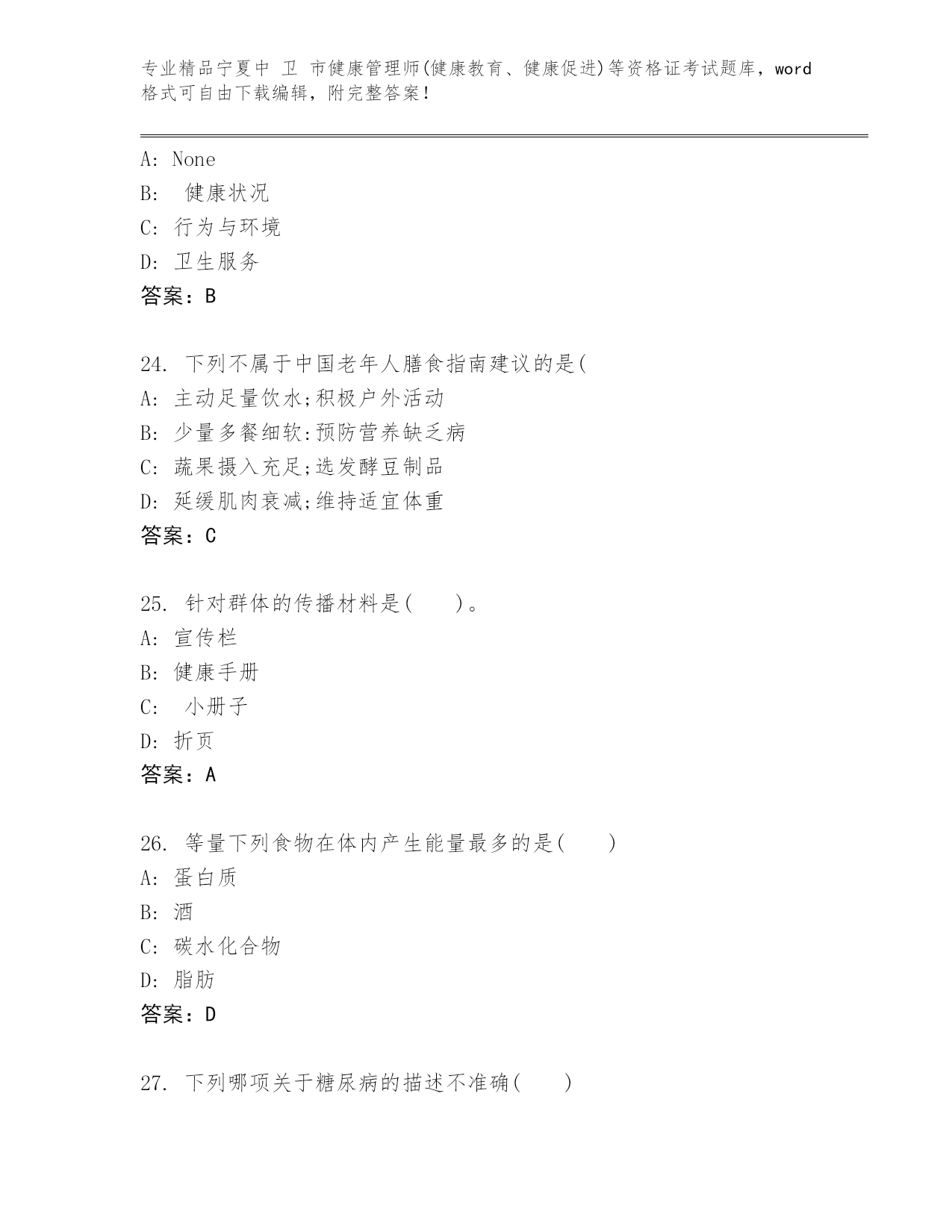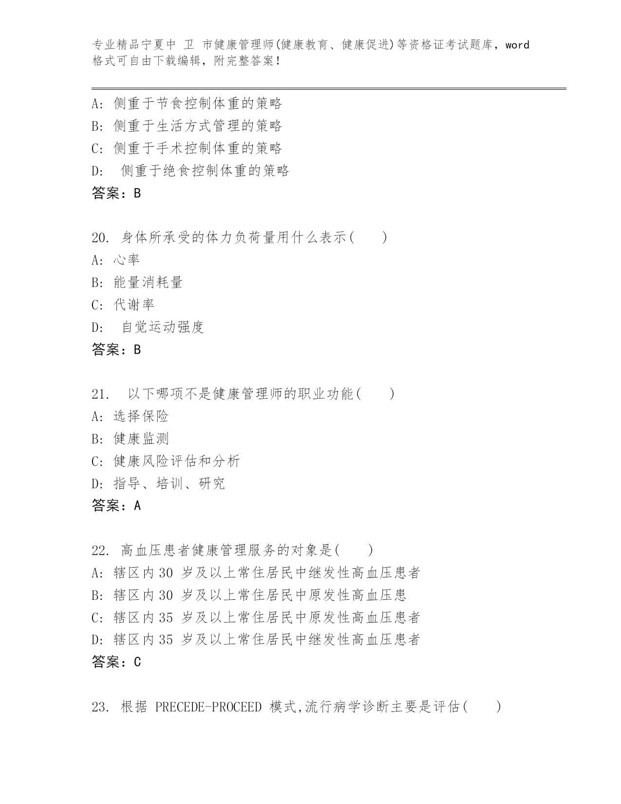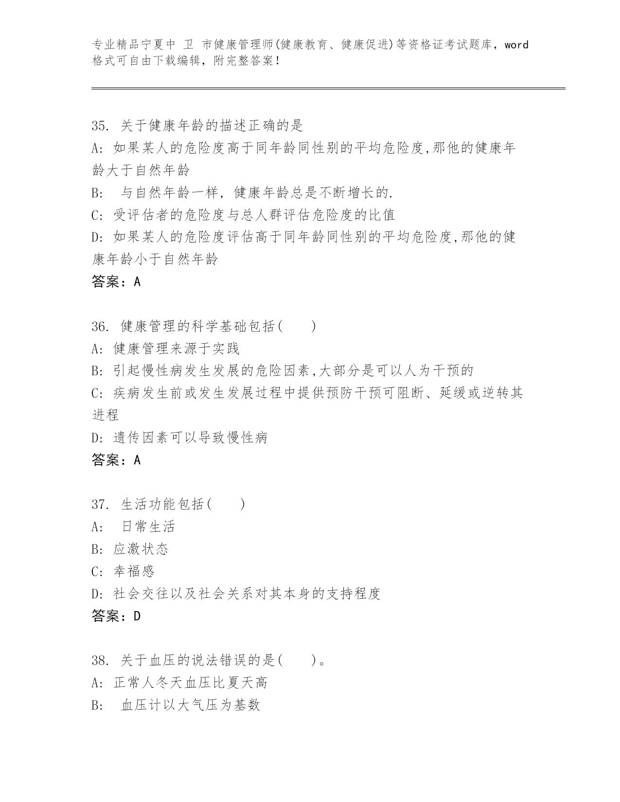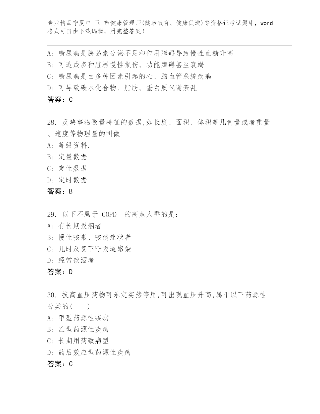 内部培训宁夏中卫市健康管理师(健康教育、健康促进)等资格证考试王牌题库带答案(精练).docx