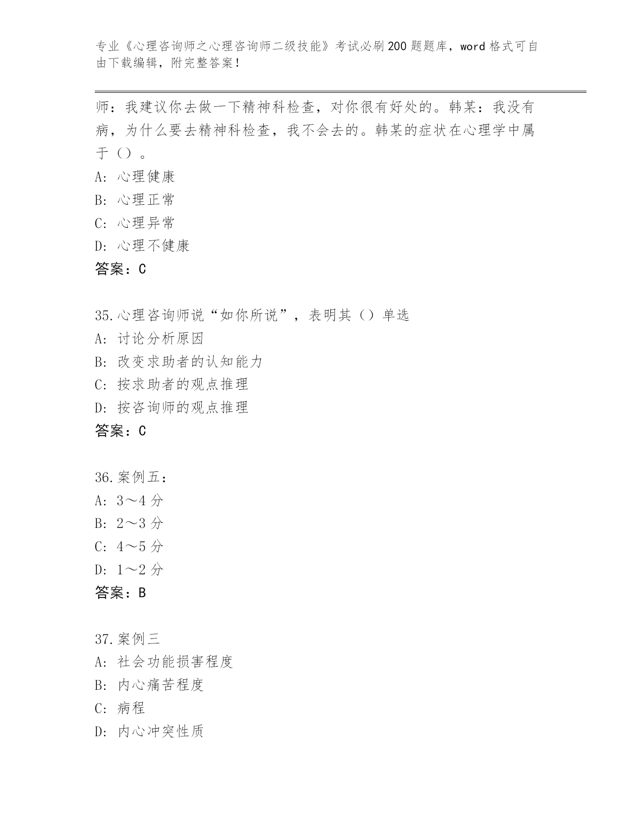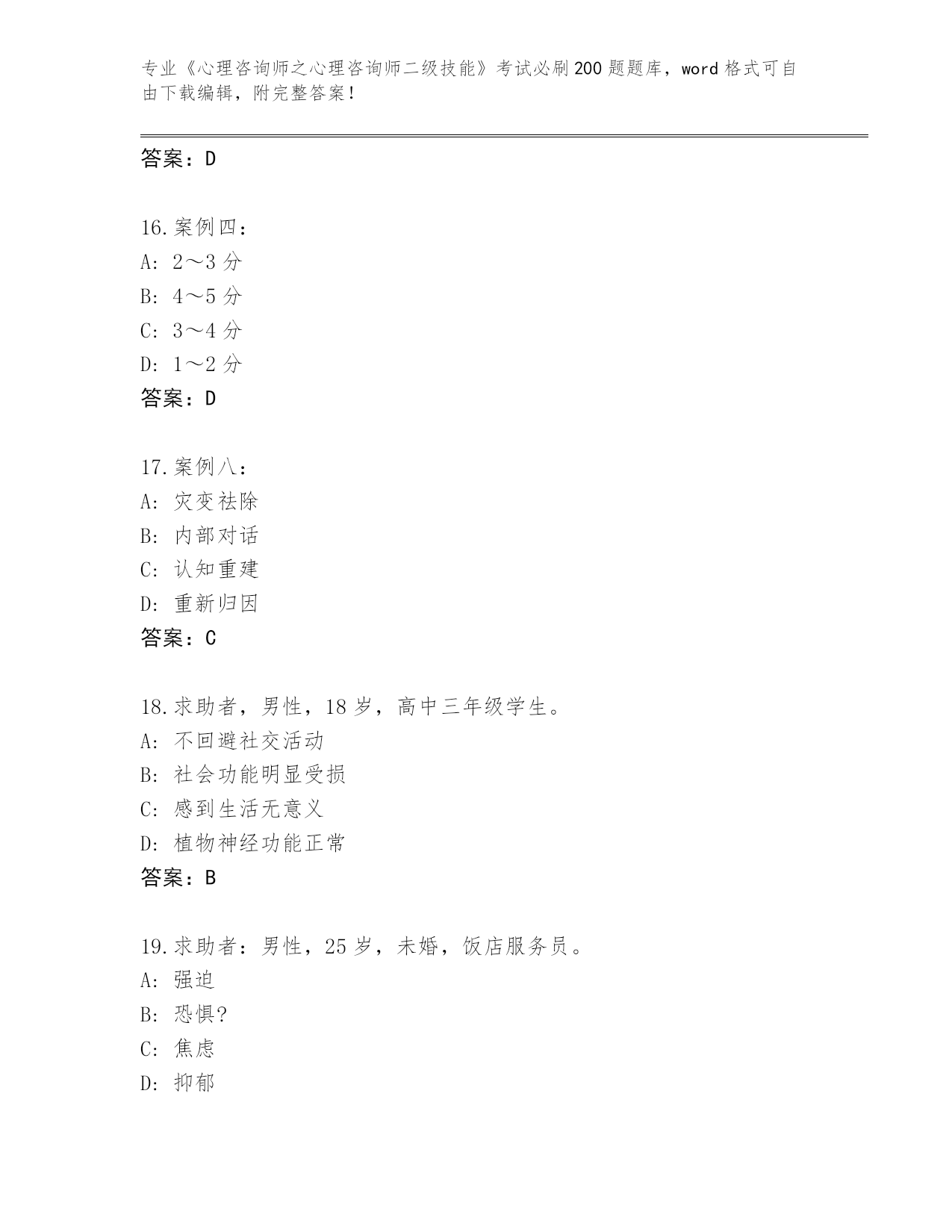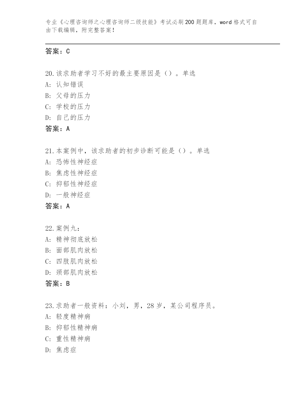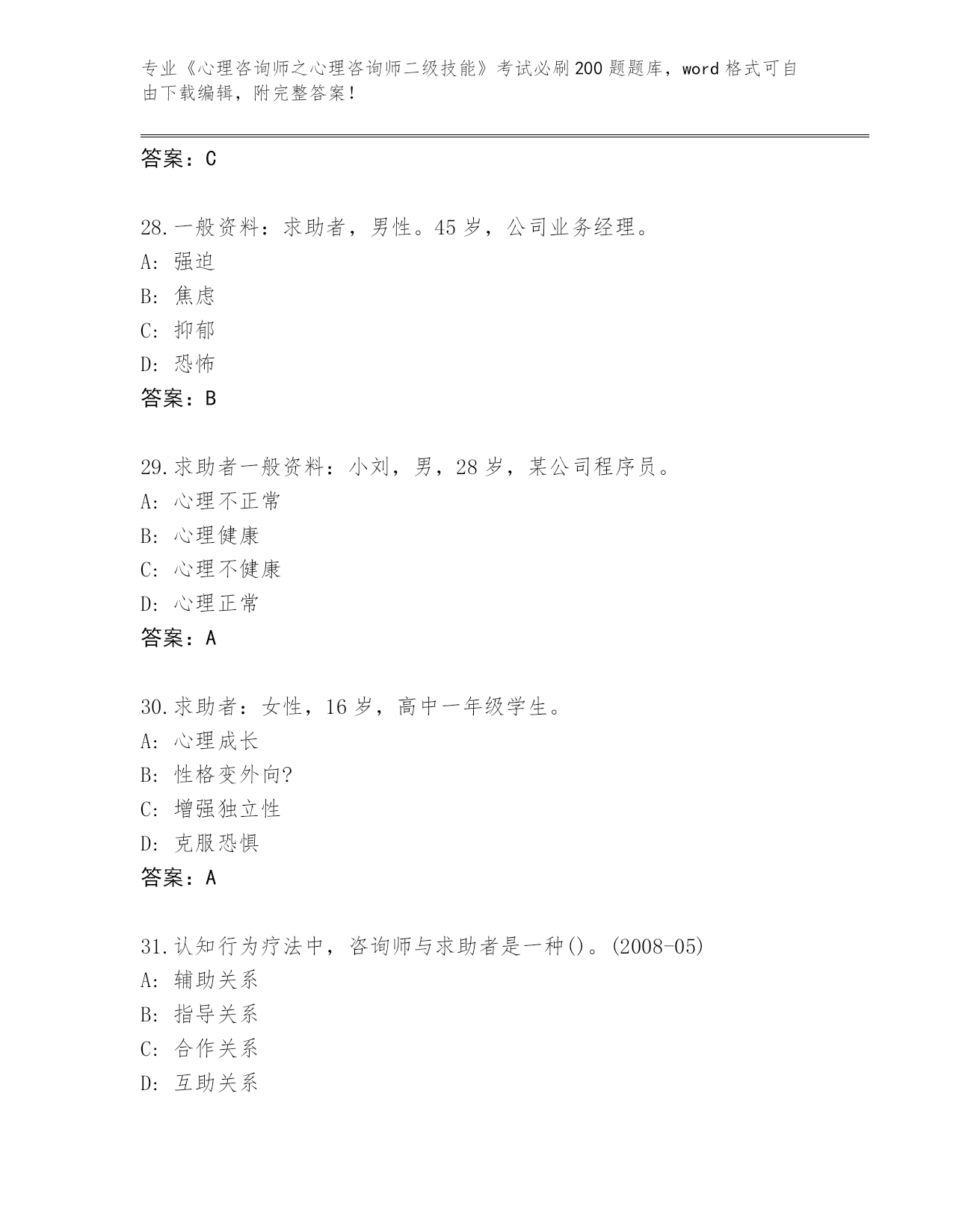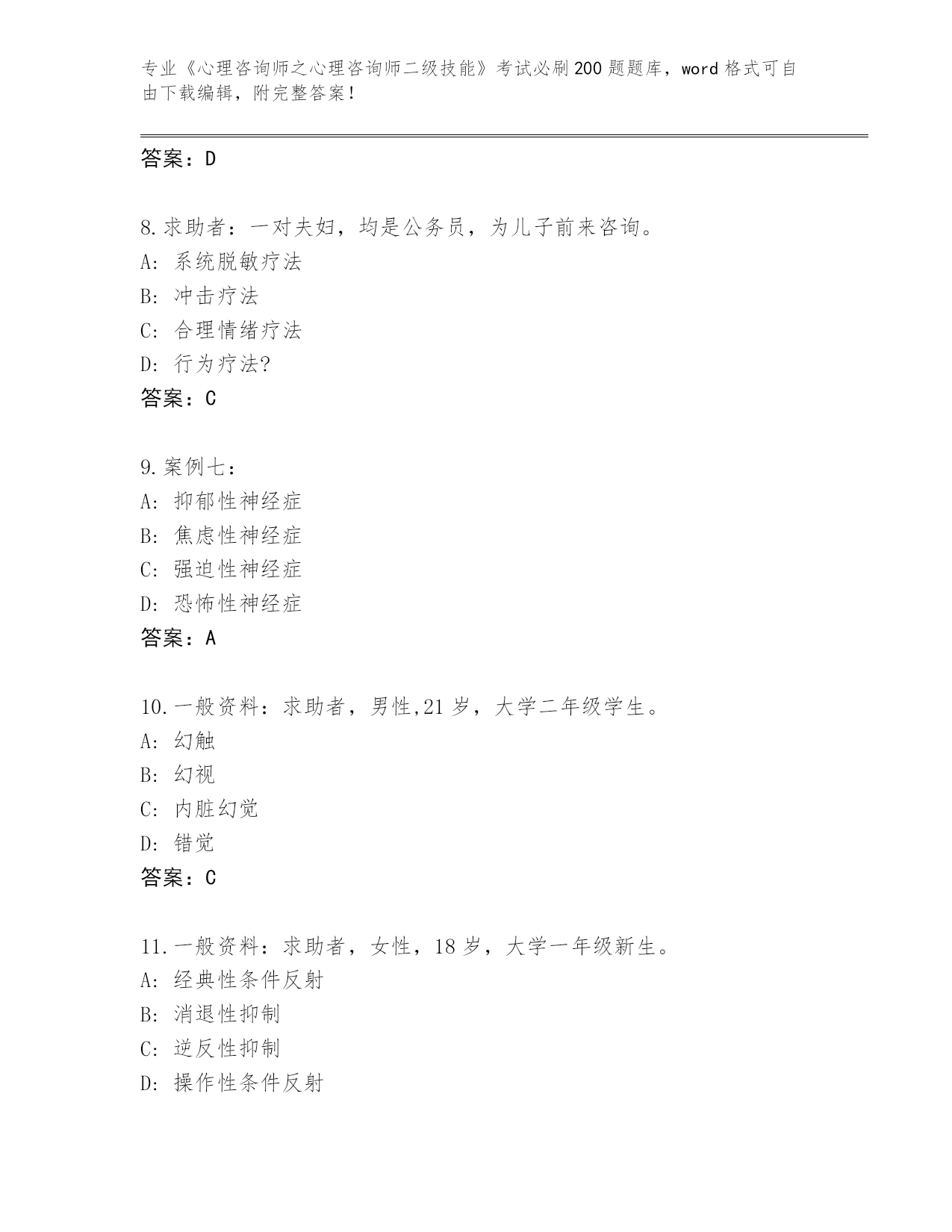 内部使用湖北省麻城市《心理咨询师之心理咨询师二级技能》考试必刷200题必考题