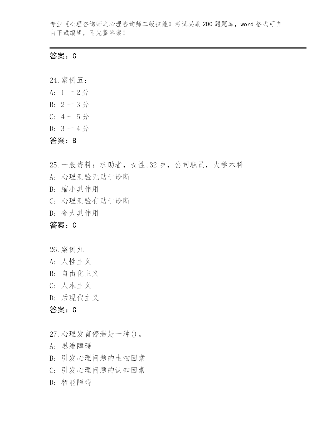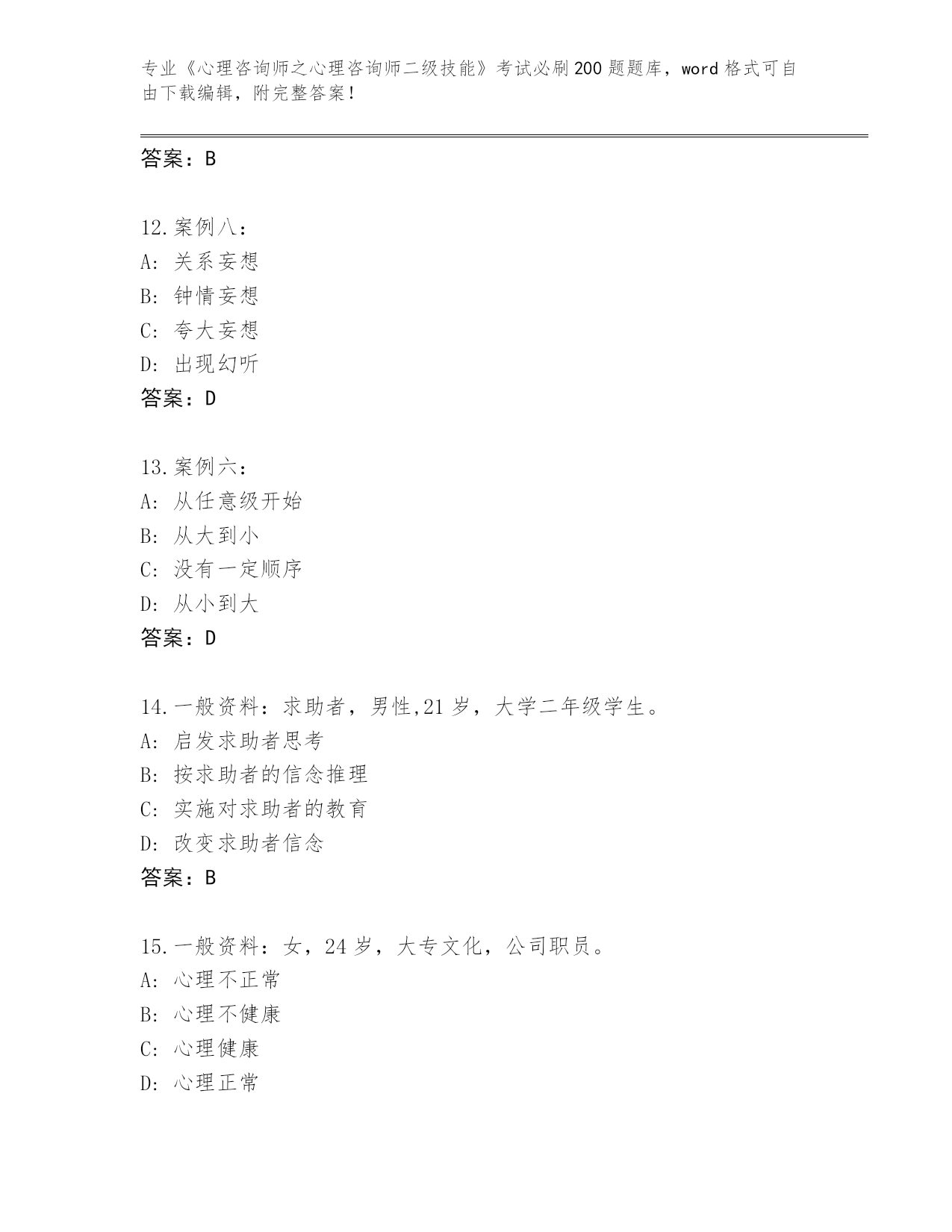 湖北省西陵区完整版《心理咨询师之心理咨询师二级技能》考试必刷200题内部题库(预热题)