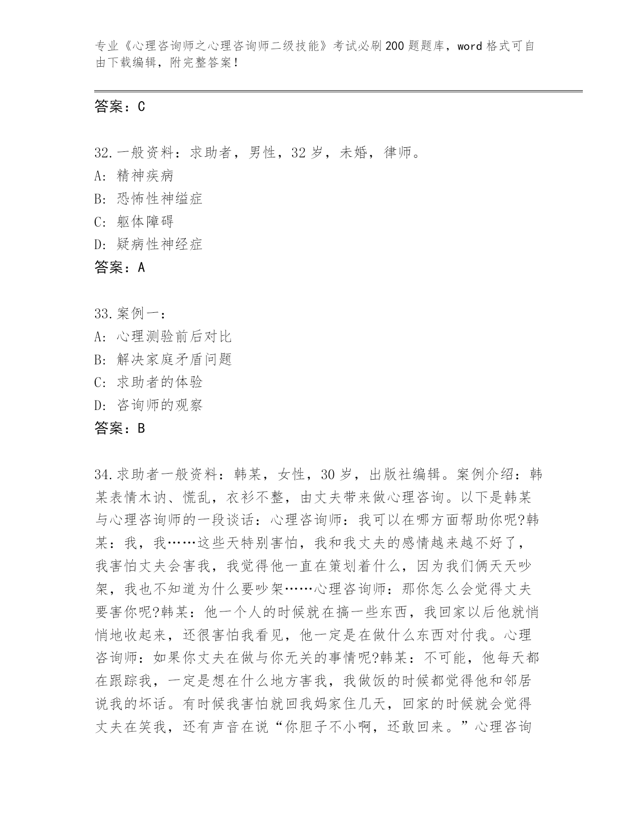 福建省漳浦县《心理咨询师之心理咨询师二级技能》考试必刷200题题库【预热题】