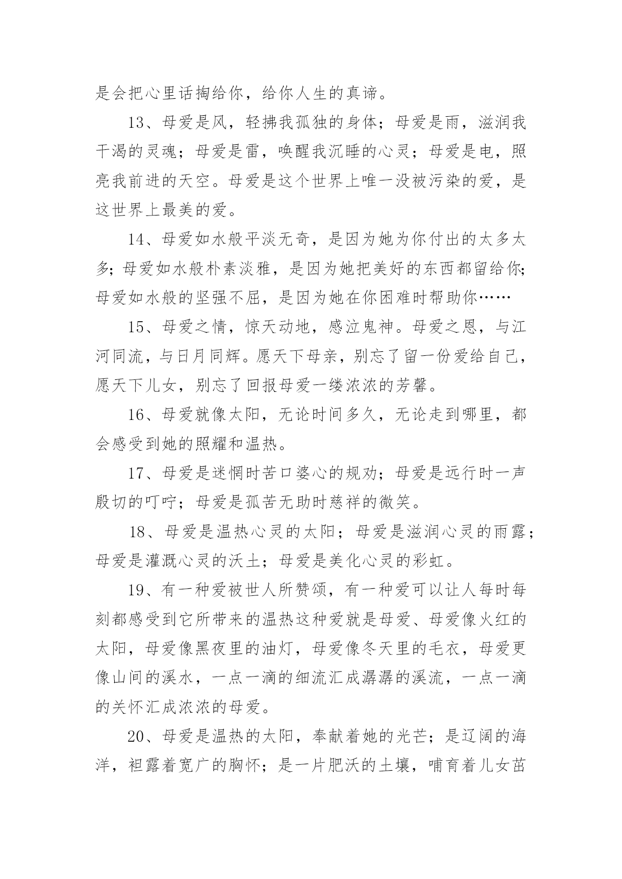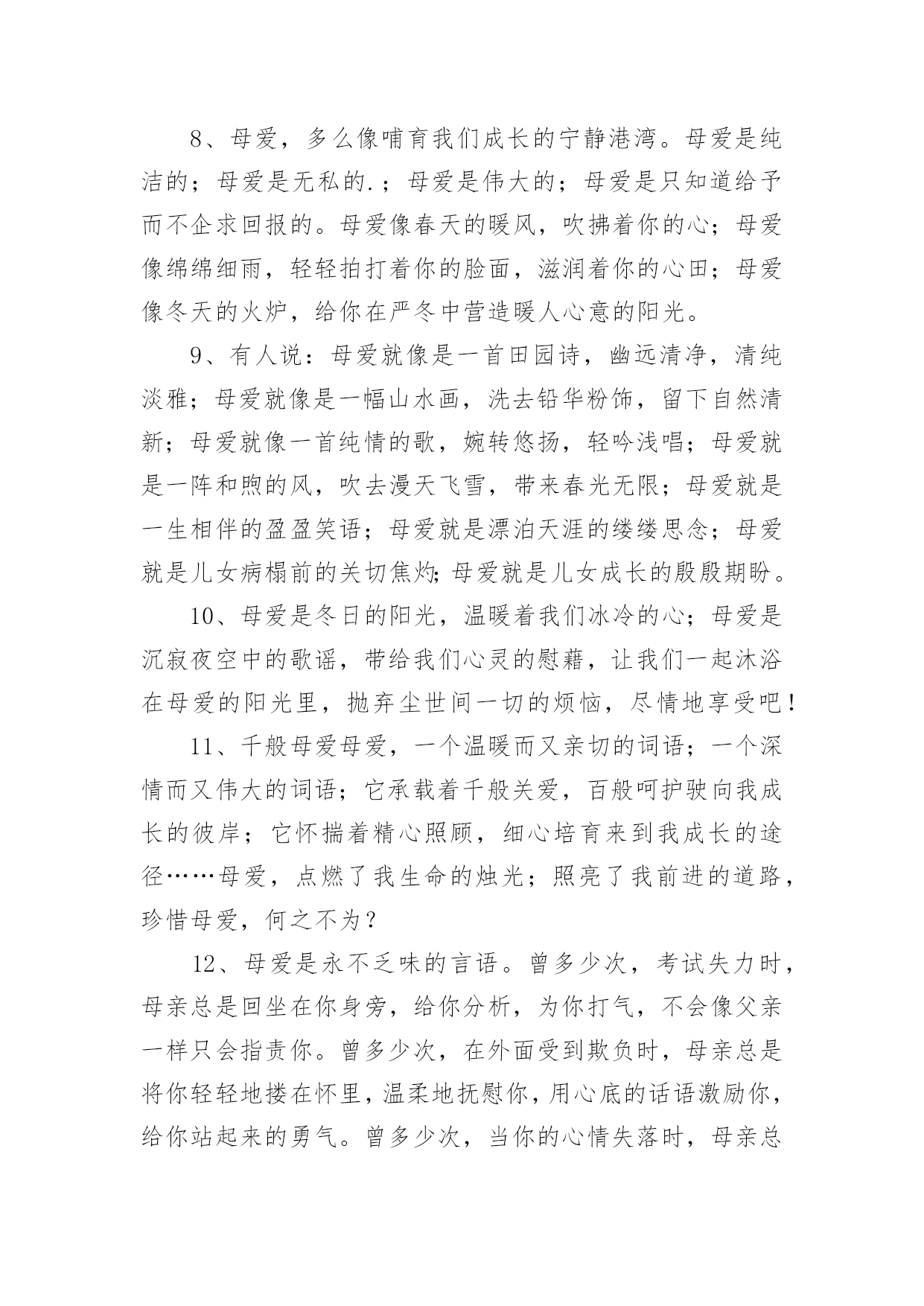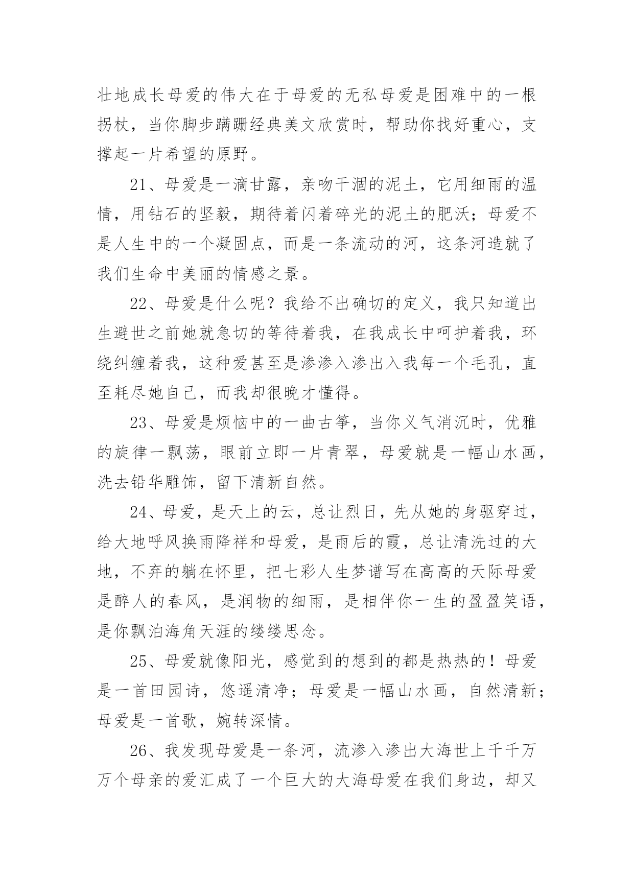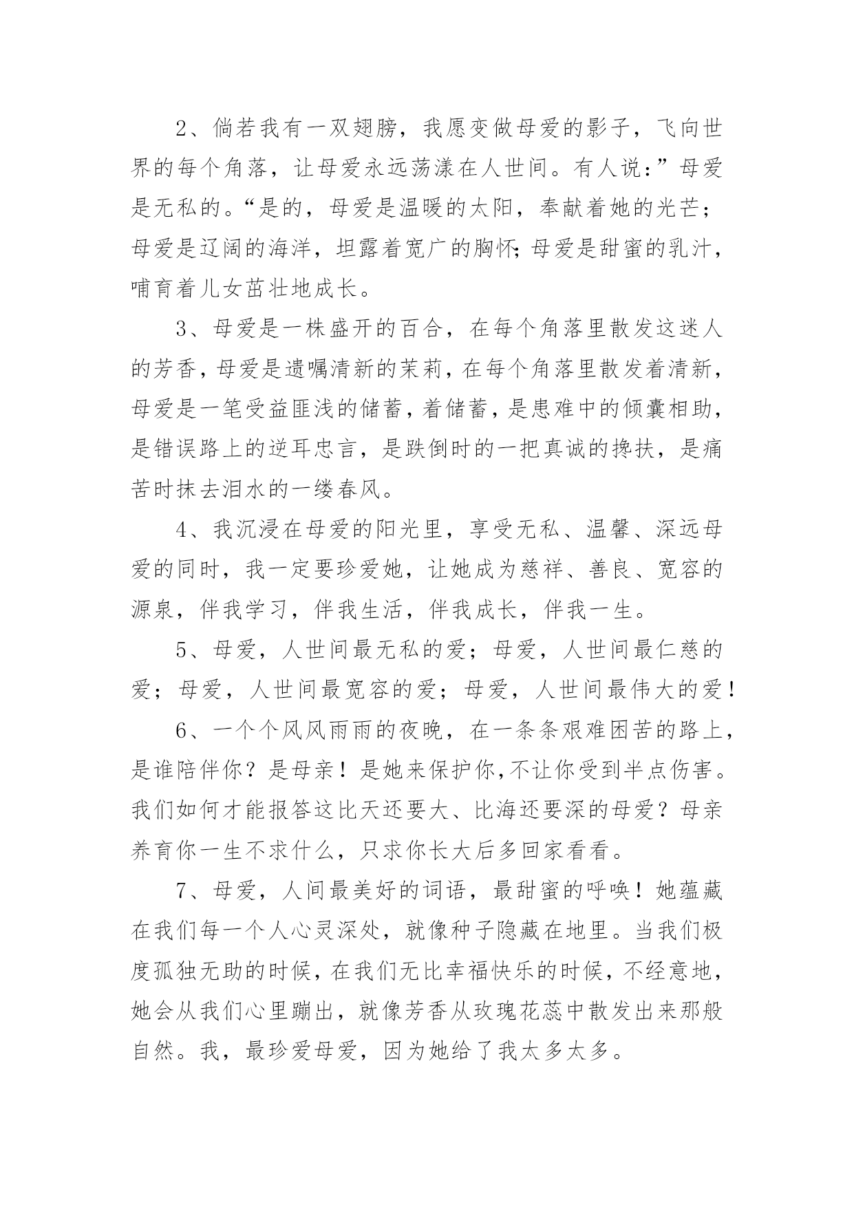 励志的短语励志的短语(大全15篇)励志的短语11.情多无语,水深无声。2.有的人,认真爱过一次以后就不敢再随便爱了,因为怕重蹈覆辙,怕感情的伤害,怕心灵变得更累。所以,我们都失去了深爱的能力。3.在在这宁静得夜晚,寄上我温馨得祝福,带去我深深得,愿我得—声祝福洗去你—天得劳累,—句晚安带你进入美妙得梦境!—片心意使你天天平平安安。愿您做个好梦!!每天好心情!!勇敢的去面对每一天,因为太阳每天都是新的。4.睡吧,财源滚滚会到家;睡吧,事业顺利笑哈哈;睡吧,爱情甜蜜美如花;睡吧,健康平安好运达;睡吧,只有做梦一切都会实现啦!晚安,朋友!5.花开花落,蝶舞天涯,悠悠岁月,歌声清越;日出日落,云开雾散,征途漫漫,人生灿烂;动动拇指,绞尽脑汁,编条短信,给你祝福!祝你开心幸福!6.时间散步在思念,目光流转在天边,心每一次跳动着为再见加油,血每一次流动着给再见鼓励,生命的意义就是我要追到你,再接再厉,亲爱的,晚安。7.睡吧:你会做—个梦,梦见我扮成了鬼,—身白色得衣服。你看不见我得脚,却只能看到我白色得衣服上有红色得……我直勾勾得看着你,对你说:"下次喂我葡萄酒得时候看好嘴巴在在哪。",睡吧,有我在你门外站岗放哨,你安心的睡吧,大胆的睡吧!8.夜晚的宁静是美好的,有你的陪伴是幸福的,有你的照顾是贴心的,生活对我来说,永远都是有意义的!9.牵挂,是一束美丽的鲜花;思念,是情感的升华;送上我的祝福:愿今天你是快乐的.,今年你是顺利的,今生你是幸福的!10.两个人在一起,最有意义的事情是:为了对方变得更加优秀。11.淡淡的星光淡淡的云,淡淡的祝福深情的吻。轻轻的问候轻轻的音,轻轻的关上你的门。甜甜的梦乡甜甜的心,甜甜的笑容好开心。辛勤的忙碌辛勤的人,静静的夜晚请安神。真挚的友谊真挚的心,晚安代表我的心。12.如果没有遇到你,我的世界会是多么的灰暗;如果没有爱上你,我的生活会是多么的悲惨。是你给了我光明和希望,为了报答你,我决定一辈子守护你!励志的短语21、当我们呱呱坠地之时,我们便开始沐浴母爱的阳光雨露。因为母爱的关怀,使得我们这些小幼苗茁壮成长。风雨来临,挫折来临,苦难来临,不用怕,因为一定会有母爱为我们支撑起一片艳阳天。2、倘若我有一双翅膀,我愿变做母爱的影子,飞向世界的每个角落,让母爱永远荡漾在人世间。有人说:”母爱是无私的。“是的,母爱是温暖的太阳,奉献着她的光芒;母爱是辽阔的海洋,坦露着宽广的胸怀;母爱是甜蜜的乳汁,哺育着儿女茁壮地成长。3、母爱是一株盛开的百合,在每个角落里散发这迷人的芳香,母爱是遗嘱清新的茉莉,在每个角落里散发着清新,母爱是一笔受益匪浅的储蓄,着储蓄,是患难中的倾囊相助,是错误路上的逆耳忠言,是跌倒时的一把真诚的搀扶,是痛苦时抹去泪水的一缕春风。4、我沉浸在母爱的阳光里,享受无私、温馨、深远母爱的同时,我一定要珍爱她,让她成为慈祥、善良、宽容的源泉,伴我学习,伴我生活,伴我成长,伴我一生。5、母爱,人世间最无私的爱;母爱,人世间最仁慈的爱;母爱,人世间最宽容的爱;母爱,人世间最伟大的爱!6、一个个风风雨雨的夜晚,在一条条艰难困苦的路上,是谁陪伴你?是母亲!是她来保护你,不让你受到半点伤害。我们如何才能报答这比天还要大、比海还要深的母爱?母亲养育你一生不求什么,只求你长大后多回家看看。7、母爱,人间最美好的词语,最甜蜜的呼唤!她蕴藏在我们每一个人心灵深处,就像种子隐藏在地里。当我们极度孤独无助的时候,在我们无比幸福快乐的时候,不经意地,她会从我们心里蹦出,就像芳香从玫瑰花蕊中散发出来那般自然。我,最珍爱母爱,因为她给了我太多太多。8、母爱,多么像哺育我们成长的宁静港湾。母爱是纯洁的;母爱是无私的.;母爱是伟大的;母爱是只知道给予而不企求回报的。母爱像春天的暖风,吹拂着你的心;母爱像绵绵细雨,轻轻拍打着你的脸面,滋润着你的心田;母爱像冬天的火炉,给你在严冬中营造暖人心意的阳光。9、有人说:母爱就像是一首田园诗,幽远清净,清纯淡雅;母爱就像是一幅山水画,洗去铅华粉饰,留下自然清新;母爱就像一首纯情的歌,婉转悠扬,轻吟浅唱;母爱就是一阵和煦的风,吹去漫天飞雪,带来春光无限;母爱就是一生相伴的盈盈笑语;母爱就是漂泊天涯的缕缕思念;母爱就是儿女病榻前的关切焦灼;母爱就是儿女成长的殷殷期盼。10、母爱是冬日的阳光,温暖着我们冰冷的心;母爱是沉寂夜空中的歌谣,带给我们心灵的慰藉,让我们一起沐浴在母爱的阳光里,抛弃尘世间一切的烦恼,尽情地享受吧!11、千般母爱母爱,一个温暖而又亲切的词语;一个深情而又伟大的词语;它承载着千般关爱,百般呵护驶向我成长的彼岸;它怀揣着精心照顾,细心培育来到我成长的途径……母爱,点燃了我生命的烛光;照亮了我前进的道路,珍惜母爱,何之不为?12、母爱是永不乏味的言语。曾多少次,考试失力时,母亲总是回坐在