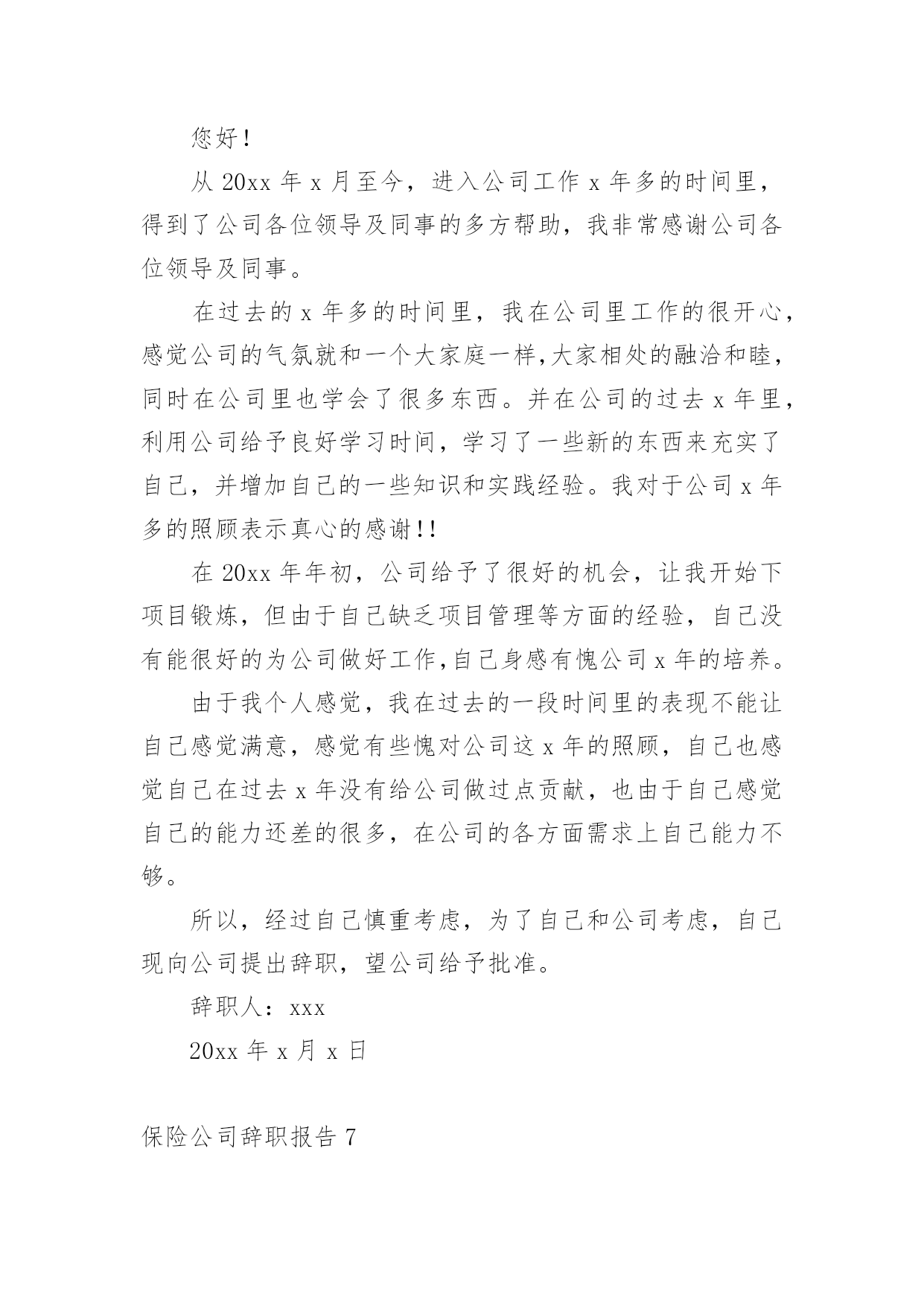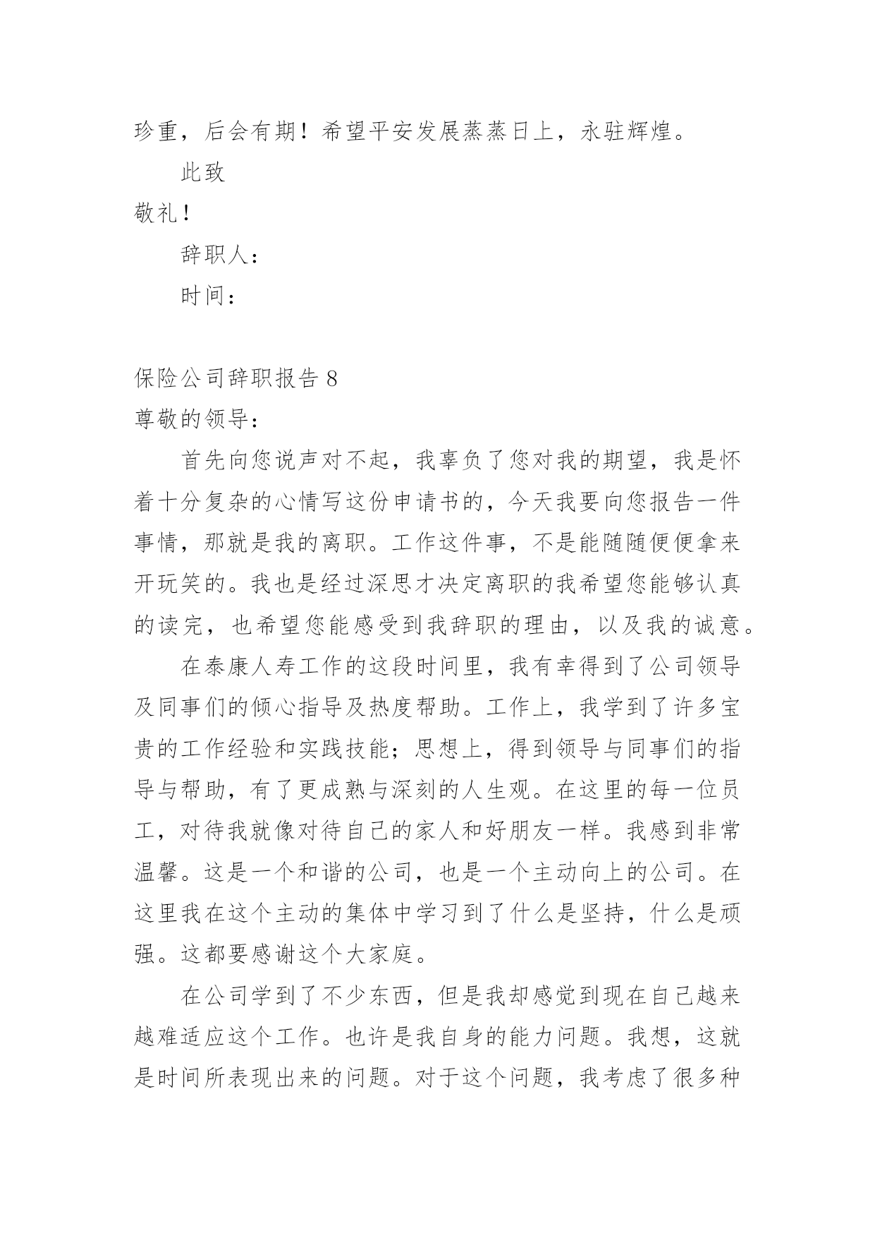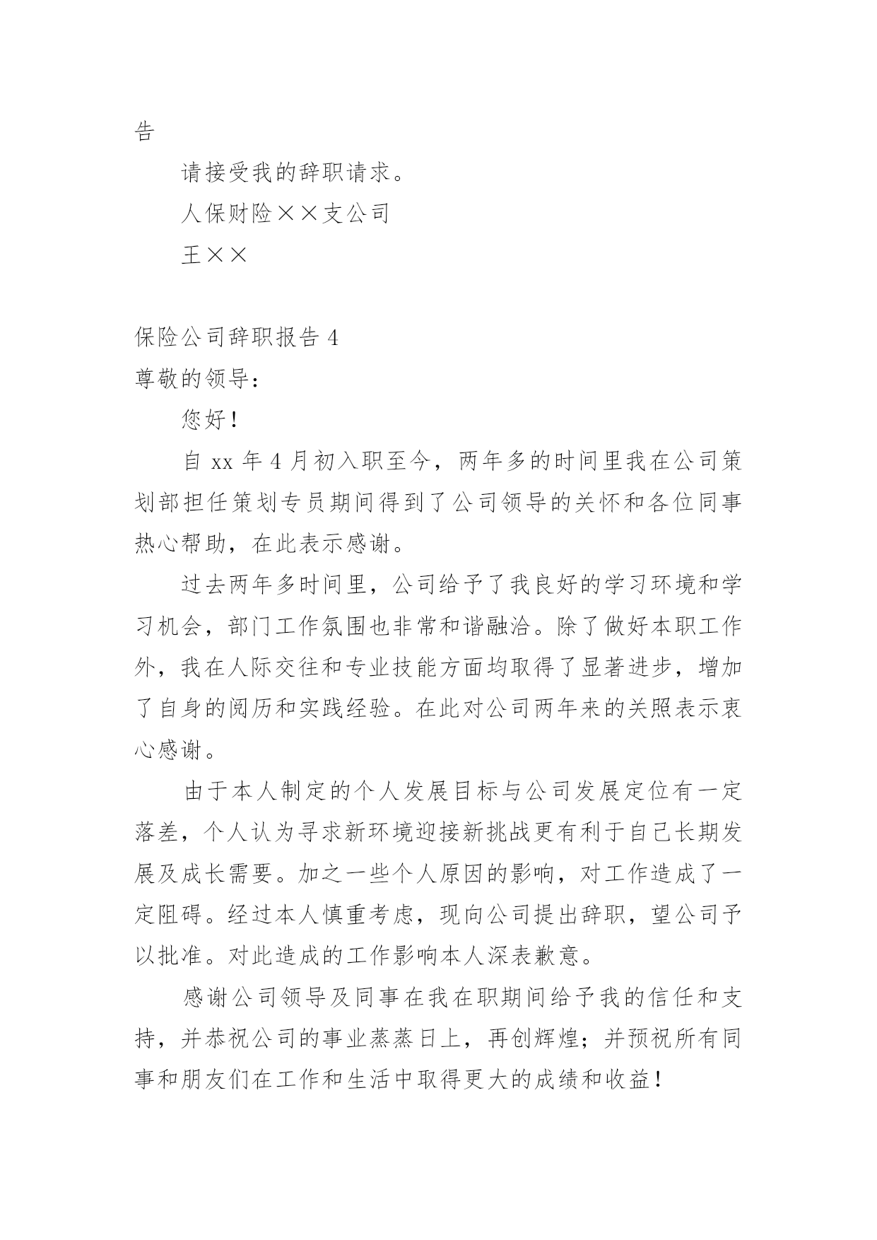 保险公司辞职报告现今,换工作是一件再正常不过的事了,有时会因为一些原因离开岗位,这时候领导就会要求我们写好辞职报告了。那么辞职报告应该包括什么内容呢?以下是小编精心整理的保险公司辞职报告,欢迎大家分享。保险公司辞职报告1尊敬的领导:您好!我是公司里的一名保险业务员,我叫xx。自从来到我们公司以后,我就为了公司的业绩,为了自己的目标而努力奋斗着。我虽然是位女性,但是我从来不甘落后于男性。我觉得女性也可以拥有事业,不仅要拥有自己的事业,还要在自己的事业里干出一番成就出来。所以这几年我为了打拼自己的事业,为了做出一点成绩,我每天除了工作就是工作。甚至把吃饭睡觉的时间都用来花在工作上。甚至我没有时间再来管我儿子的学业,也没能好好的照顾我儿子的生活。答应了她一起去游乐园玩耍的事情也一拖再拖。答应了我老公,全家一起出去旅游的事情,也全部被我出差的计划打乱了。所以这几年下来,我虽然在工作上有了一些成就,但是我的家庭却和我的距离越来越远了。直到上个月我老公跟我提出离婚的事情,而我儿子在知道后也愿意跟他爸爸一起走。我这才意识到这个问题的严重性,才领悟过来这几年我为了工作忽视了太多对他们的关注和照顾。上个星期我还和我老公心平气和的坐下来,就此事讨论了一个下午的时间。他说我以前不是这样子的,说我在没有从事这份工作以前,对于家庭对于儿子对于我都很上心。每天在他下班之前在我们儿子放学之前,我都会准备一桌美味可口的饭菜等着他们回来。家里面也都是被我打扫得干干净净。即便我工作再忙,我们一家人也要每年出去旅游玩耍一两次。可是自从我当上了这个保险业务员后。我就没有时间来为她们准备美味的饭菜了,每天都是晚上九十点才下班,甚至更晚。也没有时间来整理和打扫房间,因为我有很多的出差,有很多的工作行程要安排。甚至我连我儿子的衣服都没有时间洗,房间里面也总是一团乱七八糟。儿子的情感问题和学习情况,我也没有再过问。这个家开始变得没有温度起来。虽然我的事业心很重,虽然我对工作很负责任,虽然我渴望有一份独立的工作。但是我却忽视了,我的儿子更加需要我,我的家庭更需要我。所以我要辞职,重新回到我的家庭里,重新让这个家变得有温度起来。此致敬礼!辞职人:xx20xx年xx月xx日保险公司辞职报告2尊敬的组长、班长、部门经理、人事部经理:你们好,我将于30日后离职,与公司解除劳动关系,依据中华人民共和国劳动合同法第四章第三十七条,现正式予以告知,请尽快安排人员交接相关工作。请上级批准我的申请!谢谢!此致敬礼!辞职人:xxx20xx年xx月xx日保险公司辞职报告3**分公司:因个人职业选择的原因,我现在请求辞去在人保财险××支公司的职位。公司的企业文化感化了我,我对公司是深有感情的。来到人保公司两年了,正是在这里我开始踏上了社会,完成了自己从一个学生到社会人的转变。公司平等的人际关系和开明的工作作风,一度让我有着找到了依靠的感觉,在这里我能开心的工作,开心的学习。我要感谢人保公司两年来对我的培养,从试用到转正,公司给予了我成长的机会和学习发展的平台,各级领导和同事对我的指导、关心和帮助,将使我受益终身。在工作中我不断得到了张经理、汪经理以及各位部门经理的的教导与点拨、指点与帮助;在参加监护人责任险、学幼险承保时,团队合作中得到同事的帮助与协同;在进行疑案调查、代理××支公司出庭应诉处理保险诉讼案件过程中的收获,都使我受益菲浅。而工作之余同事之间亲密友好的关系,则使我终身难忘。离开保险公司的辞职报告辞职信和申请书范文离开保险公司的辞职报告辞职信和申请书范文我从xx年进入公司,正是××支公司经营最困难的时候,我亲身经历了公司摆脱被动不利局面、走上发展的正轨的全过程,同时我也为能在这样一个英明果断的领导班子和团结协作的同事之中工作过而骄傲。我清楚省公司接纳我们这批新人的决策眼光,公司正值用人之际,我很遗憾自己在这个时候向公司正式提出辞职。人保财险××支公司美好的发展前景及良好的合作氛围让我在即将离去之际仍感不舍,但今因个人原因,我已决定离开公司,希望我的离去不会给公司带来任何不便;对分公司各位领导、张经理的赏识与信任,我将终抱感激之情。今后,无论我将怎样生活,我都会永远感激人保公司对我的培养,在我困难的时候,工作中不成熟的时候给我的帮助和宽容。是人保公司给了我现在拥有的一切。我保证并宣誓:一、遵守法律法规、遵守保险职业道德规范。二、保守人保公司商业秘密及各项管理。离开保险公司的辞职报告辞职信和申请书范文各类报告请接受我的辞职请求。人保财险××支公司王××保险公司辞职报告4尊敬的领导:您好!自xx年4月初入职至今,两年多的时间里我在公司策划部担任策划专员期间得到了公司领导的关怀和各位同事热心帮助,在此表示感谢。过去两年多时间里,公司给予了我良好的学习环境和学习机会,部门工作氛围也非常和谐融洽。