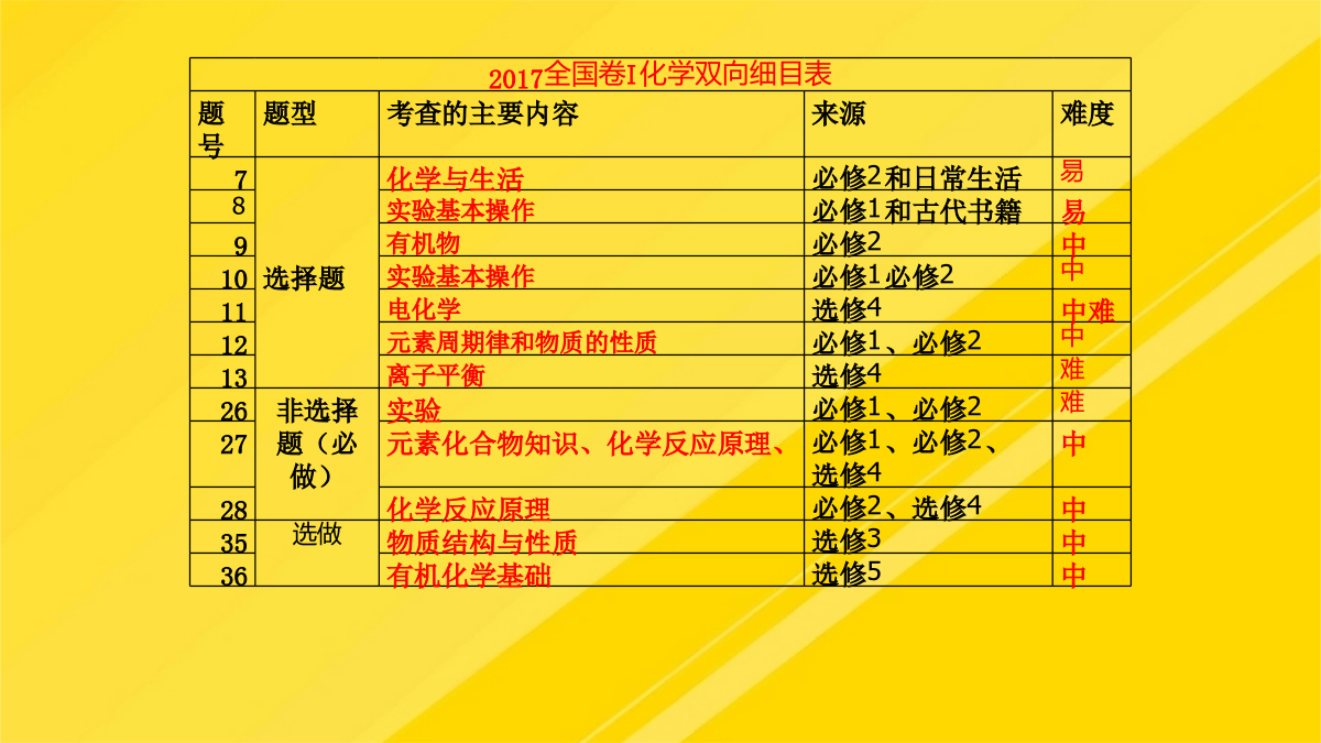 年高考化学试题分析及年高考一轮复习策略PPT文档.pptx