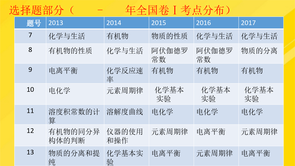 年高考化学试题分析及年高考一轮复习策略PPT文档