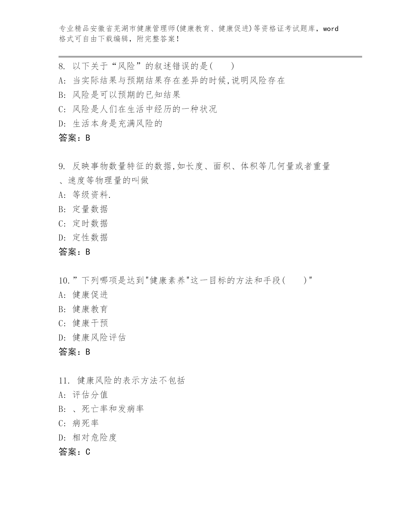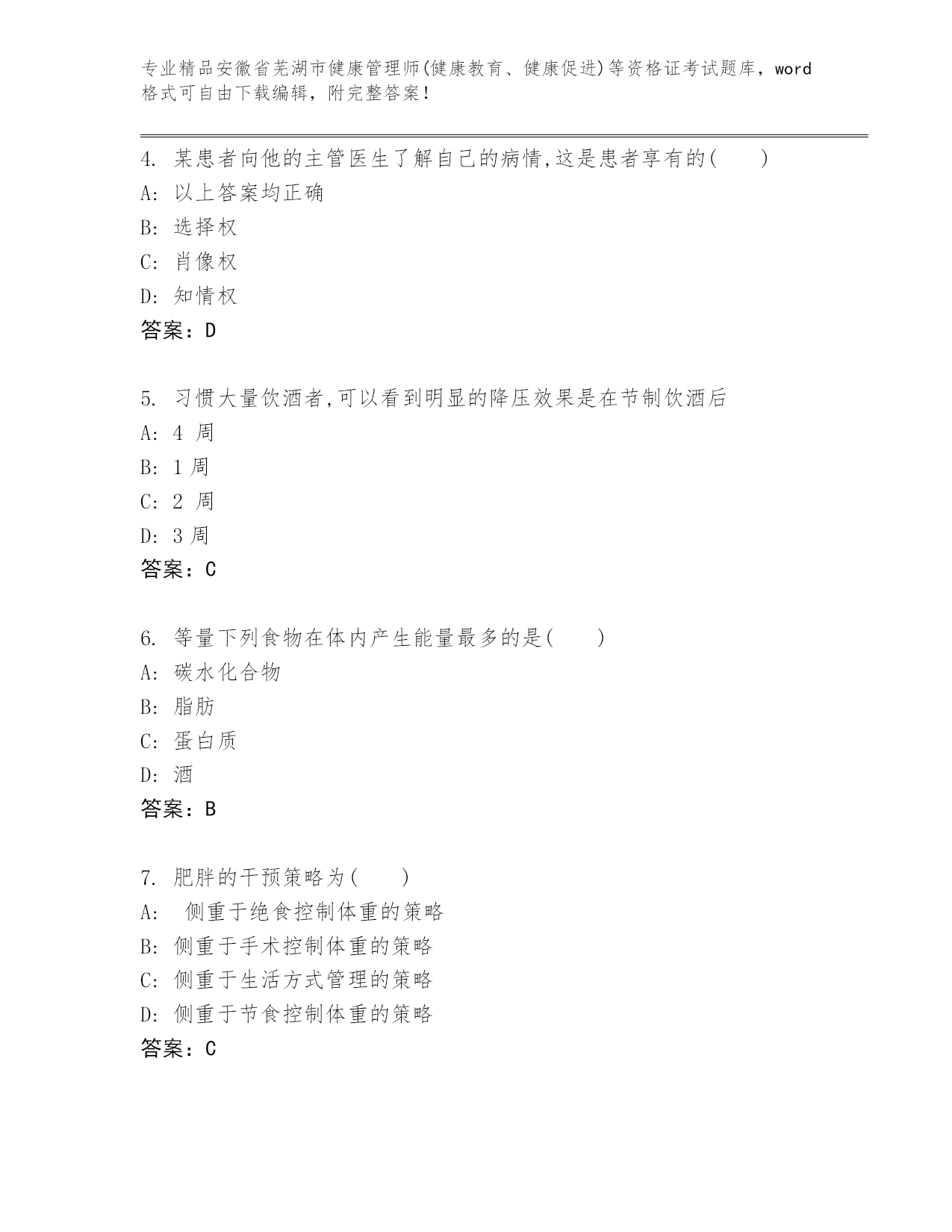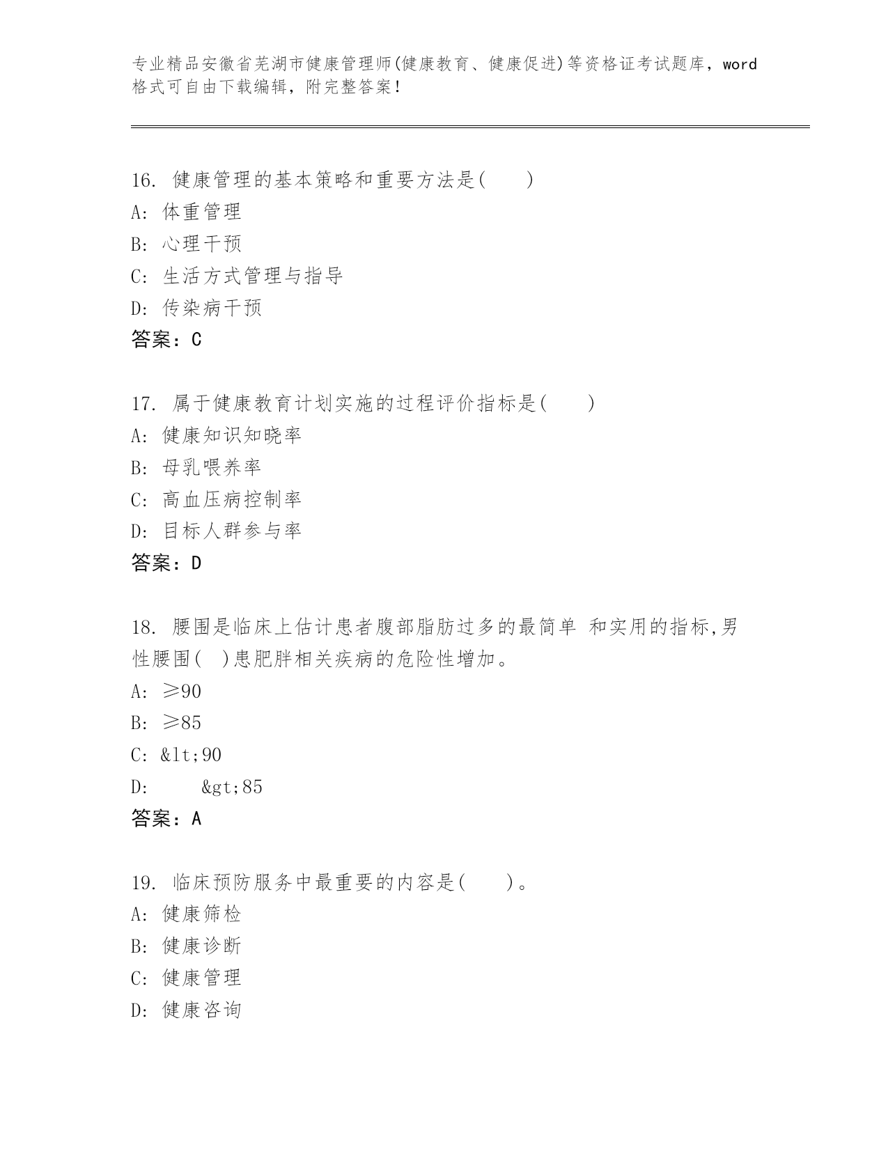 2024年安徽省芜湖市健康管理师(健康教育、健康促进)等资格证考试完美版.docx
