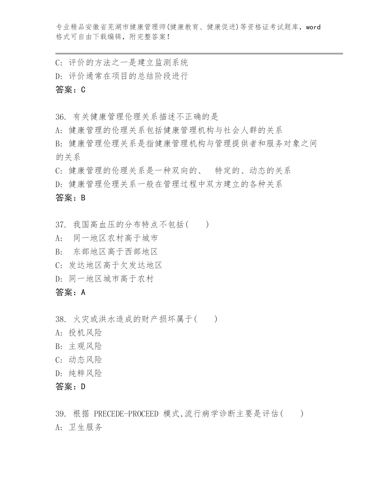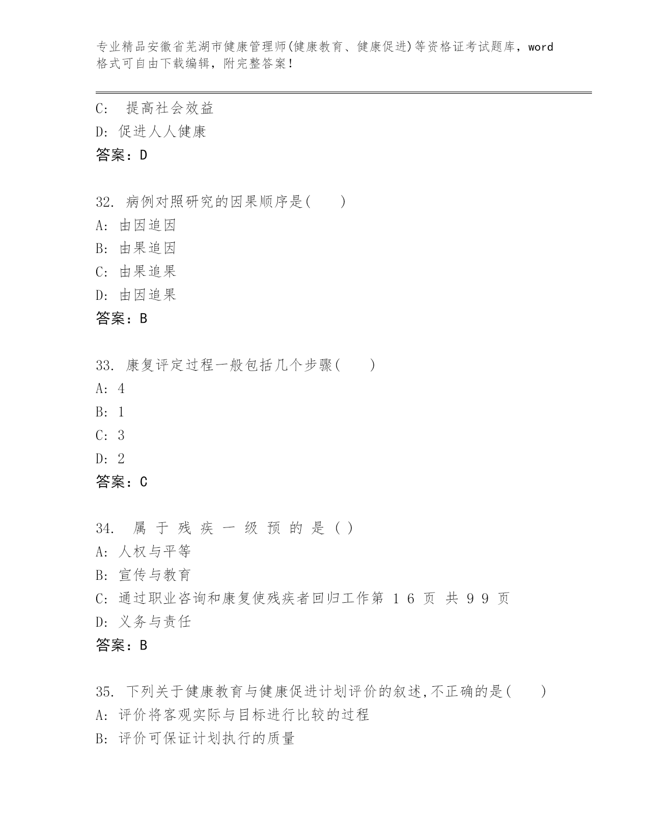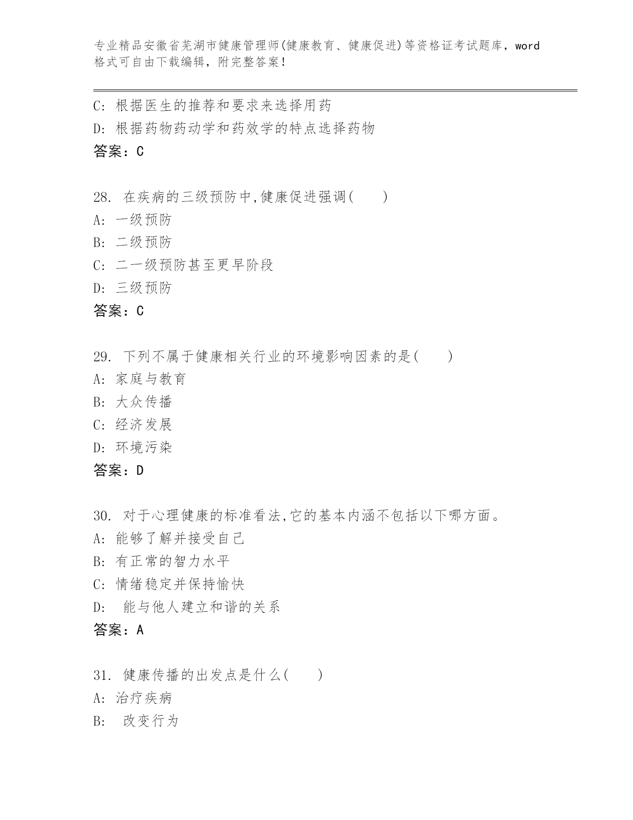 2024年安徽省芜湖市健康管理师(健康教育、健康促进)等资格证考试完美版.docx