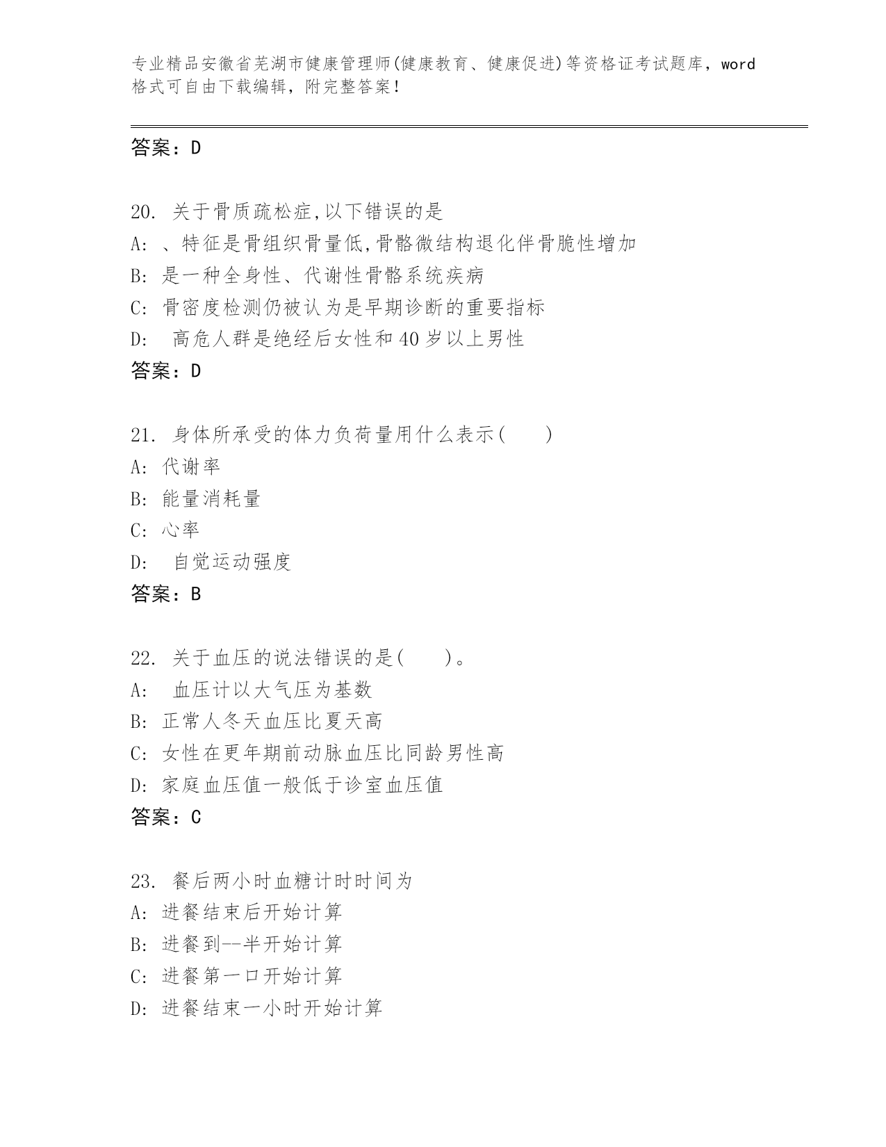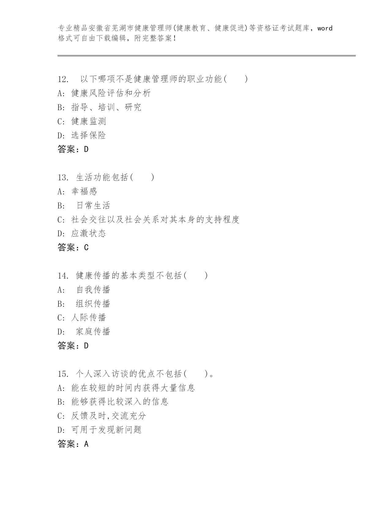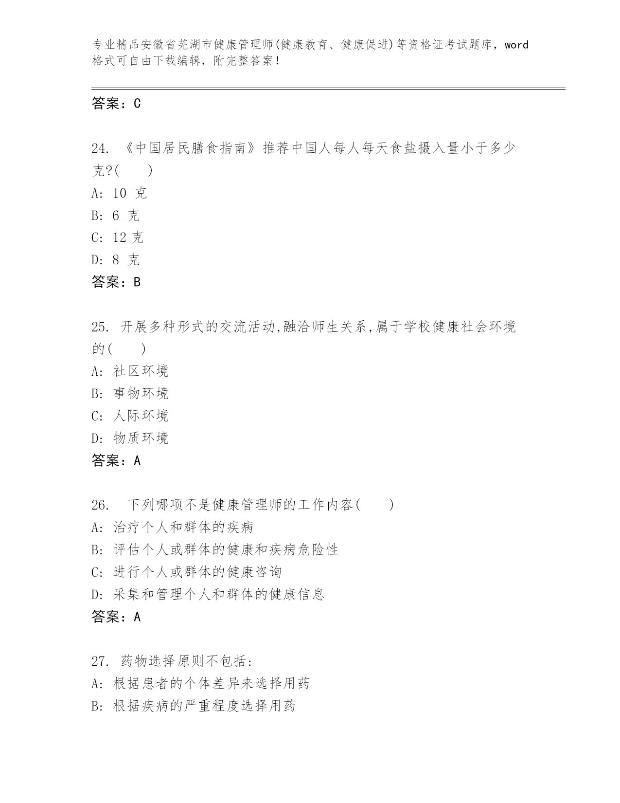 2024年安徽省芜湖市健康管理师(健康教育、健康促进)等资格证考试完美版