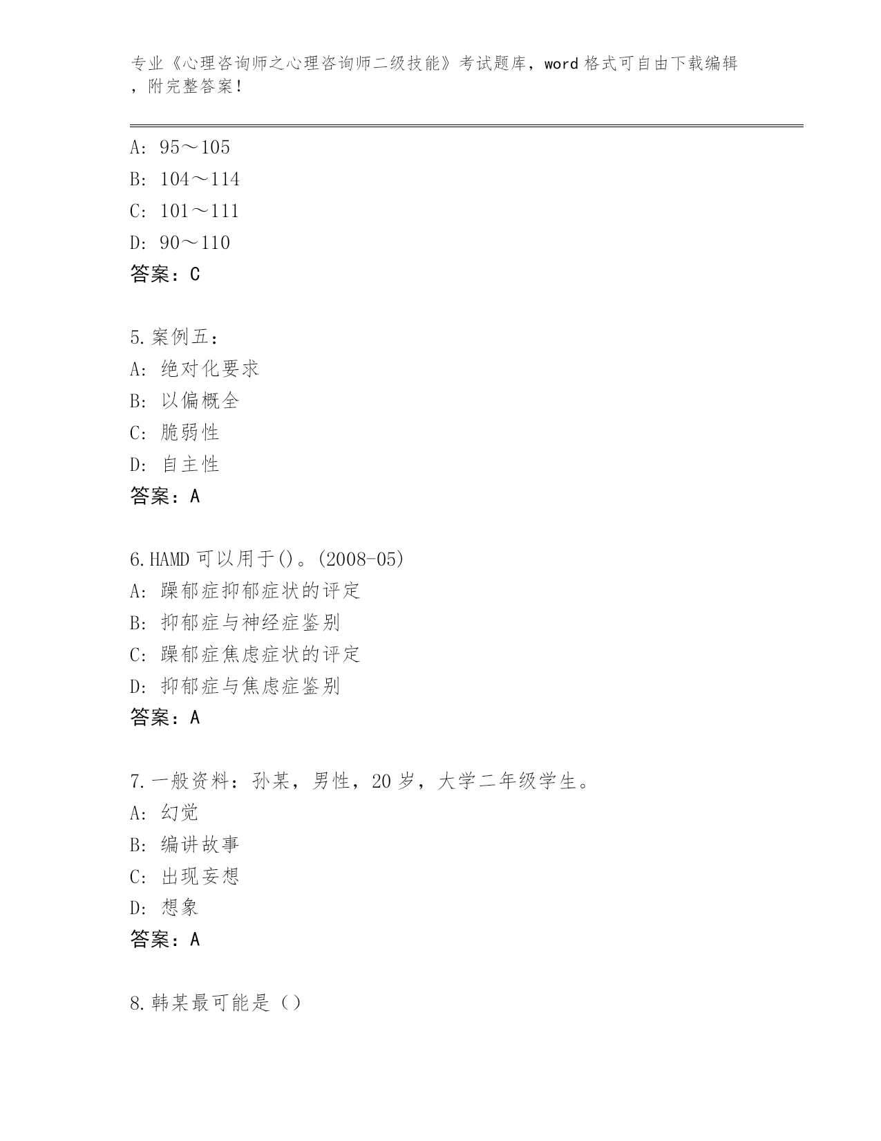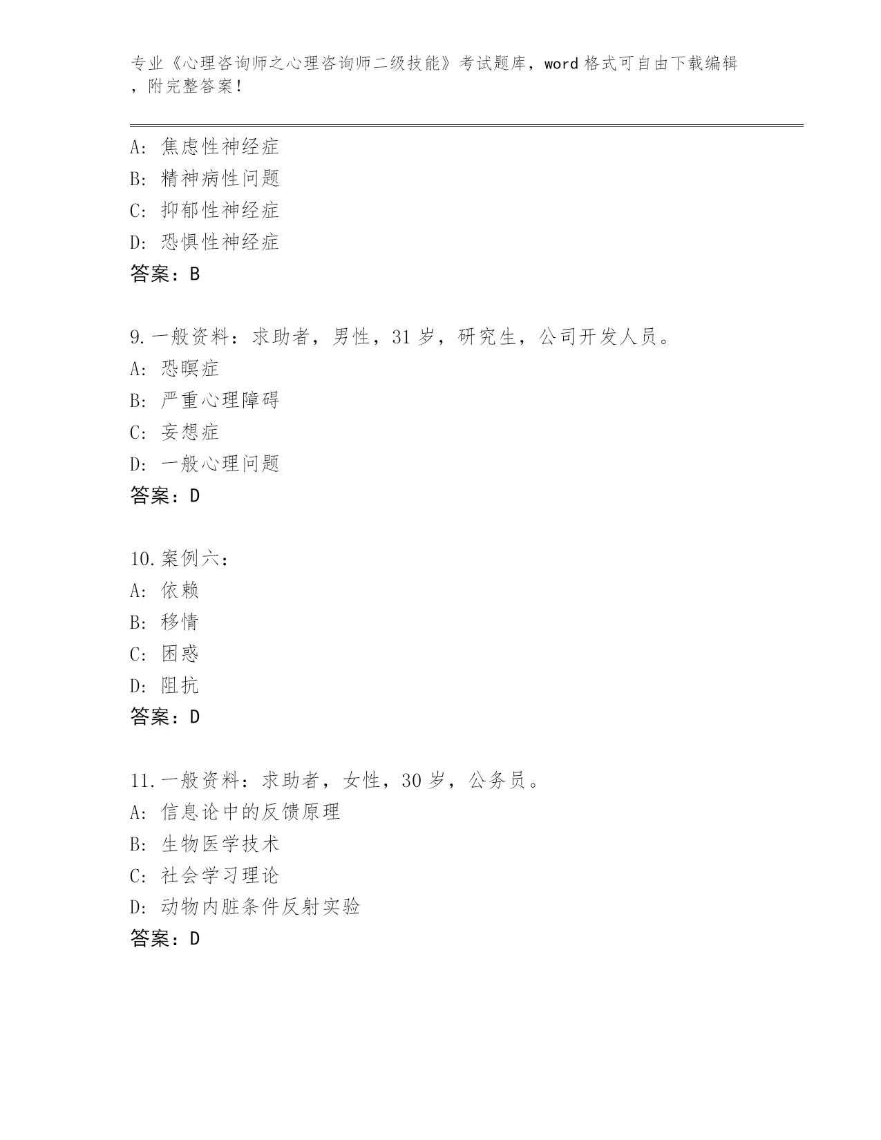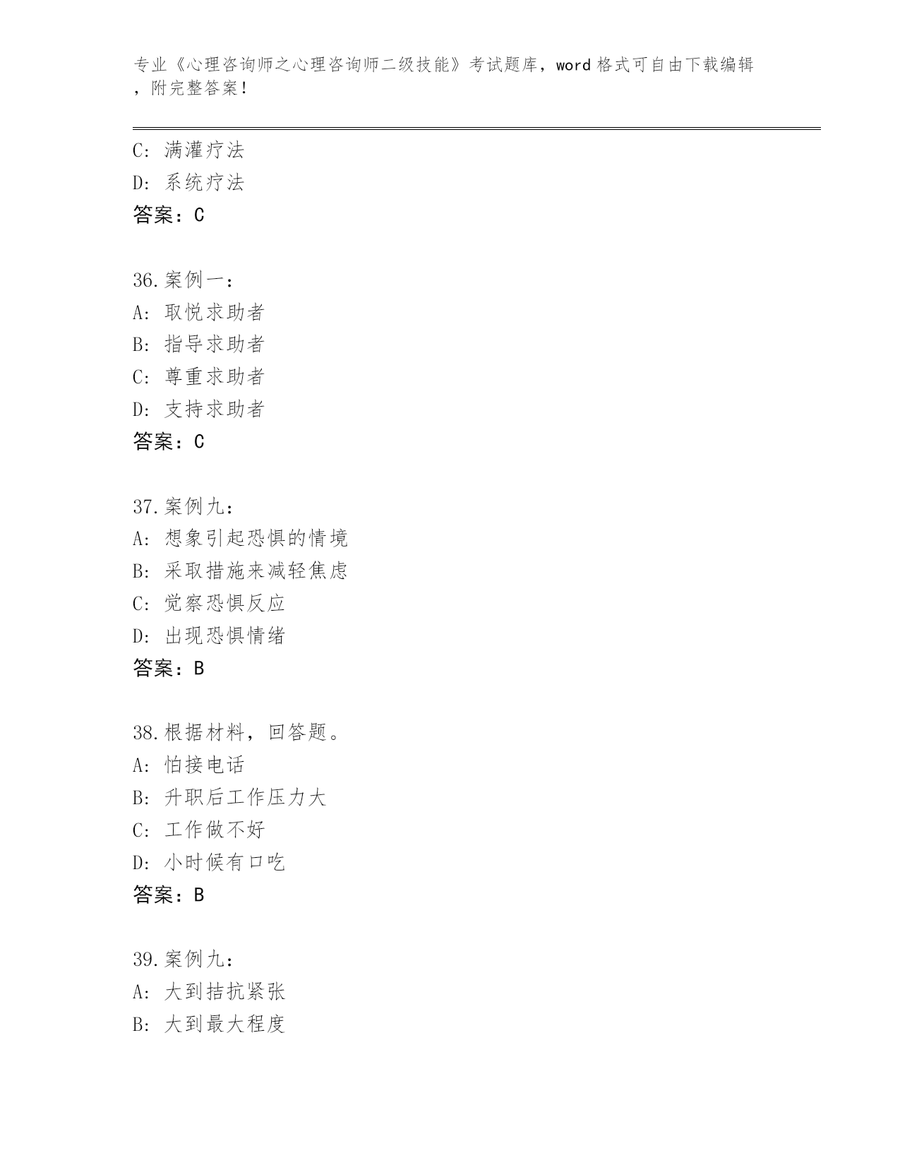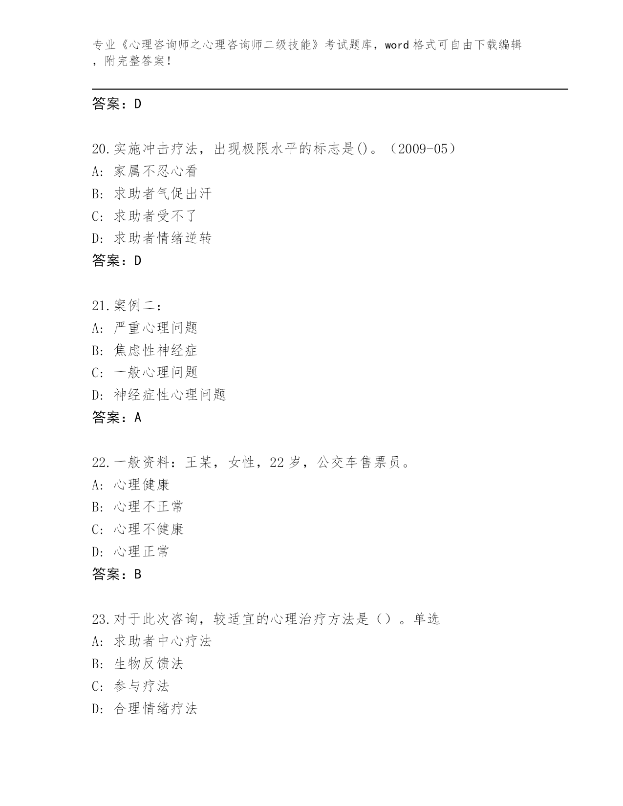 内部使用河北省邯郸县《心理咨询师之心理咨询师二级技能》考试完整题库(夺冠系列)