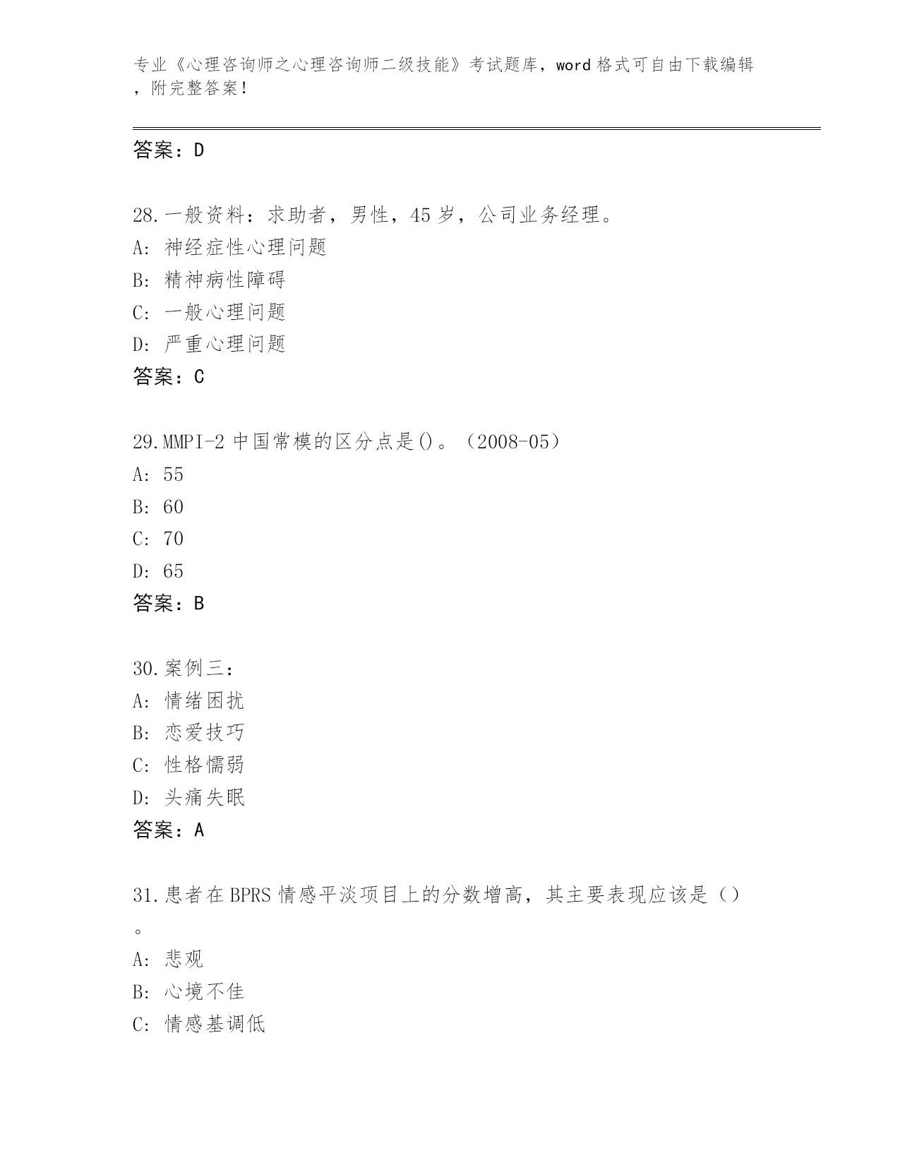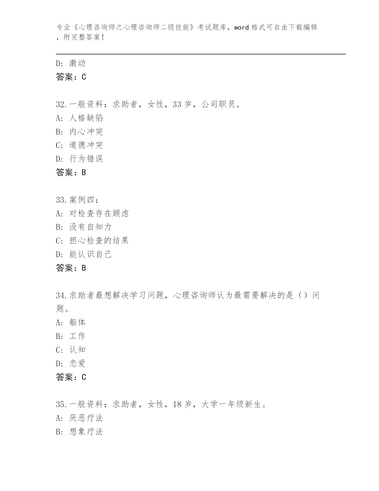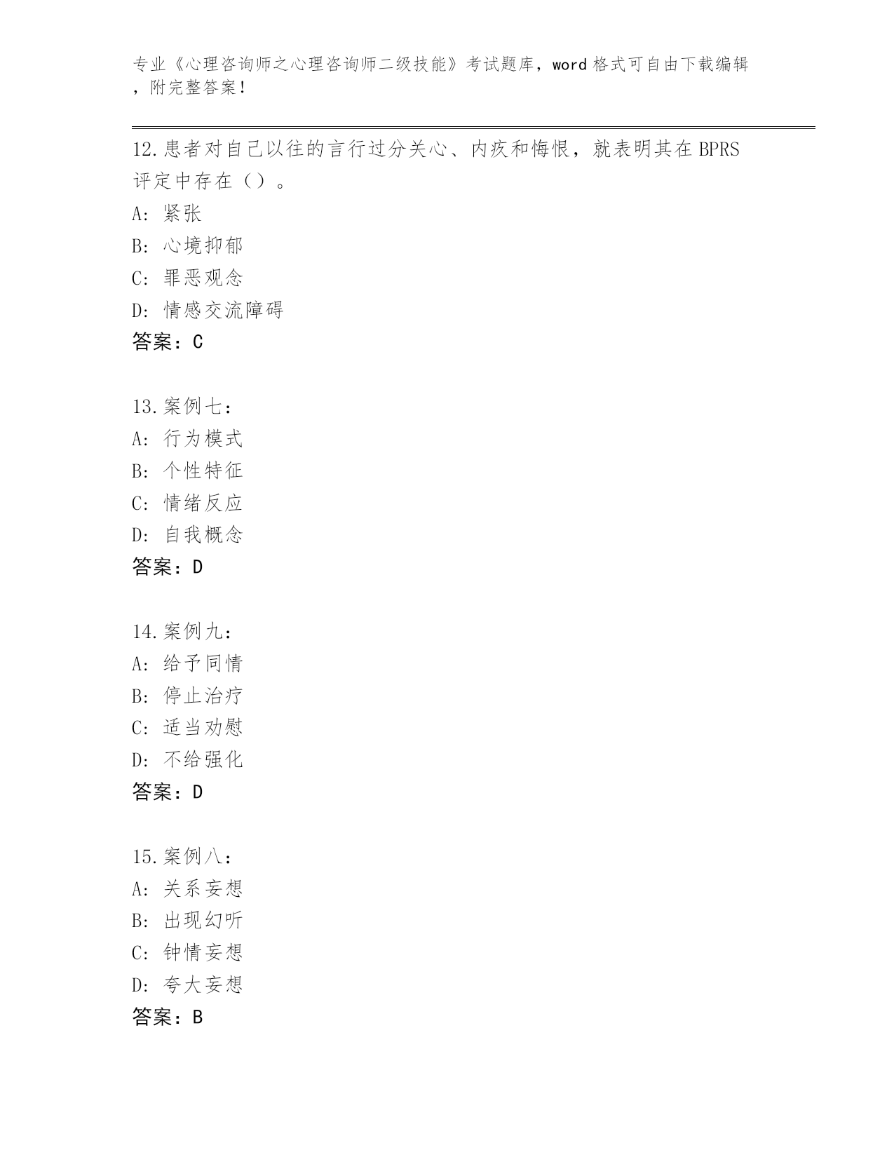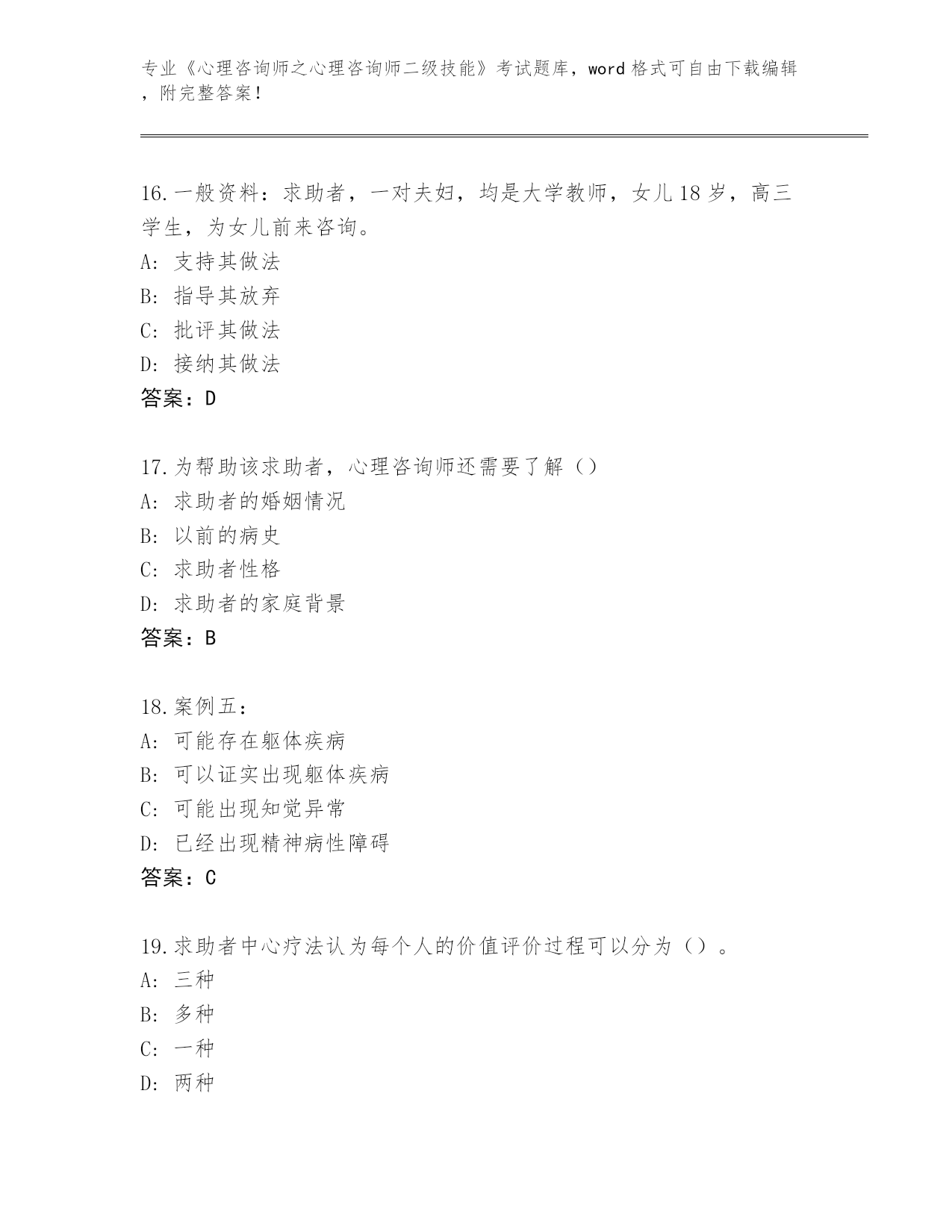 内部使用河北省邯郸县《心理咨询师之心理咨询师二级技能》考试完整题库(夺冠系列)