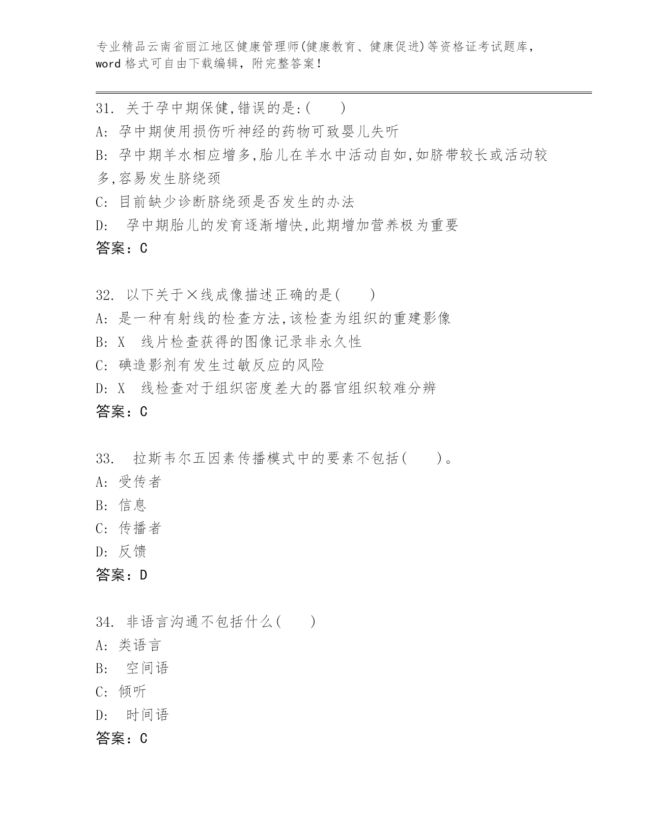 历年云南省丽江地区健康管理师(健康教育、健康促进)等资格证考试真题题库带答案(培优).docx