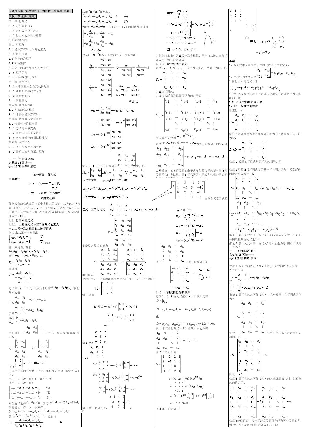 最新自考线性代数-自考核心考点笔记-自考重点资料