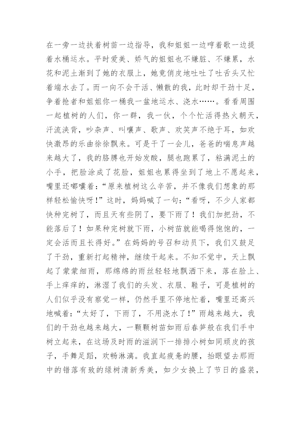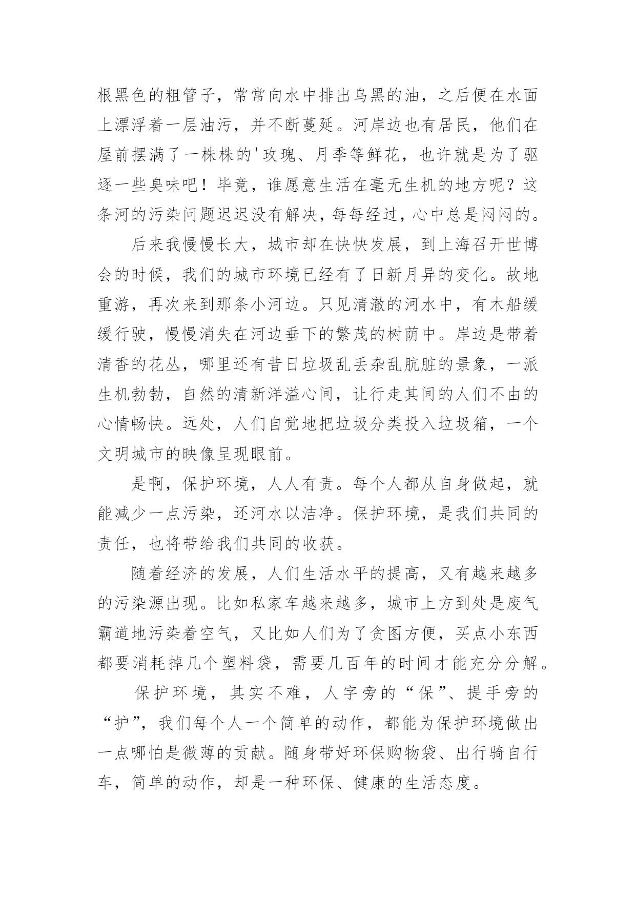 绿色环保作文绿色环保作文在日常的学习、工作、生活中,大家最不陌生的就是作文了吧,作文根据写作时限的不同可以分为限时作文和非限时作文。你知道作文怎样写才规范吗?下面是小编帮大家整理的绿色环保作文,欢迎阅读与收藏。绿色环保作文1轻轻地打开记忆之窗,看到的不仅有嫩绿的草坪,碧绿的山峦,金黄的麦田,蔚蓝的大海,更有那大自然形形色色、多姿多彩美丽的画卷,其中最令我难忘的是一次绿色环保植树活动。春天来了,阳光如泉水一样清澈透明,让人的心灵如洗般清爽。风轻轻的如母亲的手,软软的如叮咛,光滑的如丝绸拂面而来。天蓝得如一泓秋水,云儿如丝绸上精美的刺绣,时隐时现。小燕子在空中自由自在欢快地飞舞……。在如此美丽的初春,万科组织了一次绿色环保植树活动。一大早,我和姐姐便高高兴兴的连蹦带跳地来到了会所前的空地排队领树苗。在春天的沐浴下,我们站在暖融融的'阳光下,一边唱歌,一边说笑。盼望着早一点领到小树苗,去体验神奇美妙的植树活动。终于发到我们了,是一颗缀满粉红色的花苞的桃树和一颗娇艳欲滴的杏树。我们把树苗连拖带扛地运到了植树地点。爸爸挥起了铲子开始挖坑,妈妈在一旁一边扶着树苗一边指导,我和姐姐一边哼着歌一边提着水桶运水。平时爱美、娇气的姐姐也不嫌脏、不嫌累,水花和泥土渐到了她的衣服上,她竟俏皮地吐吐了吐舌头又忙着端水去了。而一向不会干活、懒散的我,此时却干劲十足,争着抢者和姐姐你一桶我一盆地运水、浇水……。看看周围一起植树的人们,你一群,我一伙,个个忙活得热火朝天,汗流浃背,吵杂声、叫嚷声、歌声、欢笑声不绝于耳,如欢快激昂的乐曲徐徐飘来。可是干了一会儿,爸爸的喘息声越来越大了,我的胳膊也开始发酸,腿也跑累了,粘满泥土的小手,把脸涂成了花脸,姐姐也累得坐到了地上不愿起来,嘴里还嘟囔着:“原来植树这么辛苦,并不像我们想象的那样轻松愉快呀!”这时,妈妈喊了一句:“看呀,不少人家都快种完树了,而且天有些阴了,要下雨了!我们加把劲,不能落后了!如果种完树就下雨,小树苗就能喝得饱饱的,一定会活而且长得好。”在妈妈的号召和动员下,我们又鼓足了干劲,重新打起精神,继续干起来。不知不觉中,天上飘起了蒙蒙细雨,那绵绵的雨丝轻轻地飘洒下来,落在脸上、手上痒痒的,淋湿了我们的头发、衣服、鞋子,可是植树的人们似乎没有察觉一样,仍然手里不停地忙着,嘴里还高兴地喊着:“太好了,下雨了,不用浇水了!”雨越来越大,我们的干劲也越来越大,一颗颗树苗如雨后春笋般在我们手中树立起来,在这场及时雨的滋润下一排排小树如同顽皮的孩子,手舞足蹈,欢畅淋漓。我直起疲惫的腰,抬眼望去那雨中的错落有致的绿树清新秀美,如少女换上了节日的盛装,为春天舞蹈,如绿色的精灵,跳跃出诗情画意,而我们不就是最优秀的画师,正用辛勤的劳动和色彩勾画着这美丽的季节吗?看到这里我们微微地笑了。通过这次绿色环保植树活动,我亲手美化了我们的家园,为春天涂抹了一片翠绿,为大自热增添了一份保障,给我们的心灵留下了一块净土。轻轻地关上记忆之窗,可那浓郁如酒的花香和那清淡如茶的绿叶的芳香仍然如溪水般静静地流淌进我的心扉……绿色环保作文2环保,能让世界变的干净。春天来了,大地万物开始苏醒,一片片生机盎然的树木,让我们每个人在心中都产生一份爱,那就是绿色,就是对绿色的热爱。在跑道上跑步,你看到路两边的树木时,你会感到腿脚的轻便;在清澈的池塘里玩耍时,你泼起水花,心情会感到格外的舒畅;坐在书桌旁看书,当你无意中看到书桌上那一盆绿色的植物时,你一定会感到学习的轻松……吃着一盘盘绿色环保的蔬菜,内含人体不可缺少的营养,是我们成长的必要因素。可是往往有不如人意的时候,那就是我们经常看到沾污在花草树木上的垃圾,粘在地上的口香糖,还有人随意乱吐痰,随处乱写乱画,这些都让人觉得特别的脏,特别的恶心。这也相当于一个城市的脸和面,所以更觉得环保的重要。前段时间,听说国家将要求超市不再免费发放白色塑料袋,也是因为白色垃圾袋成为环保的主要问题。上周还听说我们盐城市区向广大市民发放了10000只环保购物袋。这几天在一些污水河段,我们经常看到有人在清理河面上飘浮的杂物......国家的一些研究调查数目统计:我国已有128个河流被严重污染,大部分都是工厂排放污水,人们乱丢垃圾所造成。星期天,我抽空去了秦淮河一带,离河有4至5米处,便闻到了难闻的.臭味,腥臭的死鱼、白色塑料、水果腐烂……搅拌在一起的味道,令人不得不捂起鼻子,甚至这样,都难以抵挡,另人尴尬不已。原来应靠着河畔边杨柳享受风光,坐在长椅上津津有味读着小说,倚在梧桐树的枝丫上锻炼的老人、青年、儿童现在都一散而光。那是因为杨柳被顽皮的儿童折得只剩枯枝残叶,河里散发阵阵恶臭,大树的浓荫被破坏所导致的种种结果。“1、2、3、4、5……”说得夸张点,这似乎比天上的星星还难。这时,从我头的正前方,一个鼓鼓囊囊的黑色塑料