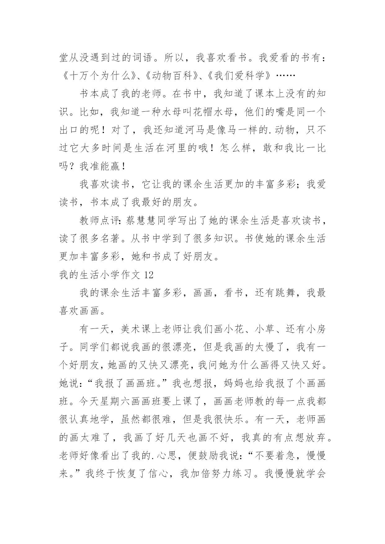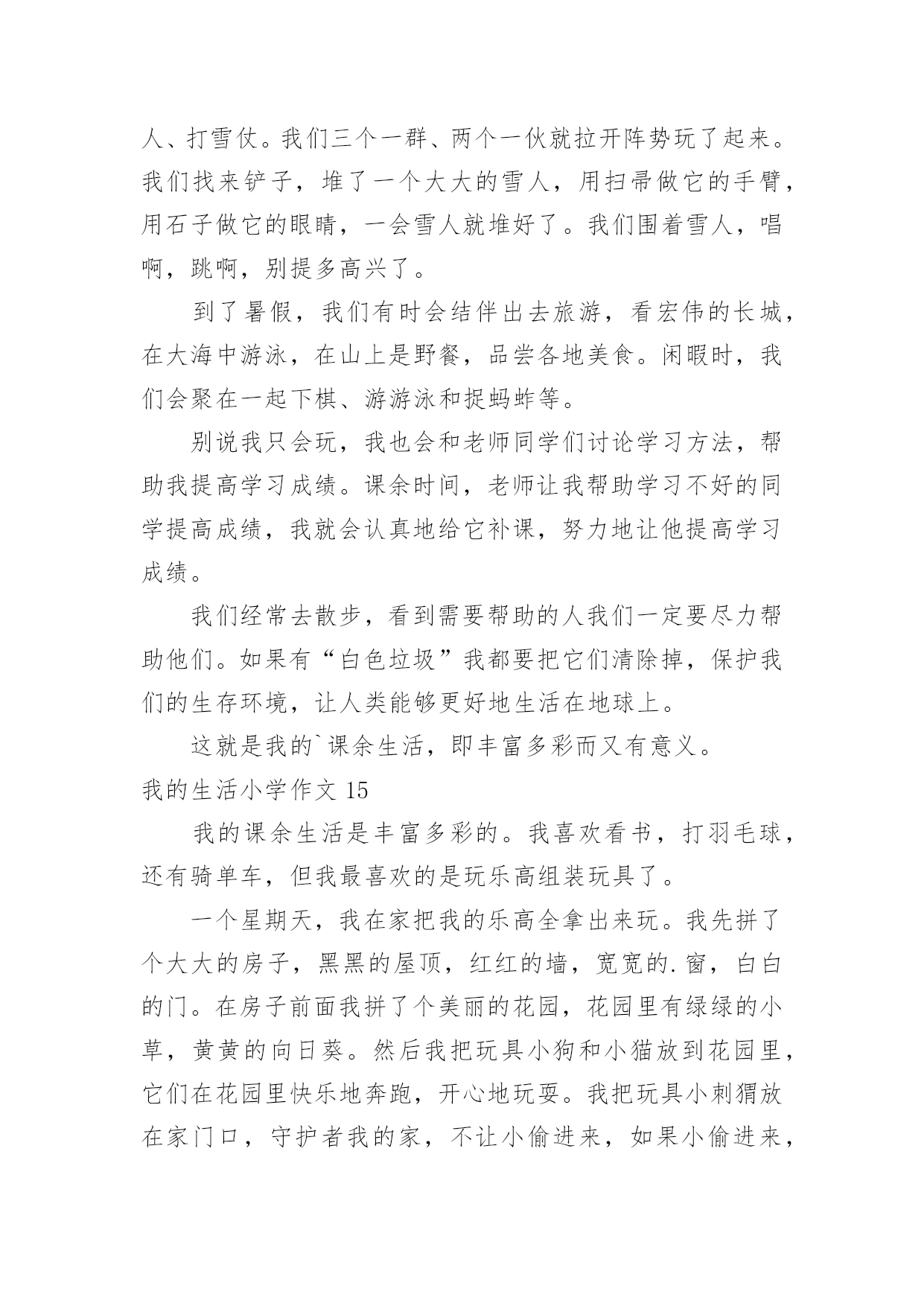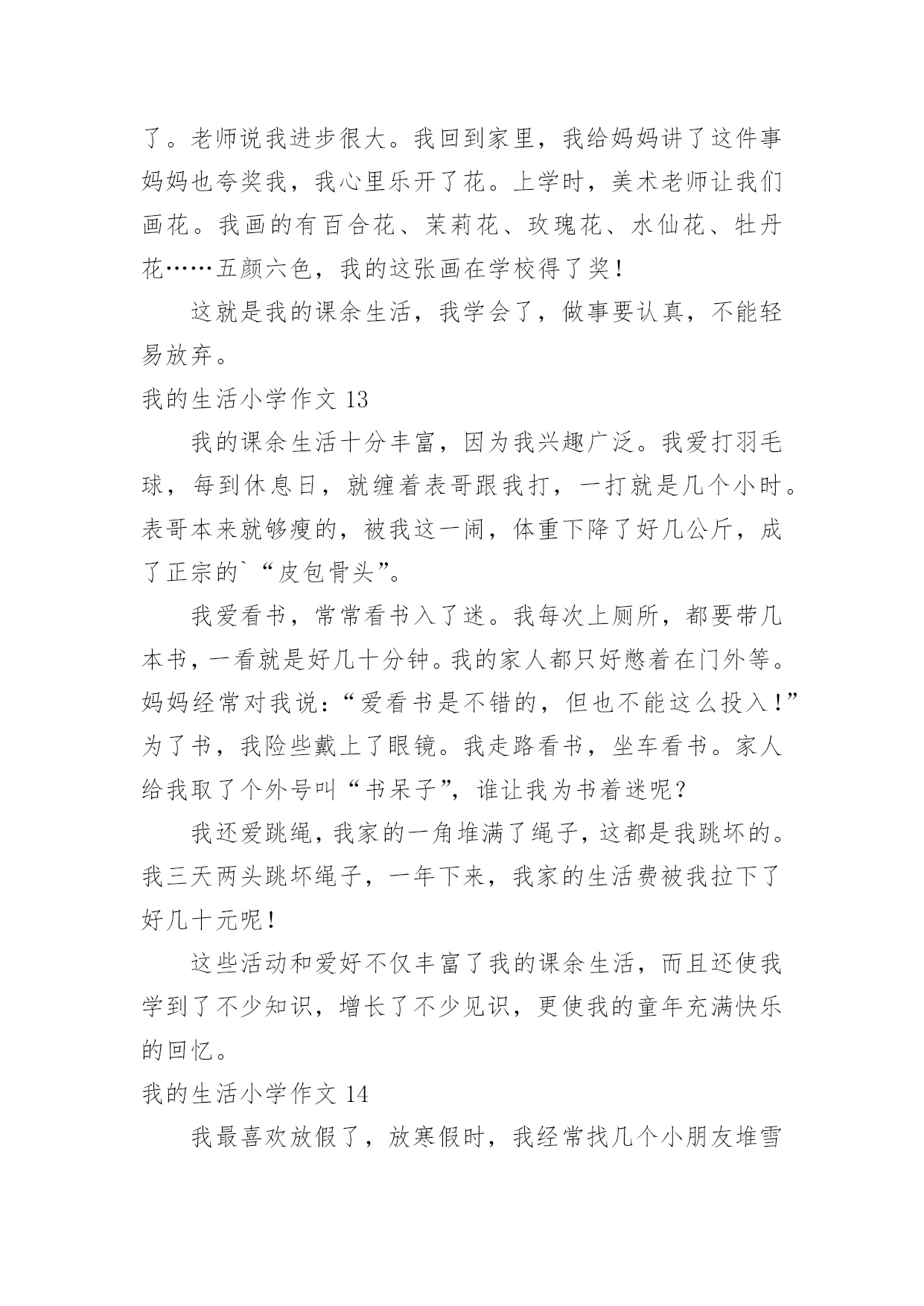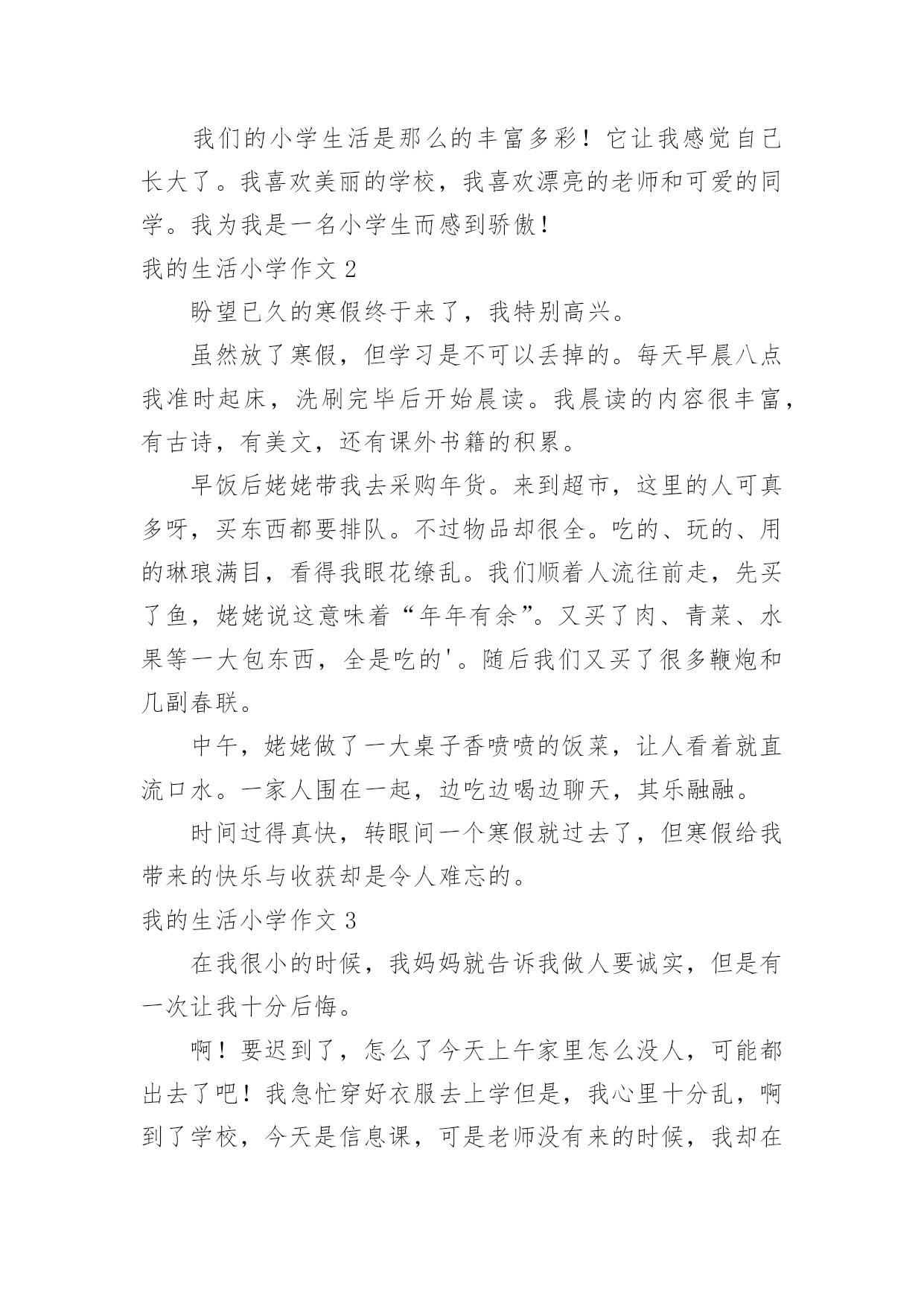 我的生活小学作文我的生活小学作文在日常生活或是工作学习中,大家都不可避免地会接触到作文吧,写作文是培养人们的观察力、联想力、想象力、思考力和记忆力的重要手段。你知道作文怎样才能写的好吗?下面是小编帮大家整理的我的生活小学作文,仅供参考,欢迎大家阅读。我的生活小学作文1今年暑假,我结束了我的幼儿园生活,开始了我期待很久的小学生活。第一天上学校的时候,我既开心、好奇,又有点儿害怕、紧张,怕交不到新朋友。慢慢地,我喜欢上了我的小学生活,因为我不仅交到许多新朋友,还认识了新的老师。我很喜欢我的老师们,是她们让我学到了很多新的知识。我的语文老师教我们学习拼音还有汉字,让我们养成阅读的好习惯;数学老师教我们数学题,让我学会开动脑筋;音乐老师教我们唱很多好听的歌;科学老师带我们认识了很多身体方面的小秘密;美术老师教我们很多画画的'技巧。哦,还有我们的体育老师,让我们锻炼身体,告诉我们:少年强,则国强!哇,我们的老师真多呀!我们的老师本领也非常大!我们的小学生活是那么的丰富多彩!它让我感觉自己长大了。我喜欢美丽的学校,我喜欢漂亮的老师和可爱的同学。我为我是一名小学生而感到骄傲!我的生活小学作文2盼望已久的寒假终于来了,我特别高兴。虽然放了寒假,但学习是不可以丢掉的。每天早晨八点我准时起床,洗刷完毕后开始晨读。我晨读的内容很丰富,有古诗,有美文,还有课外书籍的积累。早饭后姥姥带我去采购年货。来到超市,这里的人可真多呀,买东西都要排队。不过物品却很全。吃的、玩的、用的琳琅满目,看得我眼花缭乱。我们顺着人流往前走,先买了鱼,姥姥说这意味着“年年有余”。又买了肉、青菜、水果等一大包东西,全是吃的'。随后我们又买了很多鞭炮和几副春联。中午,姥姥做了一大桌子香喷喷的饭菜,让人看着就直流口水。一家人围在一起,边吃边喝边聊天,其乐融融。时间过得真快,转眼间一个寒假就过去了,但寒假给我带来的快乐与收获却是令人难忘的。我的生活小学作文3在我很小的时候,我妈妈就告诉我做人要诚实,但是有一次让我十分后悔。啊!要迟到了,怎么了今天上午家里怎么没人,可能都出去了吧!我急忙穿好衣服去上学但是,我心里十分乱,啊到了学校,今天是信息课,可是老师没有来的时候,我却在玩我最喜欢的穿越火线游戏,但是老师嘱咐我们千万不要玩,不要被校长逮到,要不然会被开除学籍,的`心里十分慌张,深怕校长来-偷看……还好校长没有来,但是一个沉重的脚步声慢慢靠近,是谁?原来是我们的信息课老师-史俊,史老师一进门就说:同学们今天还好吗?没有人上游戏吧!大家都喊没有,而我却一个字也没有说,连忙关游戏,老师视乎发现了我,就朝我走来,问我:你说对不对。我连忙说对,老师对我笑了笑。就去上课了。下课了老师把我叫到办公室。说我知道你上课玩了游戏,但是以后不要这样好吗,我眼睛里闪出泪花。啊老师你是多么,伟大,我再也不撒谎了我的生活小学作文4经过紧张的期末考试,期待已久的暑假终于到来了。一个多月的暑假生活过去了,我给妈妈说了我的暑假感想,妈妈,我觉得放假还不如上学呢,为什么呢,暑假的一个月妈妈给我报了语文、数学、英语辅导班,还有钢琴班,每天上完这课,赶着要上下一节课,晚上还要写辅导班的作业,钢琴课老师想着,放假了,多安排一些课,加强练习,其他辅导班也是,放假了,每周增加课时,就这样,暑假的`第一个月比上学时还要累。虽然这个暑假很累,但是,我的收获还是很大的,让我更加相信,有付出就有回报,以后我要更加努力!我的生活小学作文5在我繁忙的学习之余,我还有五彩缤纷的课余生活,我喜欢:做手工、养花、读书、画画……其中我最喜欢做手工。有一天,我突然心血来潮,想用蛋壳来做一个精美的小装饰。我把用的工具准备好,然后就做了起来。我先把一张粉色的卡纸,撕成一小片一小片,用胶水把小纸片不规则的站在蛋壳上,然后找一个瓶盖做鼻子,粘在蛋壳的那个洞上。再搓四个大小基本相同的小圆球,做动物的脚,用胶水粘在蛋壳一面的边缘上。在粉色的纸上剪下两个小拇指大小的纸片,做这个动物的耳朵,最后再揉一个长一点儿的纸团,作尾巴,把耳朵和眼睛粘上之后,用水彩笔画上两个笑咪咪的'眼睛和一个微笑的嘴巴,这个动物就大功告成了。快来猜猜这是个什么动物吧?对了,就是一头可爱粉嘟嘟的小猪,我称它为“蛋壳小猪!”做手工既可以丰富我们自己的头脑,又可以让我们的双手变得更灵巧,还能让我们得到更多的快乐。我的生活小学作文6暑假,爸爸带我和哥哥到北京登长城。到了八达岭脚下,我抬头一望,弯弯曲曲的长城了,就好像一条巨龙,伸向天边。再看看笔陡的石阶,真让人发颤!开始爬长城了,我十分激动。我像小猴子一样一个劲地往上爬,一边爬,一边欣赏着风景。高高的山上长满了青青的小草,很美丽。爬到了半山腰,我脸上大汗淋漓,累得气喘吁吁,脚也麻了,腿也酸了。这时,哥哥跟我说:“加油,我们比赛吧。”“好嘞!”我答