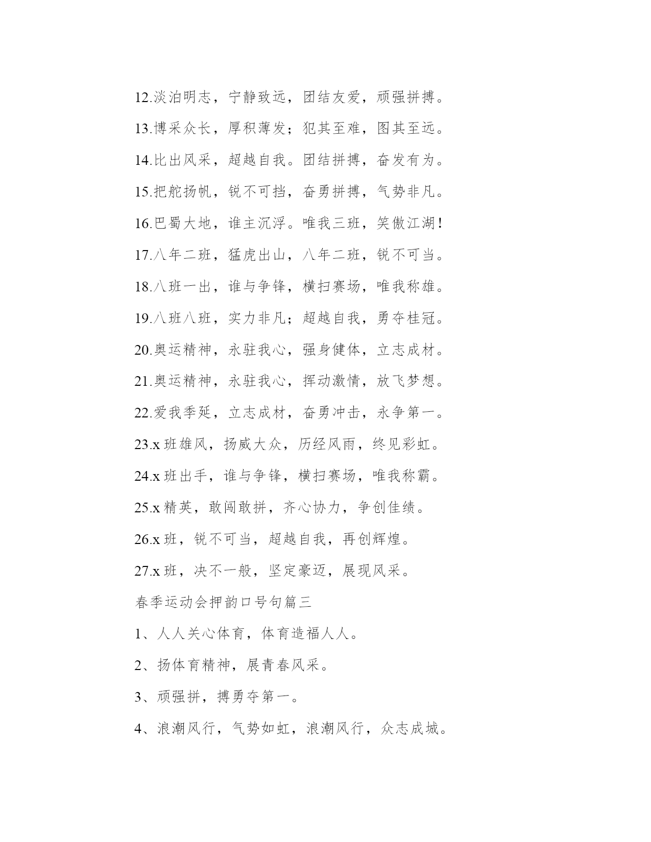 春季运动会押韵口号句春季运动会押韵口号(优秀13篇).docx