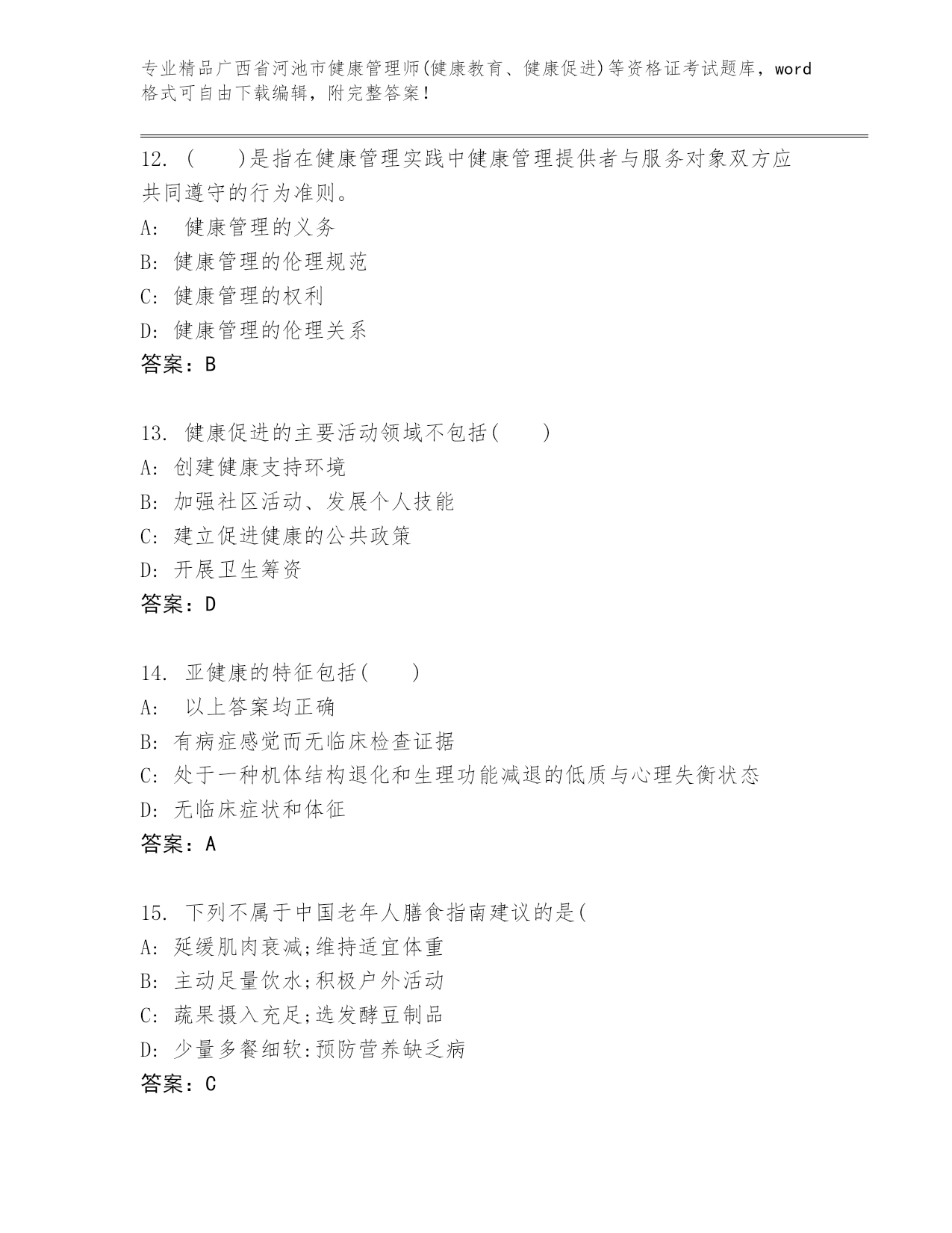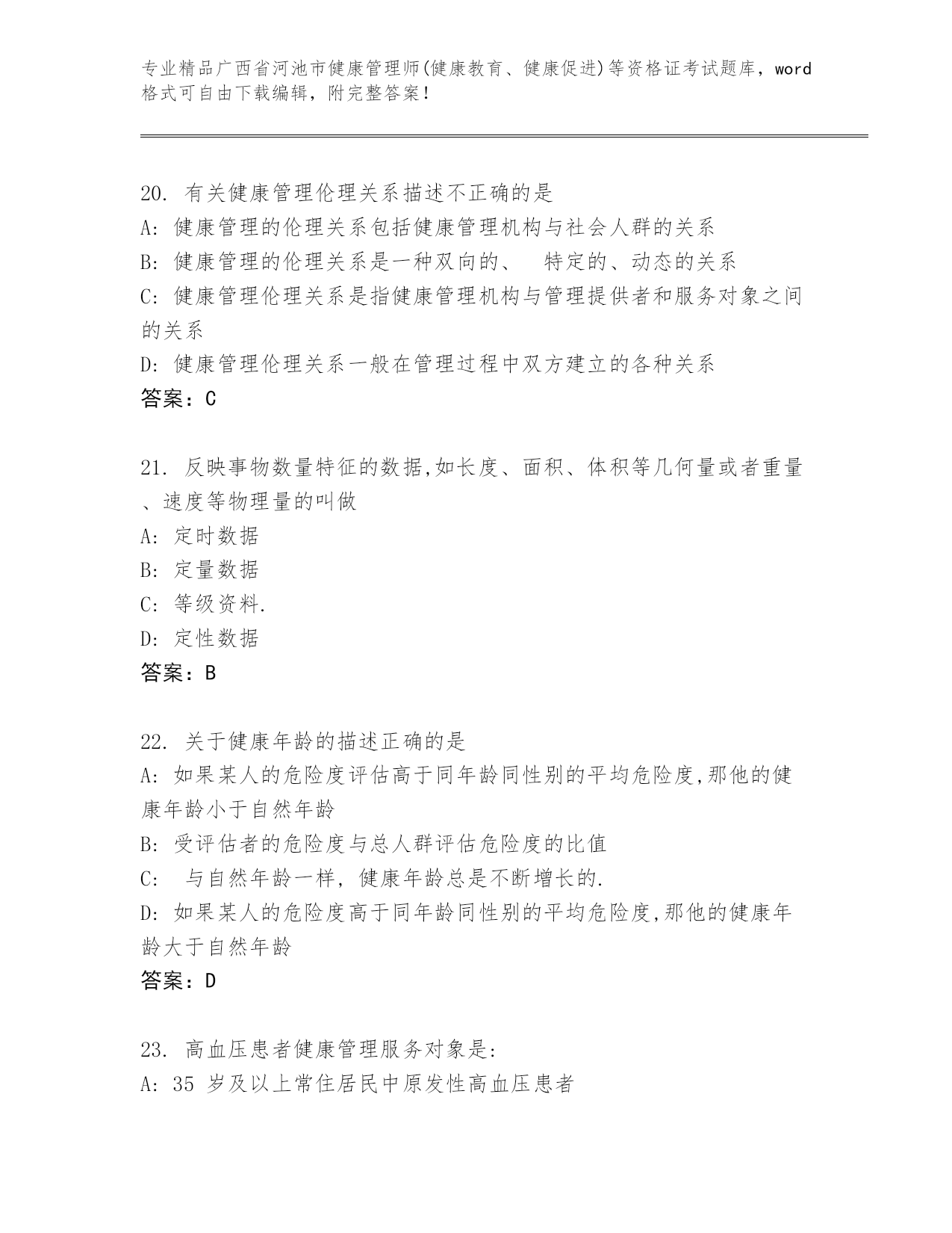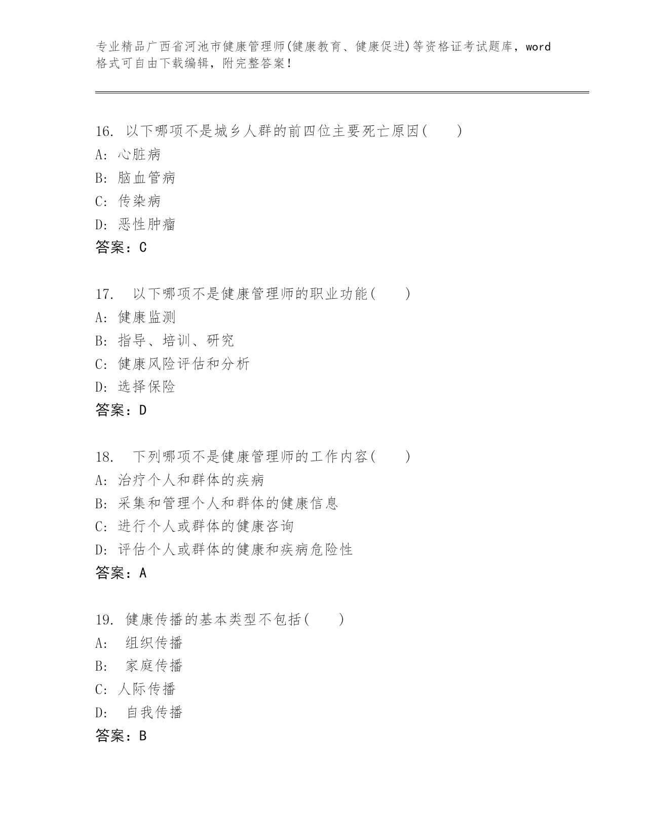 历年广西省河池市健康管理师(健康教育、健康促进)等资格证考试附答案(B卷).docx