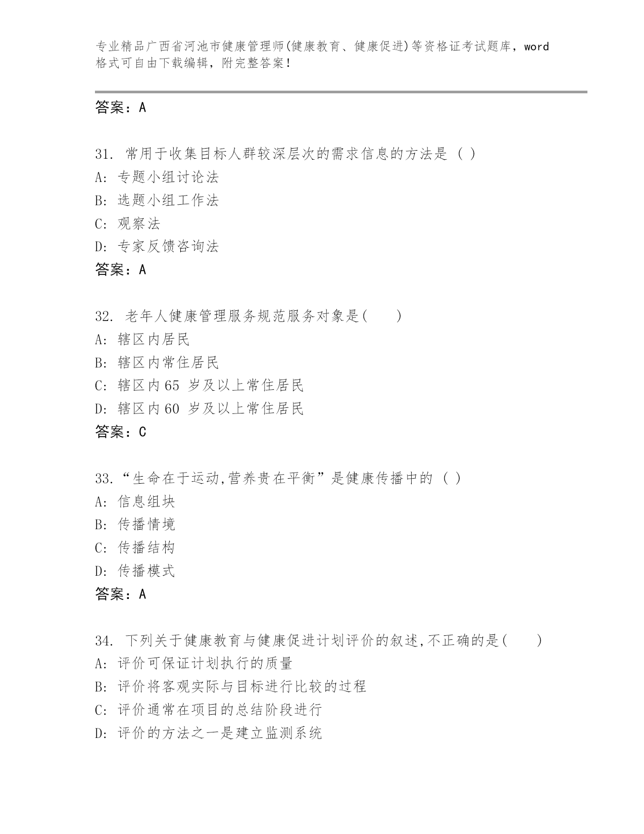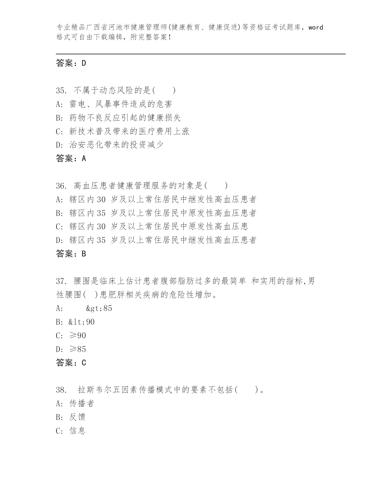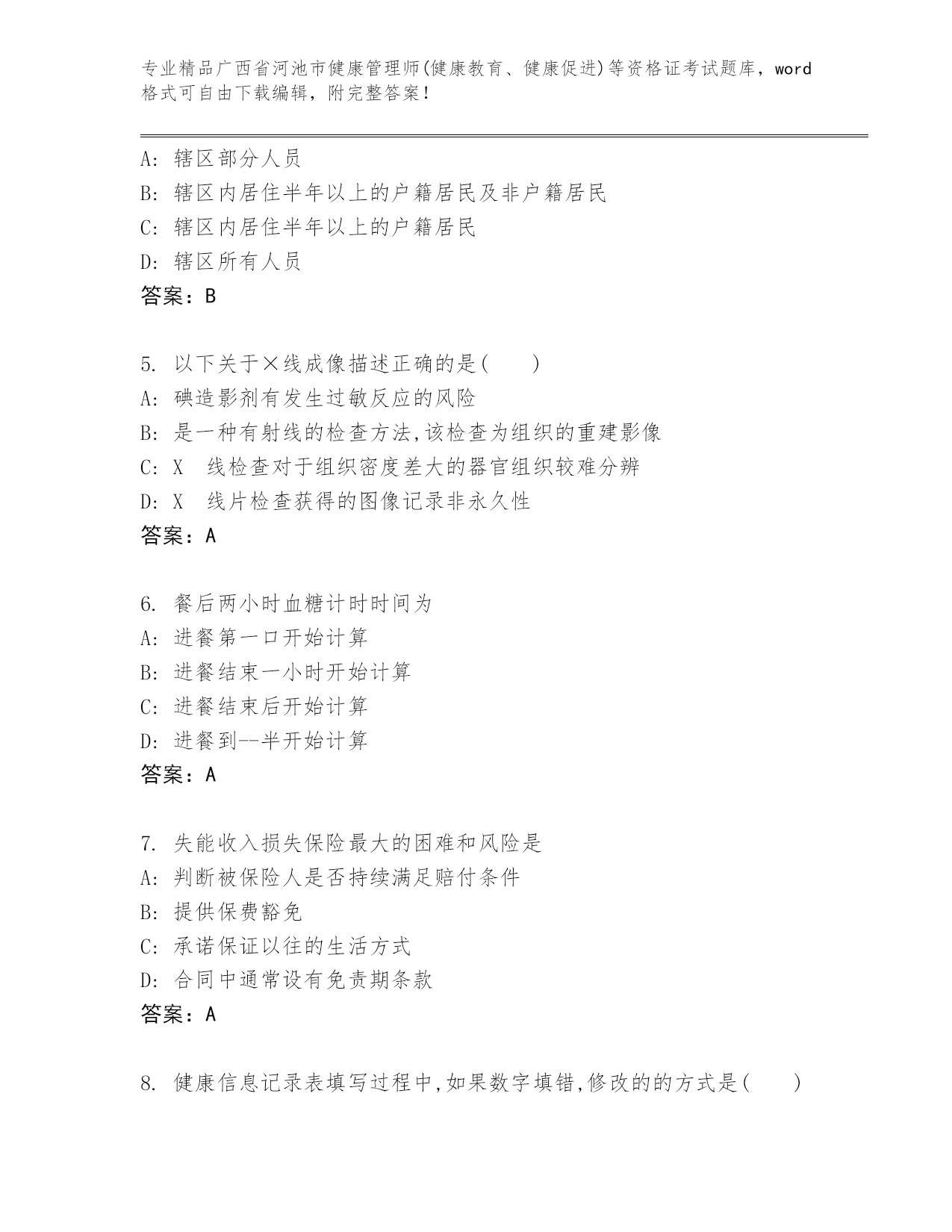 历年广西省河池市健康管理师(健康教育、健康促进)等资格证考试附答案(B卷).docx