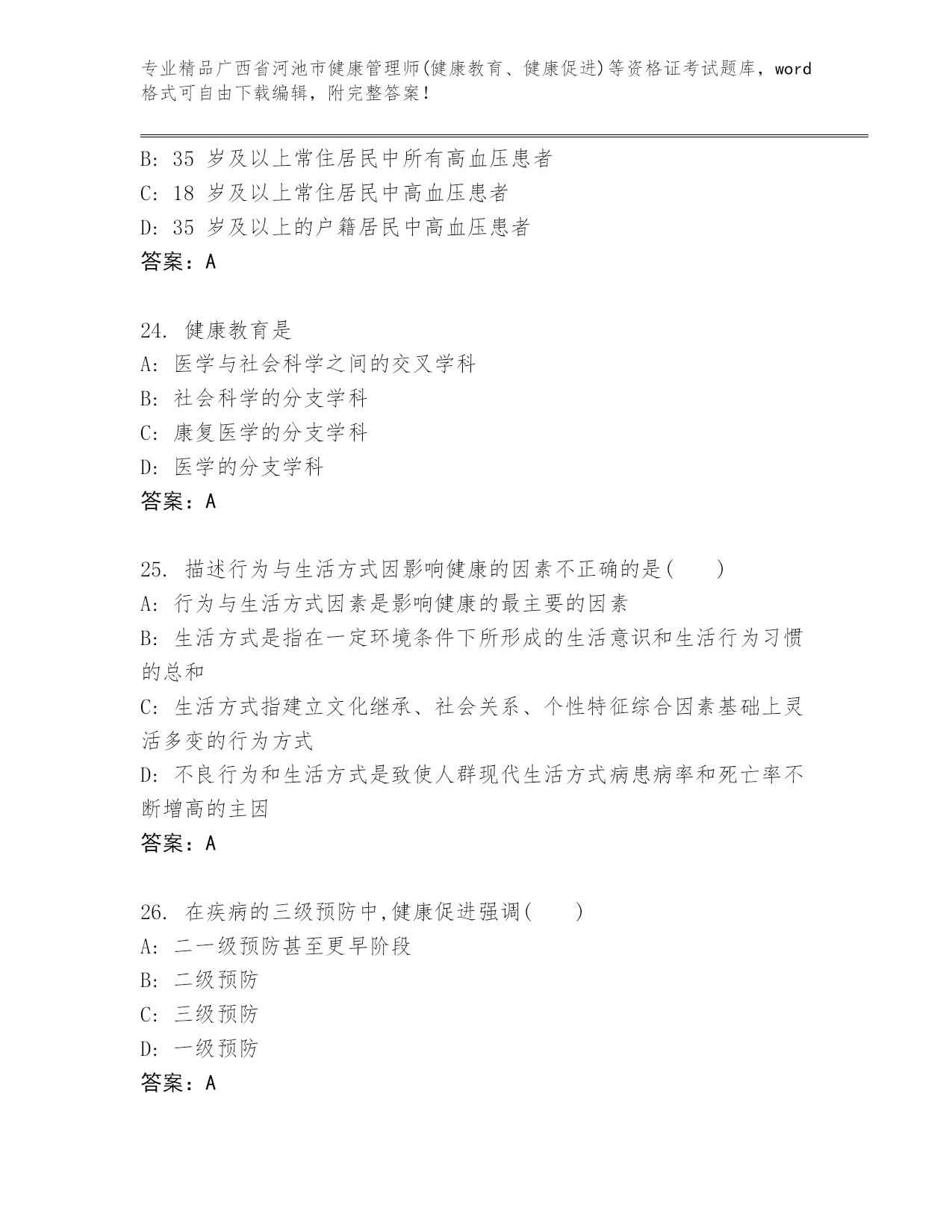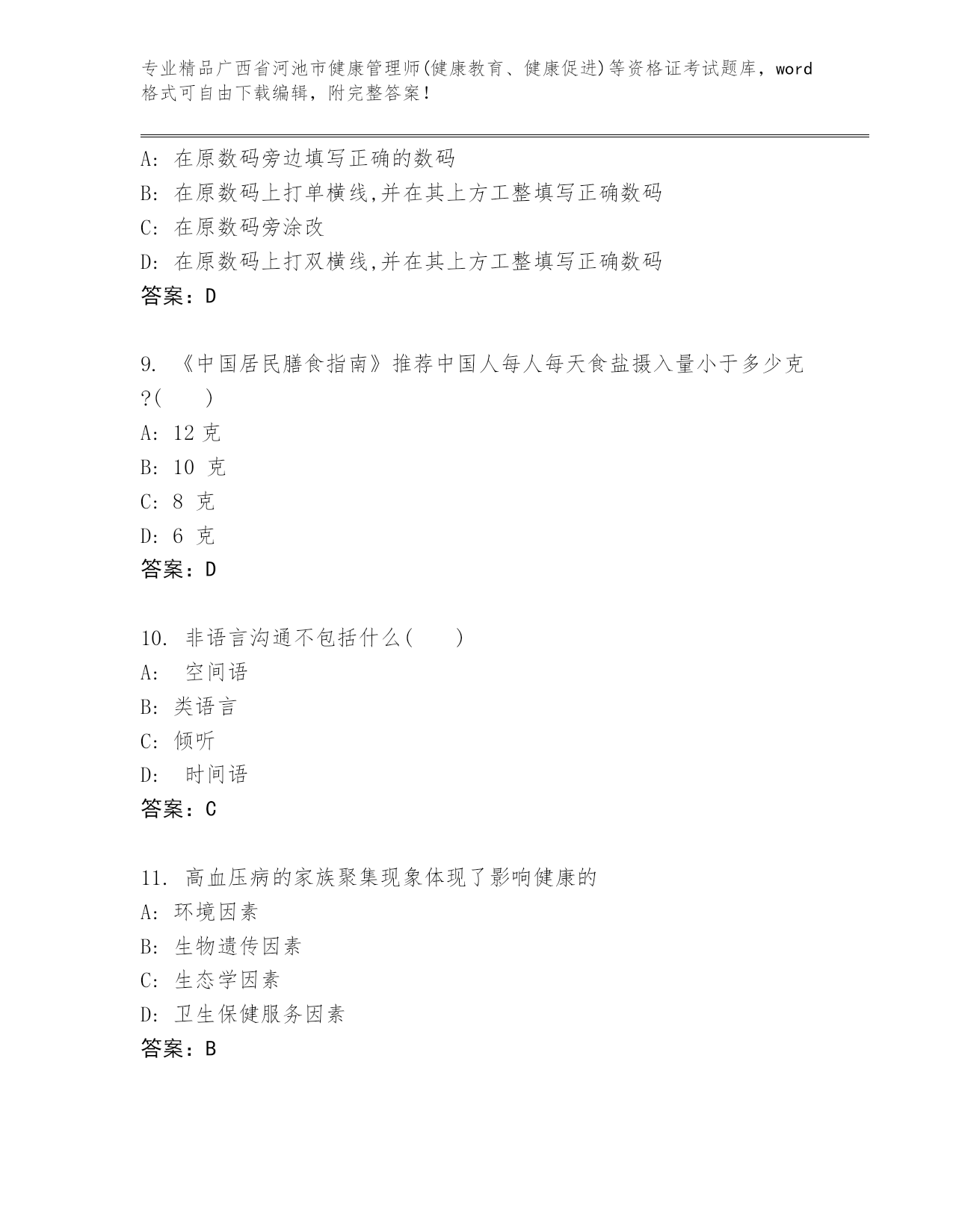 历年广西省河池市健康管理师(健康教育、健康促进)等资格证考试附答案(B卷)