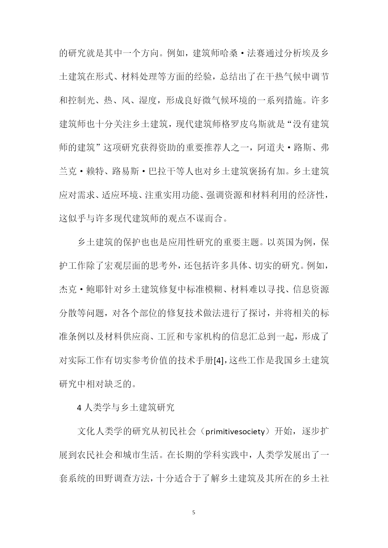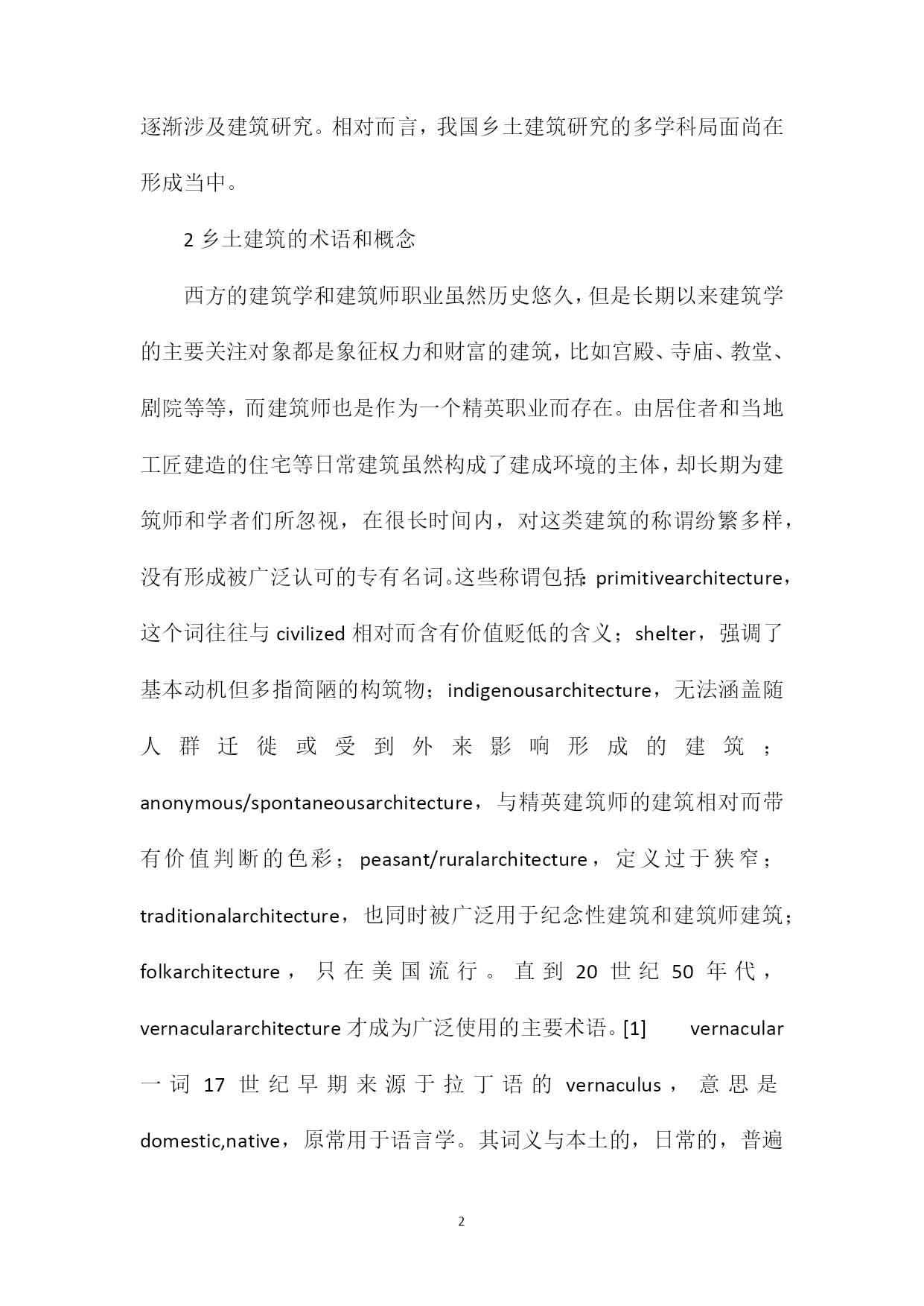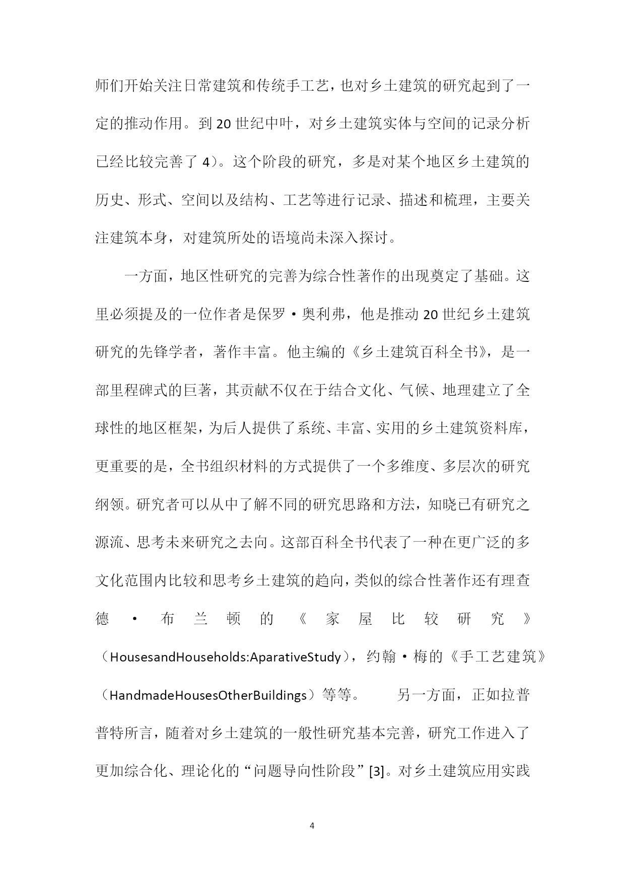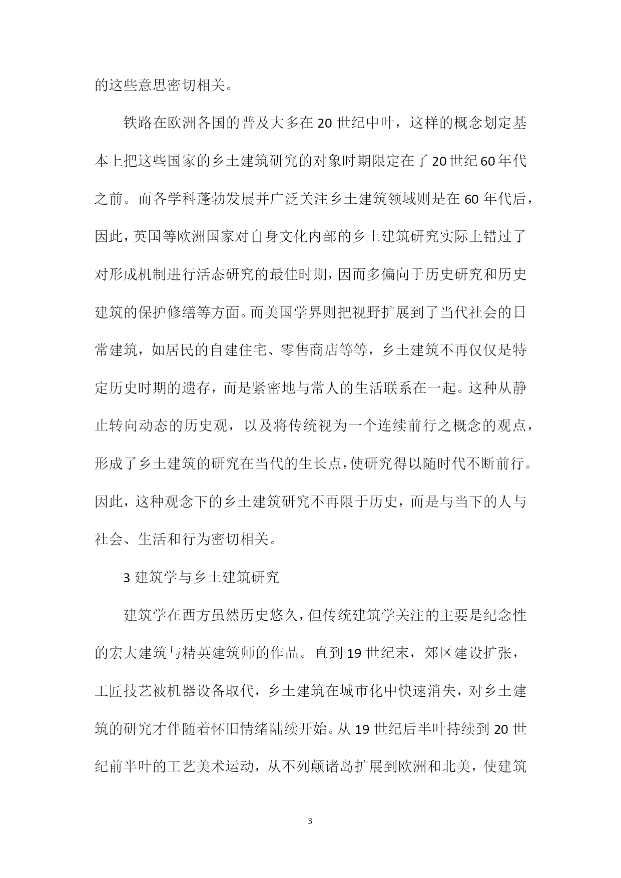 PAGEPAGE6西方乡土建筑研究理论1研究历程概述这个时期,建筑是作为初民社会物质文化研究的一部分而存在的,并非研究的主体,也很少有建筑师参与其中。西方乡土建筑研究的多学科参与,也与学科本身的发展进程有关。随着城市化和工业化的进程,学者们开始关注快速消失的传统乡村和传统工艺,出现了对西方本土的乡土建筑的记录研究。20世纪下半叶,乡土建筑引起了广泛关注。此时考古学、地理学、历史学、人类学、社会学等学科的发展都趋于成熟,对社会、历史、工艺等相关背景的研究积累了扎实的基础。因此,各个学科从不同角度切入乡土建筑的研究,并逐步走向多元化、综合化的趋势也就顺理成章了。而在我国,乡土建筑研究的开端伴随着连绵的战火,进展缓慢。建国后,各地建筑院校和研究机构开展了扎实的民居调查,但社会学、人类学等学科的发展却相对滞后,建筑学仍然是乡土建筑研究的主要学科。建筑学在我国是一个工程性学科,因此这阶段的研究主要是对形式、空间、材料、结构等物质层面的研究,对历史、文化、行为等非物质层面关注较少;加上20世纪60、70年代的动乱,这批研究成果大多在80年代才陆续整理出版并产生广泛的影响。80年代后期,建筑学才开始引入多元化的研究方法,民俗学、民族学等学科也开始逐渐涉及建筑研究。相对而言,我国乡土建筑研究的多学科局面尚在形成当中。2乡土建筑的术语和概念西方的建筑学和建筑师职业虽然历史悠久,但是长期以来建筑学的主要关注对象都是象征权力和财富的建筑,比如宫殿、寺庙、教堂、剧院等等,而建筑师也是作为一个精英职业而存在。由居住者和当地工匠建造的住宅等日常建筑虽然构成了建成环境的主体,却长期为建筑师和学者们所忽视,在很长时间内,对这类建筑的称谓纷繁多样,没有形成被广泛认可的专有名词。这些称谓包括:primitivearchitecture,这个词往往与civilized相对而含有价值贬低的含义;shelter,强调了基本动机但多指简陋的构筑物;indigenousarchitecture,无法涵盖随人群迁徙或受到外来影响形成的建筑;anonymous/spontaneousarchitecture,与精英建筑师的建筑相对而带有价值判断的色彩;peasant/ruralarchitecture,定义过于狭窄;traditionalarchitecture,也同时被广泛用于纪念性建筑和建筑师建筑;folkarchitecture,只在美国流行。直到20世纪50年代,vernaculararchitecture才成为广泛使用的主要术语。[1]vernacular一词17世纪早期来源于拉丁语的vernaculus,意思是domestic,native,原常用于语言学。其词义与本土的,日常的,普遍的这些意思密切相关。铁路在欧洲各国的普及大多在20世纪中叶,这样的概念划定基本上把这些国家的乡土建筑研究的对象时期限定在了20世纪60年代之前。而各学科蓬勃发展并广泛关注乡土建筑领域则是在60年代后,因此,英国等欧洲国家对自身文化内部的乡土建筑研究实际上错过了对形成机制进行活态研究的最佳时期,因而多偏向于历史研究和历史建筑的保护修缮等方面。而美国学界则把视野扩展到了当代社会的日常建筑,如居民的自建住宅、零售商店等等,乡土建筑不再仅仅是特定历史时期的遗存,而是紧密地与常人的生活联系在一起。这种从静止转向动态的历史观,以及将传统视为一个连续前行之概念的观点,形成了乡土建筑的研究在当代的生长点,使研究得以随时代不断前行。因此,这种观念下的乡土建筑研究不再限于历史,而是与当下的人与社会、生活和行为密切相关。3建筑学与乡土建筑研究建筑学在西方虽然历史悠久,但传统建筑学关注的主要是纪念性的宏大建筑与精英建筑师的作品。直到19世纪末,郊区建设扩张,工匠技艺被机器设备取代,乡土建筑在城市化中快速消失,对乡土建筑的研究才伴随着怀旧情绪陆续开始。从19世纪后半叶持续到20世纪前半叶的工艺美术运动,从不列颠诸岛扩展到欧洲和北美,使建筑师们开始关注日常建筑和传统手工艺,也对乡土建筑的研究起到了一定的推动作用。到20世纪中叶,对乡土建筑实体与空间的记录分析已经比较完善了4)。这个阶段的研究,多是对某个地区乡土建筑的历史、形式、空间以及结构、工艺等进行记录、描述和梳理,主要关注建筑本身,对建筑所处的语境尚未深入探讨。一方面,地区性研究的完善为综合性著作的出现奠定了基础。这里必须提及的一位作者是保罗·奥利弗,他是推动20世纪乡土建筑研究的先锋学者,著作丰富。他主编的《乡土建筑百科全书》,是一部里程碑式的巨著,其贡献不仅在于结合文化、气候、地理建立了全球性的地区框架,为后人提供了系统、丰富、实用的乡土建筑资料库,更重要的是,全书组织材料的方式提供了一个多维度、多层次的研