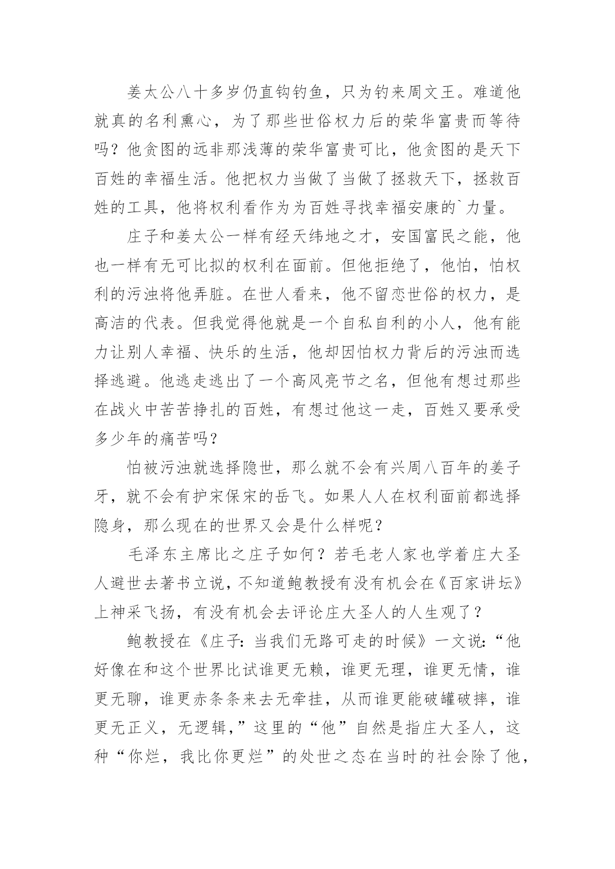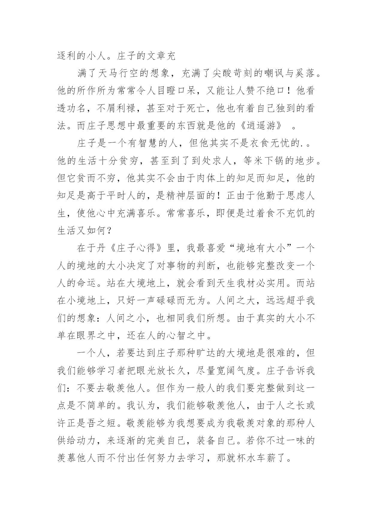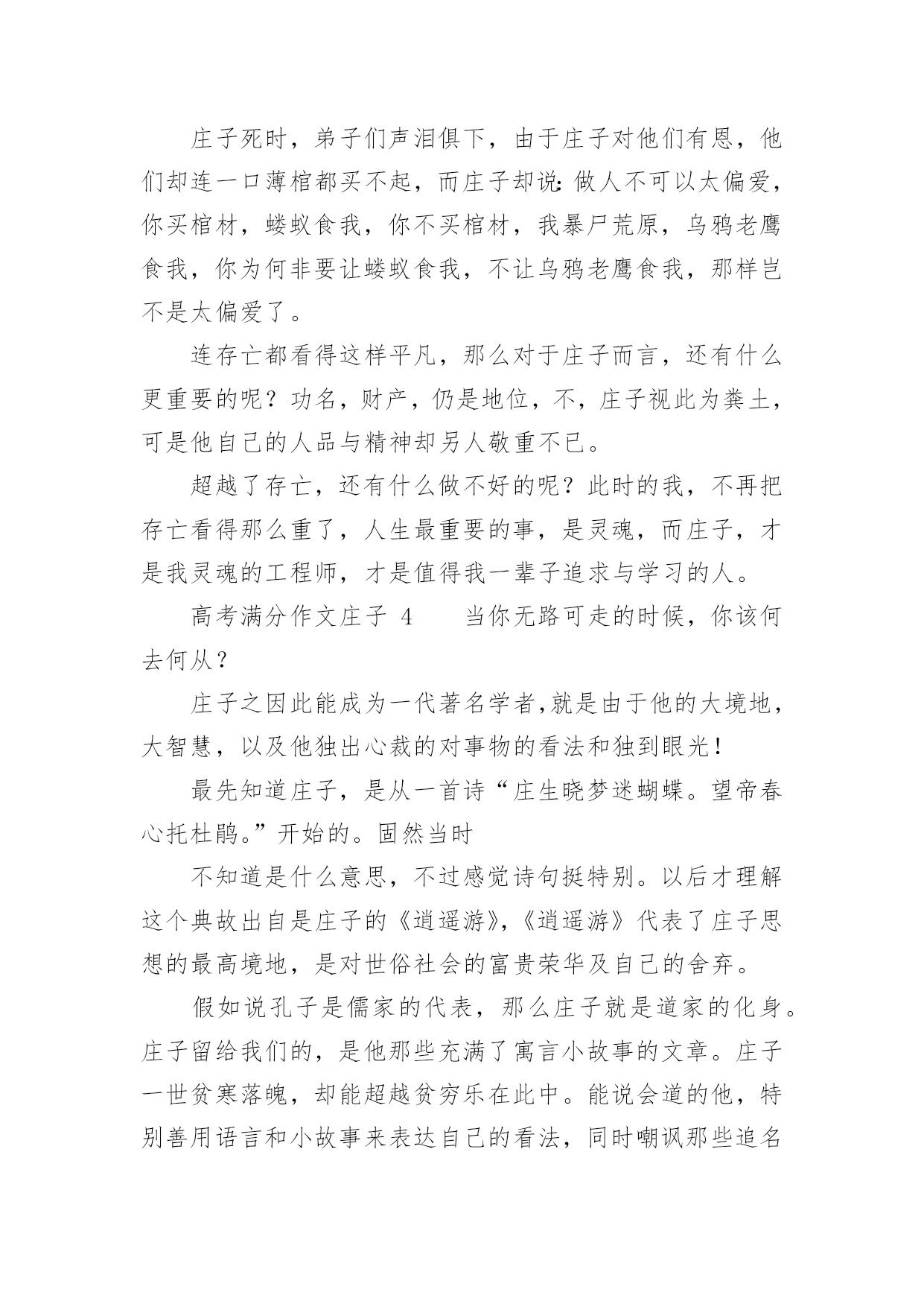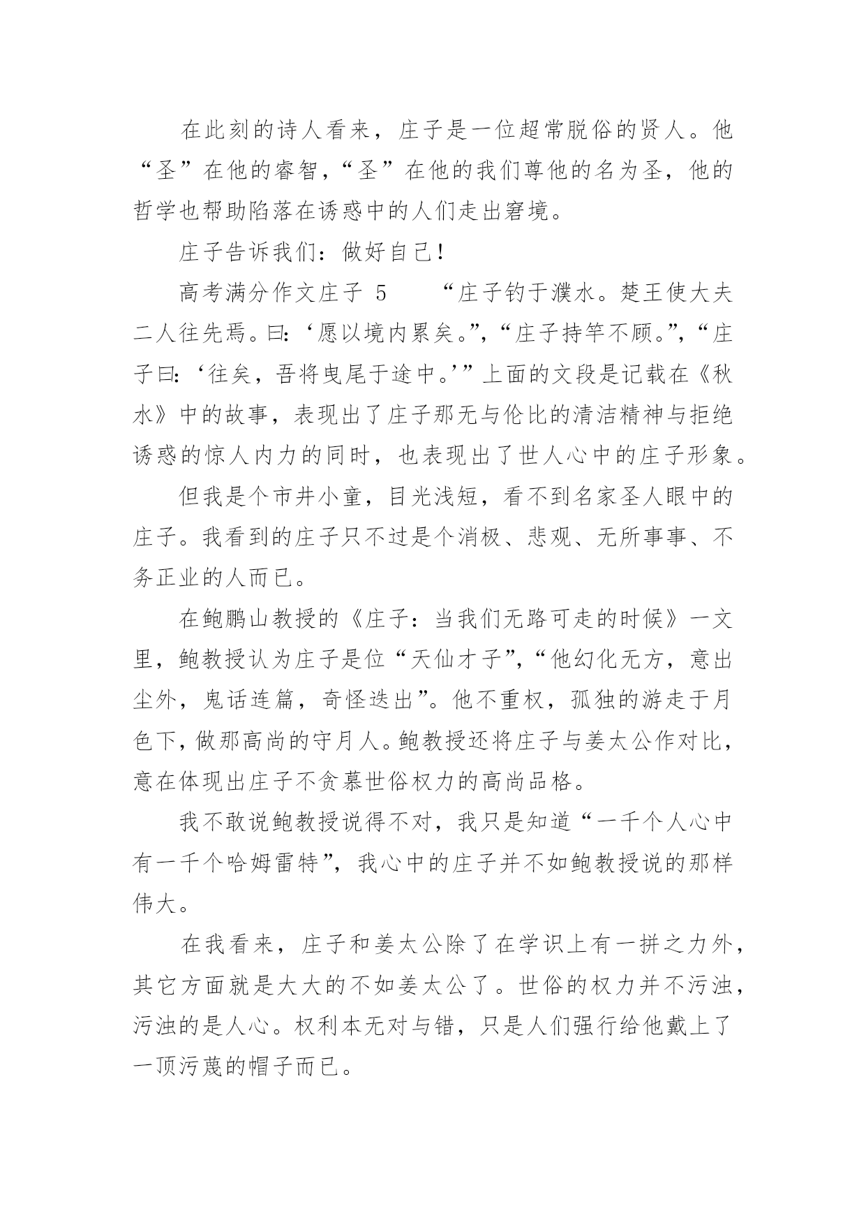 高考满分作文庄子高考满分作文庄子(通用35篇)在学习、工作乃至生活中,大家都写过作文,肯定对各类作文都很熟悉吧,借助作文人们可以实现文化交流的目的。作文的注意事项有许多,你确定会写吗?下面是小编整理的高考满分作文庄子,欢迎大家分享。高考满分作文庄子1时间的流逝,淡涤旧迹,仅留下微漠的平淡与悲哀。濮水之边,你翩然而去,仅留下楚使的瞠目与叹息。或喜甜甘之味,或爱亦苦亦甜的刺激,谁人如你———庄子,淡泊一切,与道合而为一,只偏执着那淡淡的清白。当一种美,美得让人无所适从,也只好手之舞之,足之蹈之;当一种平淡,淡得让人无从品味,也只好叹之惜之,赞之赏之。你甘于淡泊,乐于平淡,自得于平淡,只愿在梦中化蝶而逍遥,只愿随那盘旋而上的鹏者浮游于天地,不愿累于国事,不愿牵绊于尘世,你就如同那甘之如饴的淡淡而香的矿泉之水,给人以绝境逢生,给人以平静致远,给人以超脱外物,我想要触及你的衣襟,却在指尖碰触了清而澈,凉而柔的泉水,原是这般滋味。无奈我摆脱不了那甜的诱惑,忘却不了那或苦或甜的香醇,只好在无路可走之时,望见你那平静如水的双眸,澄澈至极,悠悠远远,望断天涯路。我以为你是孤独的,你却告诉我“君子之交淡如水”的友谊,惠子的离去并未换来你的嗥啕此类,原来你早已看透了生死,望穿了红尘。何以赞美你的`平淡,我早已词穷。念往昔,繁华竞逐。你依旧逍遥游于世外,参透大自然的无穷。世界不过是你的主观产物,甚至你了解了河鱼之乐,蝶舞之愉,螳螂之负,摇曳而去,穿梭于泥潭之中,何去在乎那权势之争,谁言非要承受那生命不能承受之重。氤氲之间,明月可掇,你在清风夜唳之中独自守望那明月,以至于在人们高枕无忧之时那皓白之月不会迷失———只因你这颗平淡的心相追逐。世人笑你疯癫,你淡漠的眼神却摄人无语,恍然大悟你淡淡的泉水般的哲理如此深邃,你却早已悠然飘远。对你唯有惊鸿一瞥,却窥见了一种平淡致远的处世态度,淡罢,淡罢,绝不为万物所主宰,我独逍遥于濯浊之外,蝉蜕去拖累,只愿抱明月而长终。江边一蓑烟草,一片缟素。教我如何追寻你的步伐,那美至于无所适从的精髓;教我如何触及你的衣襟,那平淡而超然的态度。这便是你吧,淡淡如泉水,你偏执的追逐,泉边那飘扬的一片缟素,是为你而起的飘渺之歌。高考满分作文庄子2推开庄子的门,他不在。本想与他交谈,可惜,他不在。我漫步于草庐旁,落叶已积了八层。他真的在这里住过吗?还是让他的智慧随着自己的身影飘走了?“不,我可以证明他在这儿住过。”循声望去,原来是池中探出头的鱼。“我是他笔下快乐的鱼,他从未想过自己是怎么知道惠施是快乐的,但他却知道我是快乐的。他现在的确不在这儿,但是你可以在任何地方找到他。他可能在清风中与你交谈;也可能在这碧波里映出你的真实,你的心灵;他多半融入了你的心中。”鱼摇动着尾巴,游远了。我站起身来,这可以照透人之心灵的碧波,不就是庄子的智慧吗?不知何时,肩上停了一只蝴蝶。“他带走的是我,留下的却是他。我们在梦中飞舞,在花间大笑,我们让后人疑惑已久,可我们却感知着对方。他对这俗世累了、倦了,所以他为他妻子的解脱而开心。他无时无刻不在微笑,也无时无刻不在思考。他让生命的每一刻都如我翅膀上的花纹一样美艳。他选择了我,让自身也升华得如此美丽。”蝴蝶扑闪着翅膀,飞入花间。我闭上眼,这直透心房的花香不也是庄子的智慧吗?“你是官吏?”脚边爬来了一只老龟。“不,不是,和你一样不是。”我俯下身子。“好得很,清爽得很,庄子曾以我为喻,拒绝相位。其实,这泥土并不脏,曳尾于其中真的是世间最快活的事儿。有人曾问我带着这么重的壳行走累吗?殊不知,我早就把壳视为自己的血与肉,又怎的会觉得累呢?就像有人问庄子读那么多书累吗?在自然中行走累吗?书与自然早已是他的血与骨,何谈受累呢?”龟转过身,爬向淤泥深处。我直起腰来,原来这淤泥中也蕴藏着庄子的智慧呢……庄子生于乱世,在世间唱着属于他自己的狂想曲。他赞叹自然的伟大与人的渺小。并不是我们离庄子的`智慧太远,而是尘世的尘埃遮住了我们的心扉,困住了我们的脚步。自然是伟大的,人类是渺小的,但当二者合为一体时,人的渺小也就不可见了。这才是庄子智慧的根本吗?我不禁嘲笑自己的浅陋,竟在这里等庄子回来。我应当去大自然,应当去世界上的每一角,去寻找,去拾起他遗留的智慧。高考满分作文庄子3生与死,它们的意义是那么深刻,另人思索不透,直到遇到了他,一个重塑我灵魂的人——庄子开始,我向来天真的认为,人生最大的事情,是生和死,可是“鼓盆而歌”的故事却激荡着我的内心。试问,假如你最亲密的人离你远去,你是悲伤流涕,仍是放声高歌,面对老婆的离开,你千万想不到,庄子居然敲着盆盆碗碗在一边低声吟唱,这时的庄子,终究是一种如何的心态呢?是愉悦吗?仍是伤心?当惠子问起,面对亲人的死亡,为何还这样沉稳沉着,他的回答却另人难解。他说:“当老婆刚才逝世的时候,我何尝