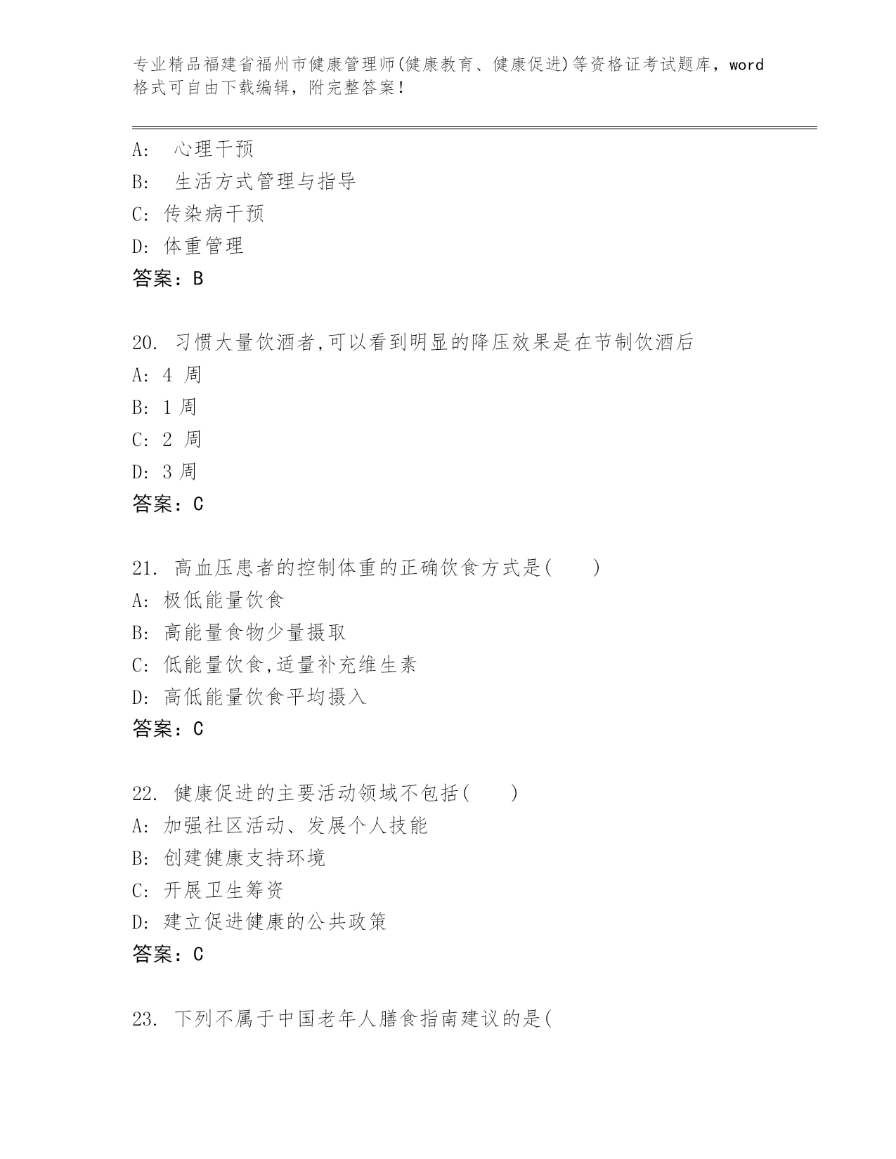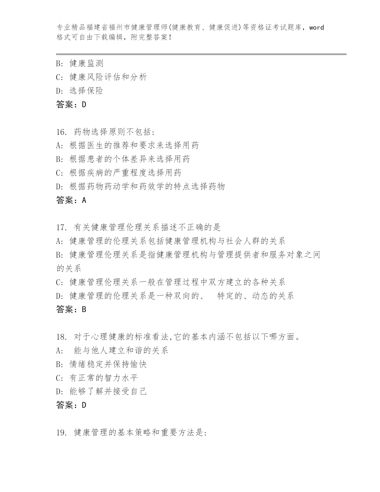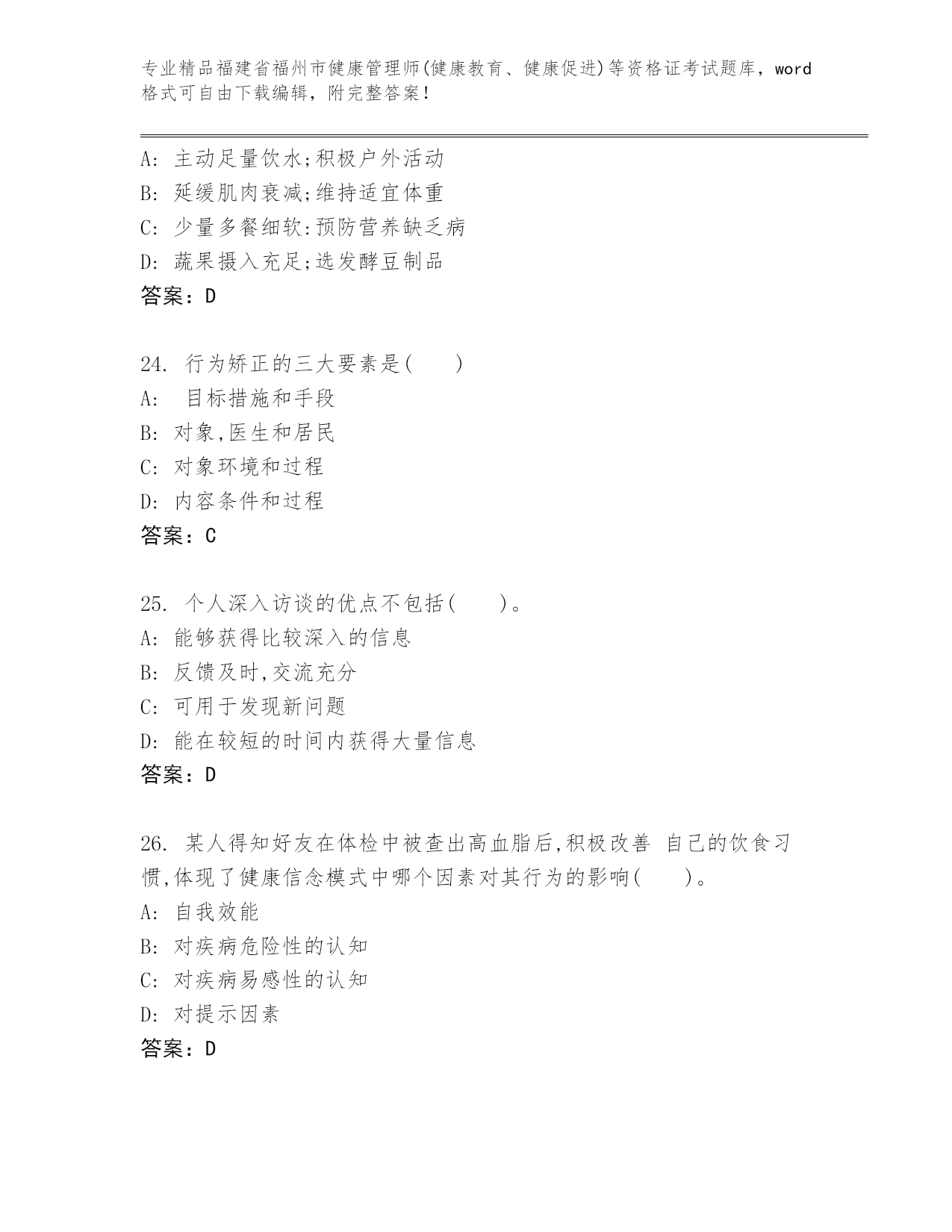 福建省福州市健康管理师(健康教育、健康促进)等资格证考试真题题库精品(达标题)