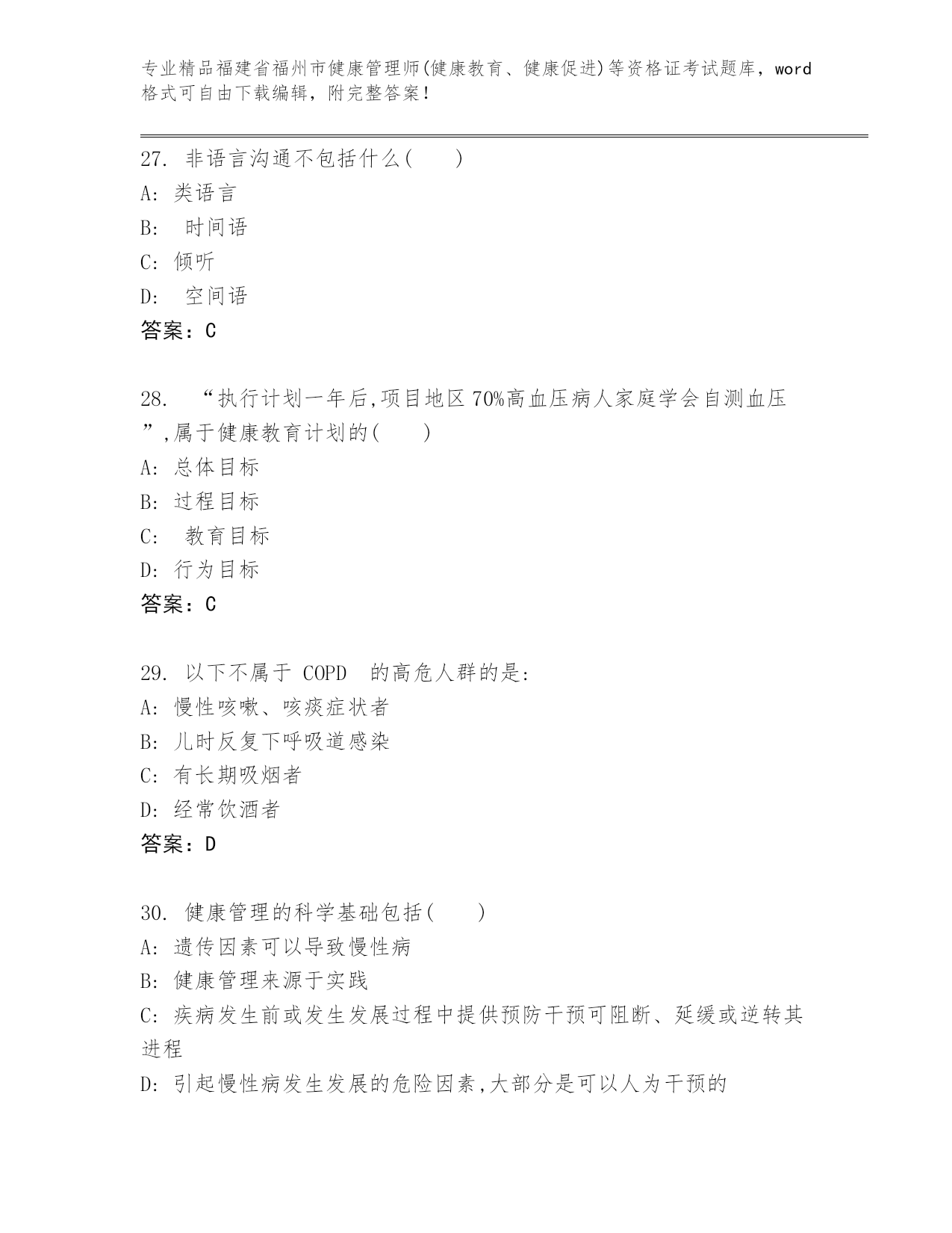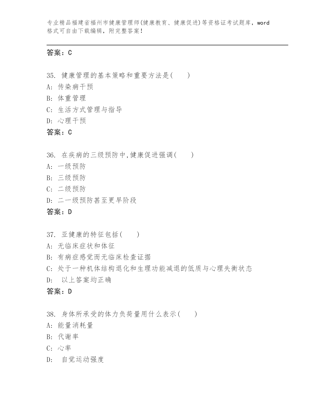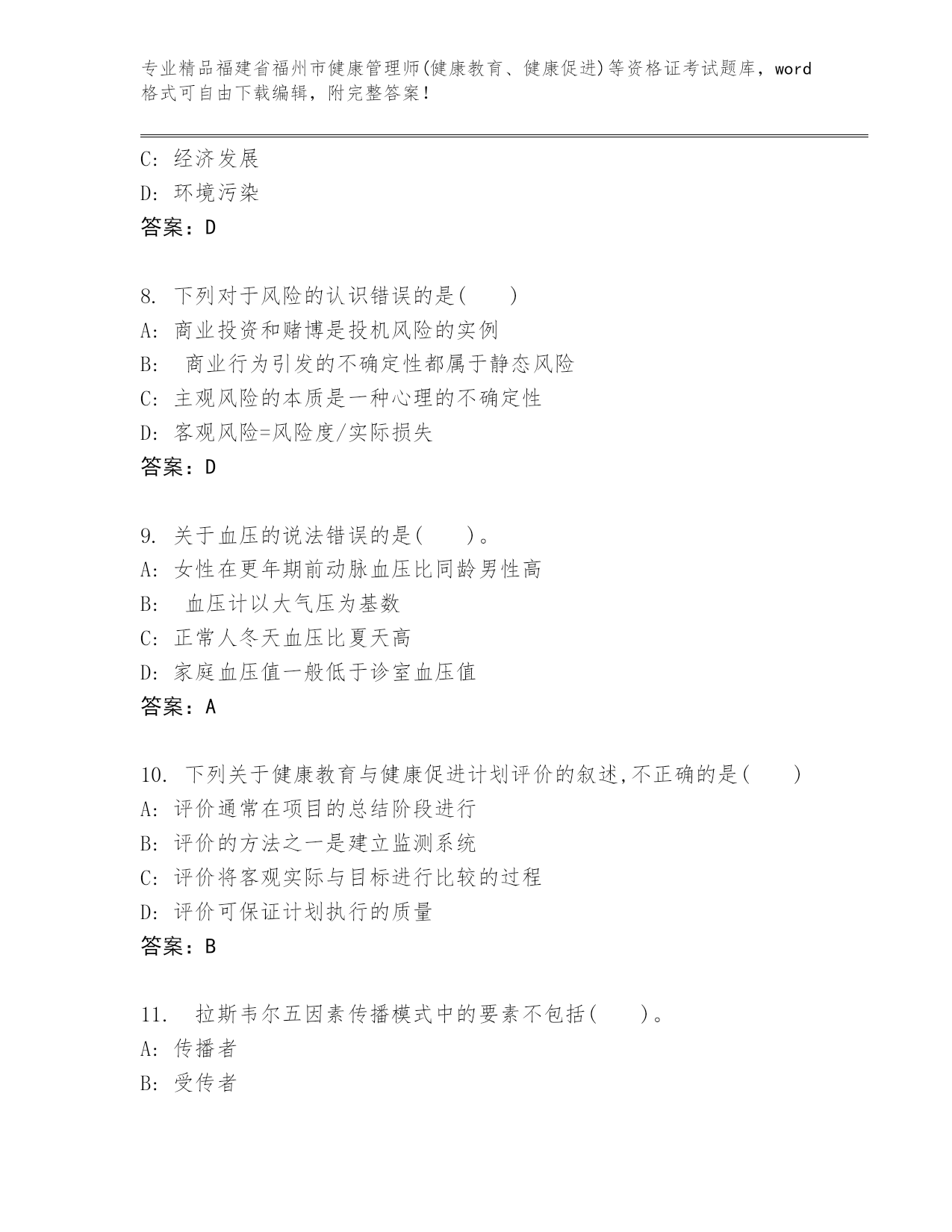 福建省福州市健康管理师(健康教育、健康促进)等资格证考试真题题库精品(达标题)
