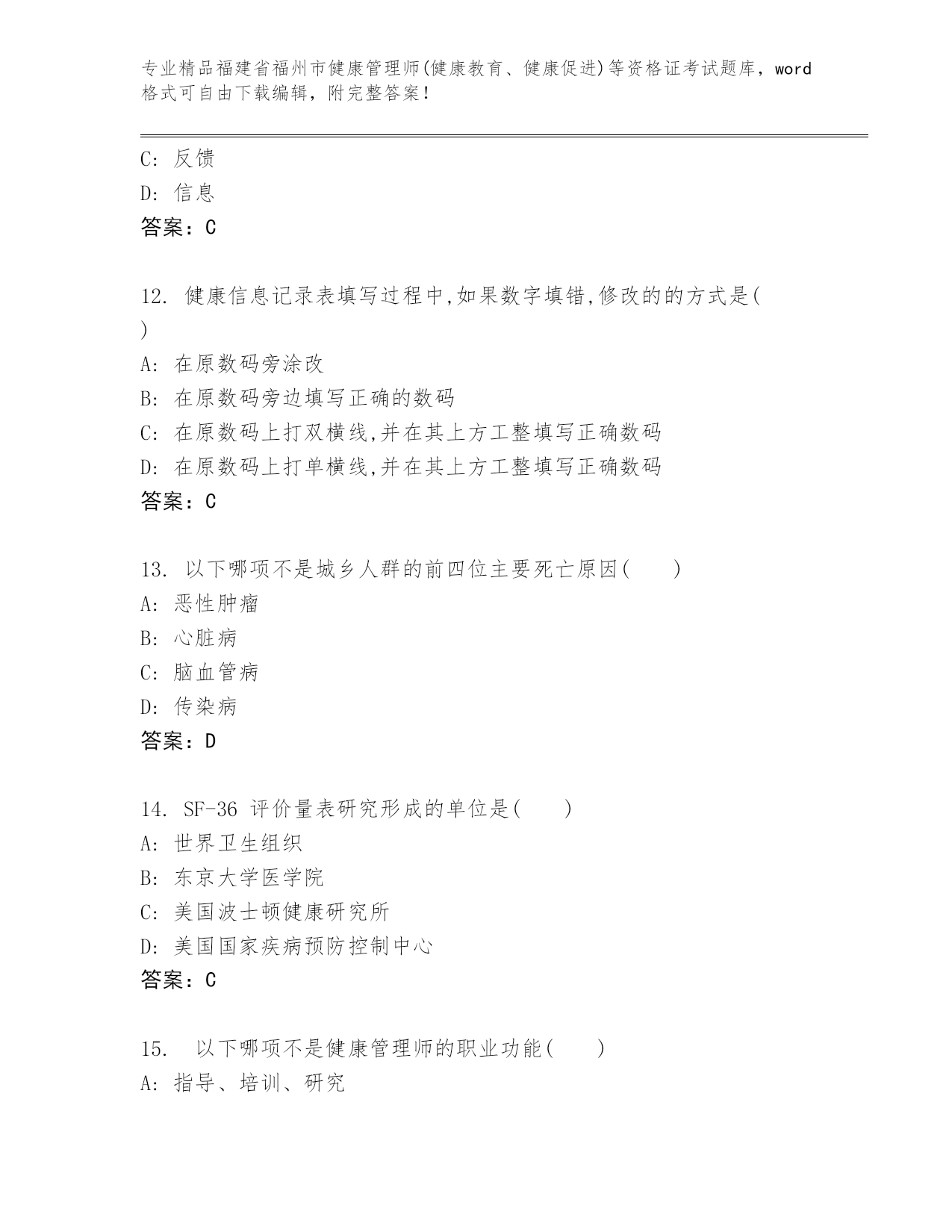 福建省福州市健康管理师(健康教育、健康促进)等资格证考试真题题库精品(达标题).docx