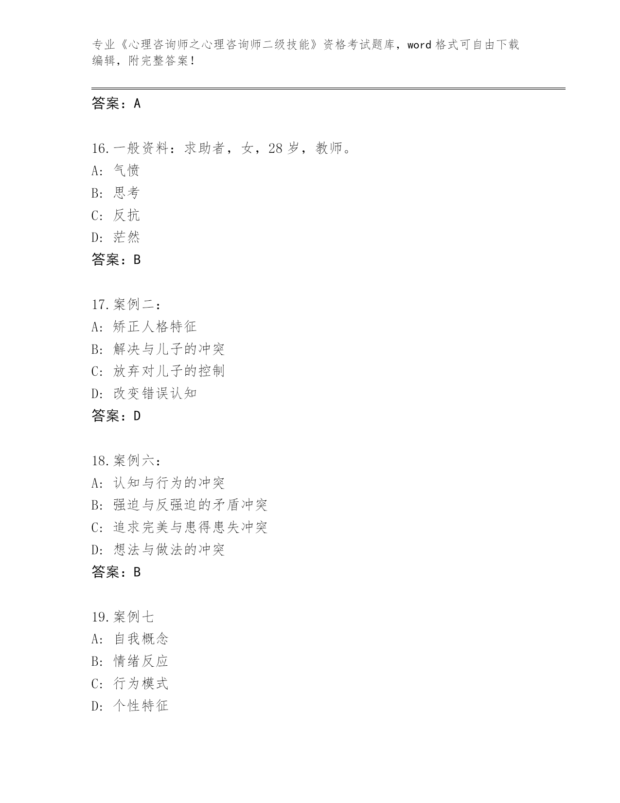 2024年广东省《心理咨询师之心理咨询师二级技能》考试王牌题库【培优A卷】