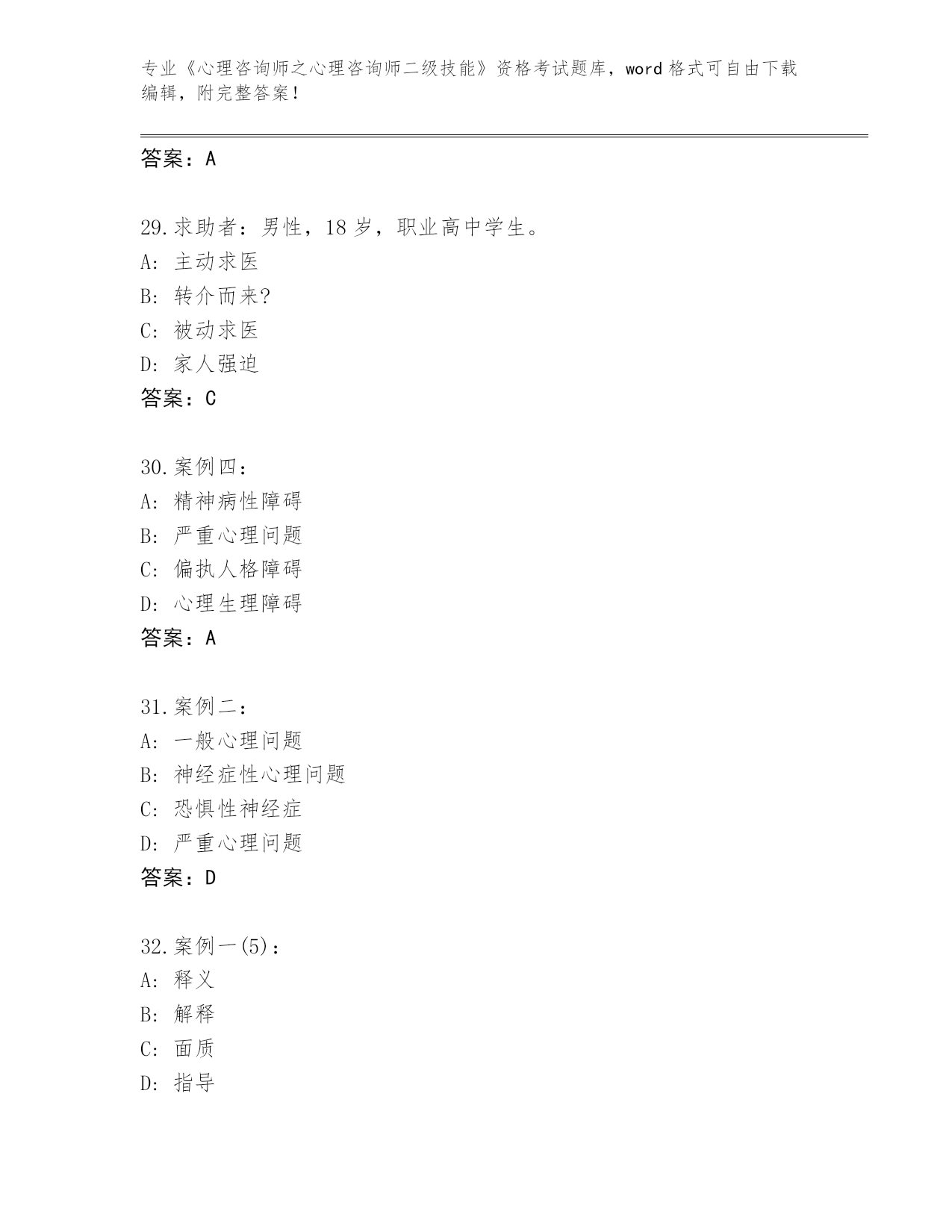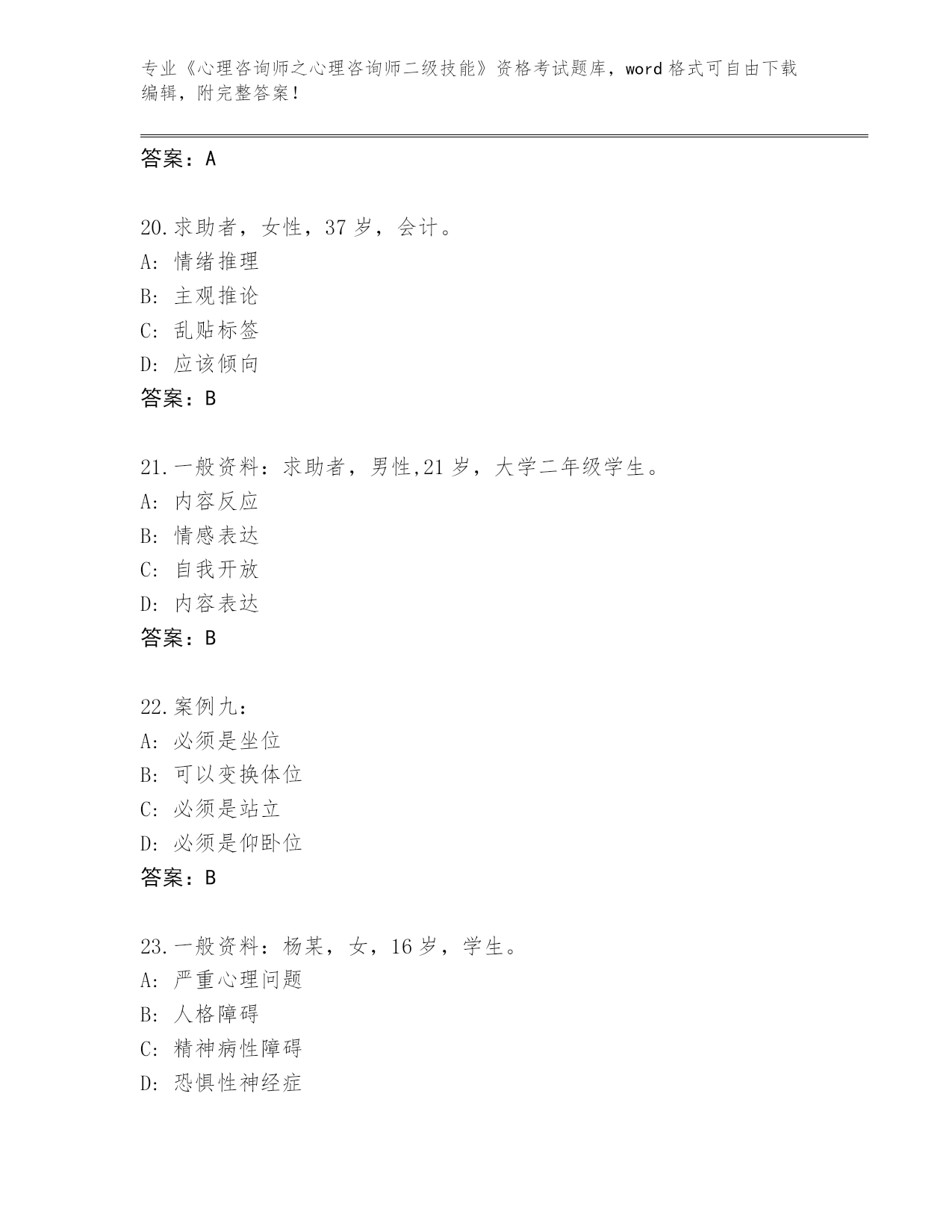 广东省云安区2024《心理咨询师之心理咨询师二级技能》考试大全(培优A卷)