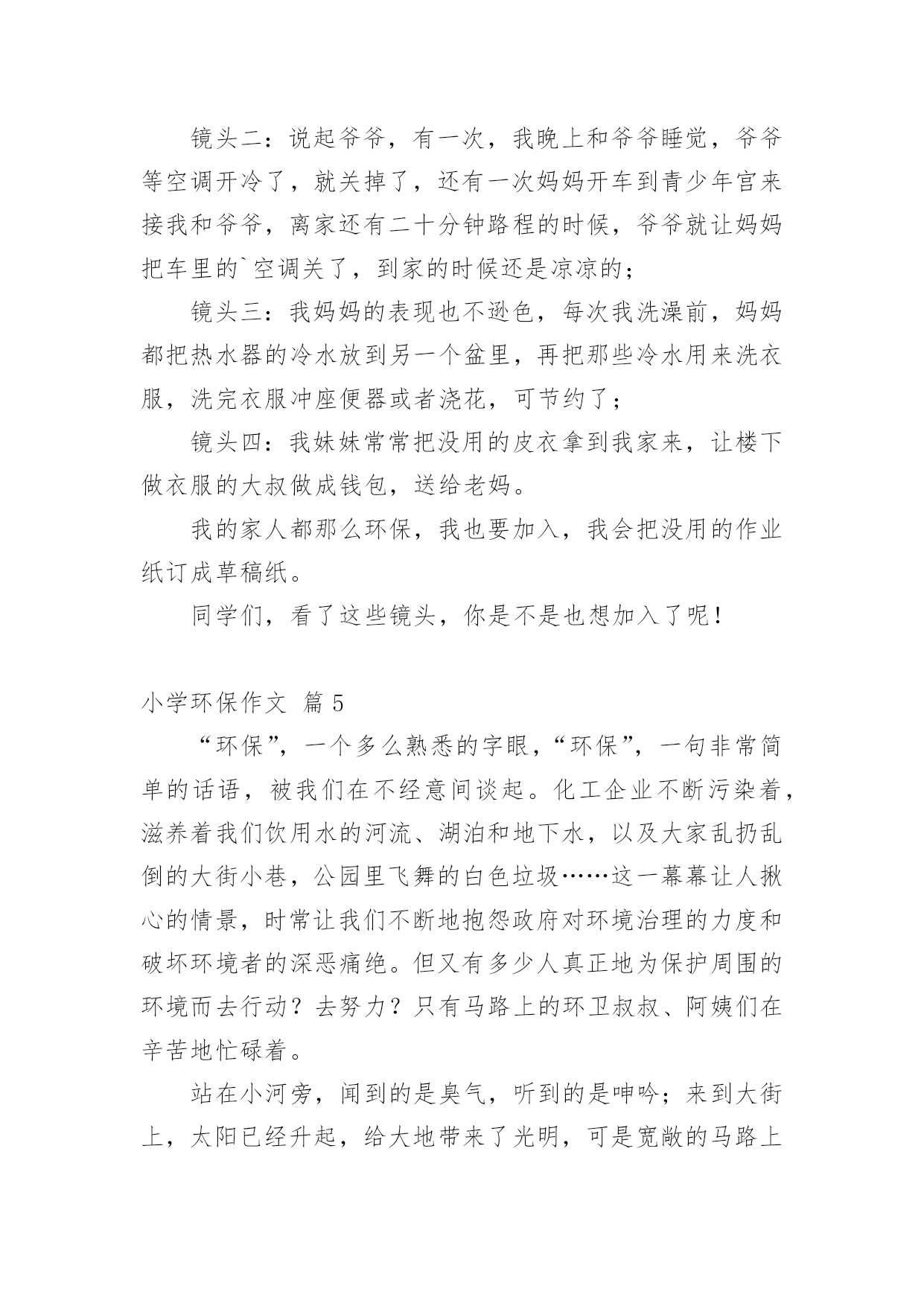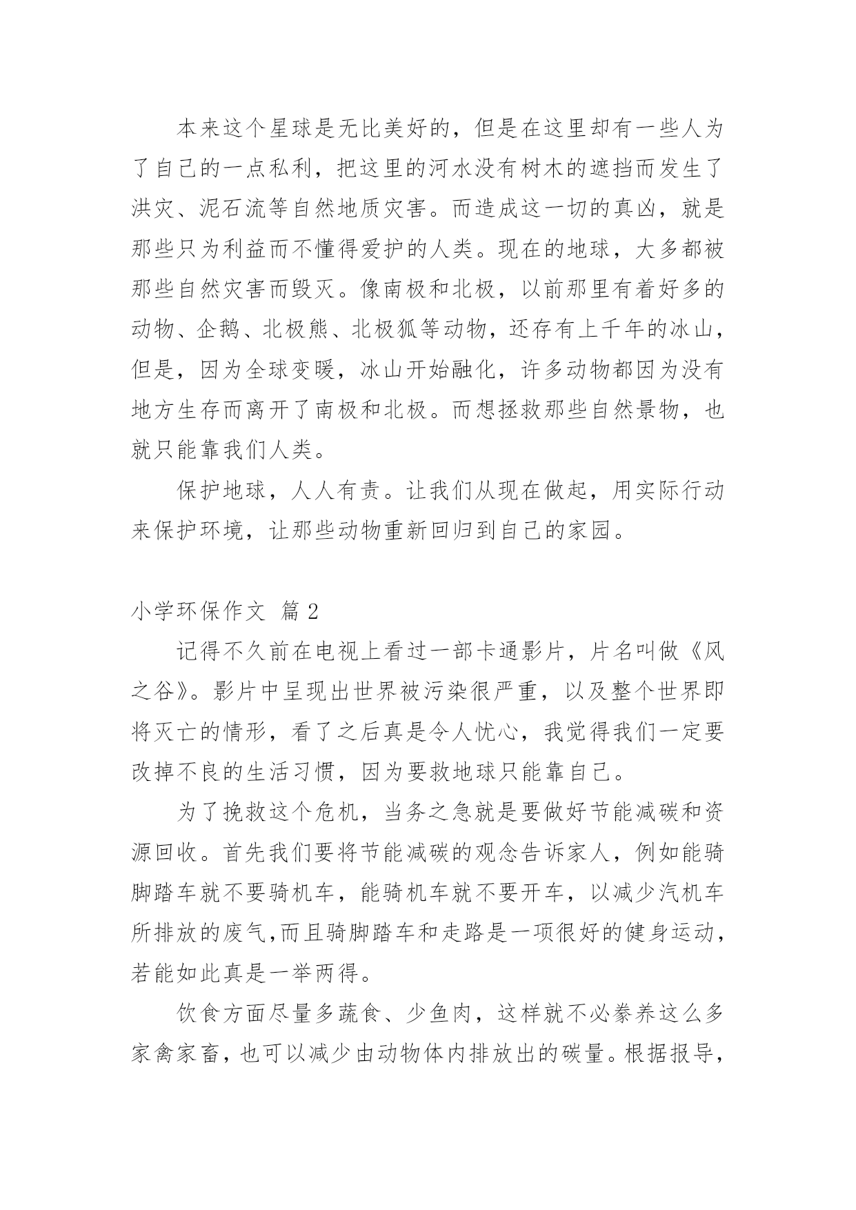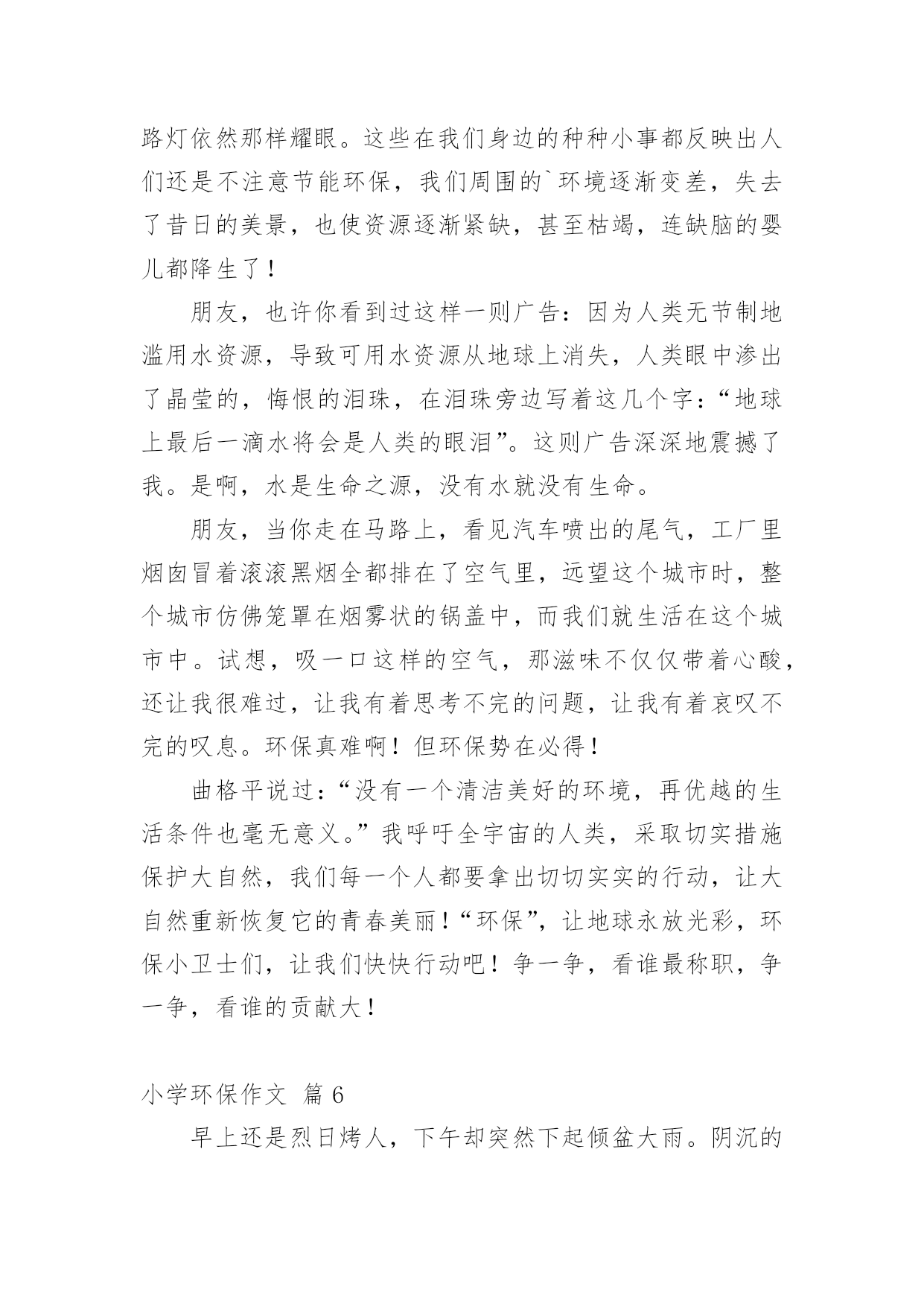 小学环保作文小学环保作文合集六篇在学习、工作或生活中,大家一定都接触过作文吧,作文要求篇章结构完整,一定要避免无结尾作文的出现。如何写一篇有思想、有文采的作文呢?下面是小编为大家收集的小学环保作文6篇,供大家参考借鉴,希望可以帮助到有需要的朋友。小学环保作文篇1大家都知道,每年的4月24日是地球环保日,在这一天,大家都应该实际行动起来保护我们的地球,为地球母亲做一些事情。但是生活中有一些人,经常把一些果皮,垃圾甚至是痰往地上随地扔,随地吐。这不仅给地面造成很大的伤害,还对环境造成了巨大的影响。记得有一次,我和妈妈一起去黄山旅游。我和妈妈刚走在黄山的山脚下,忽然间,我被一个奇怪的东西绊倒,差点把头撞破。妈妈赶紧扶起我,用自己口袋中的手帕帮我的.揉了揉,说道:“怎么样,还疼吗?”我连忙说:“不疼,不疼。”我回头一看,看见一块香蕉皮把我给绊倒了。我拿起香蕉皮,把它扔到旁边的垃圾箱(我这样做是为了防止有人跟我一样被绊倒)。妈妈看着我,说:“看来这个条路上可能还有这样的果皮垃圾,我们还是赶紧离开这里吧。”说完便带着我离开了那个危险之地。本来这个星球是无比美好的,但是在这里却有一些人为了自己的一点私利,把这里的河水没有树木的遮挡而发生了洪灾、泥石流等自然地质灾害。而造成这一切的真凶,就是那些只为利益而不懂得爱护的人类。现在的地球,大多都被那些自然灾害而毁灭。像南极和北极,以前那里有着好多的动物、企鹅、北极熊、北极狐等动物,还存有上千年的冰山,但是,因为全球变暖,冰山开始融化,许多动物都因为没有地方生存而离开了南极和北极。而想拯救那些自然景物,也就只能靠我们人类。保护地球,人人有责。让我们从现在做起,用实际行动来保护环境,让那些动物重新回归到自己的家园。小学环保作文篇2记得不久前在电视上看过一部卡通影片,片名叫做《风之谷》。影片中呈现出世界被污染很严重,以及整个世界即将灭亡的情形,看了之后真是令人忧心,我觉得我们一定要改掉不良的生活习惯,因为要救地球只能靠自己。为了挽救这个危机,当务之急就是要做好节能减碳和资源回收。首先我们要将节能减碳的观念告诉家人,例如能骑脚踏车就不要骑机车,能骑机车就不要开车,以减少汽机车所排放的废气,而且骑脚踏车和走路是一项很好的健身运动,若能如此真是一举两得。饮食方面尽量多蔬食、少鱼肉,这样就不必豢养这么多家禽家畜,也可以减少由动物体内排放出的碳量。根据报导,动物需要吃掉几吨的牧草,才能有餐桌上的一盘肉,所以学校也在每个星期五推动无肉日。“举手之劳做环保”,不只是一句口号而已,做好垃圾分类、资源回收再利用,就连我们小学生都做得到。例如还能用的文具用品,不要轻易丢弃,铅笔、橡皮擦一定要用到不堪使用才能丢掉;用过的`旧书套也要重复使用,除非已经破损严重才要求换新。确实做到节约用水用电。家中电器用品不用时,也要将插头拔掉;妈妈洗菜、洗米的水,可拿来浇花,饮水机排放的废水可拿来洗衣或拖地,不浪费任何一滴废水。当我们动手去做时,原来资源再利用一点都不难。我们都是地球村的一份子,应该确实力行节能减碳的生活,因为这不只是良好的生活习惯,更是一种良好的美德,让我们为美丽的地球尽一份心力吧!小学环保作文篇3炎炎暑假来临,当听到要去石狮黄金海岸避暑时,我很高兴得一蹦三尺高,赶紧收拾泳裤、泳镜、泳帽……妈妈笑着说:“黄金海岸以沙细、海蓝、空气清新才得名。”一听这话,我的心儿早已飞到无边无际的大海。一下车,我立刻换上泳裤、泳镜、投入大海的怀抱,和清凉的海水,来个亲密接触。正玩得起劲,“哎呀”脚底被扎到,我痛得抱起脚直叫唤。妈妈闻声赶来,抱起我一看,脚底被玻璃片扎到。妈妈立刻抱着我到景区医务室,医生一见鲜血直流的伤口,叹了口气说:“不少游客不讲文明,乱扔垃圾,使沙滩上布满玻璃片、瓶子、袋子……成了一个个安全‘暗礁’。”医生三五下包扎好伤口说:“你是今天第五个脚底被扎的游客,希望不要再有第六个。”妈妈抱着我坐在岸边,唉,只能和大海的怀抱说再见了。看着蔚蓝的大海,洁白的云朵,远方的船帆……我遗憾地想:唉,都怪那些不文明的游客。这时,我看见不远处的沙滩上一位小男孩,正朝海里扔石块。我连忙大声喊:“小弟弟,不要再扔了,会破坏环境。”小男孩生气地说:“要你管。”我抬起受伤的`脚说:“你看,这是刚刚被海里的玻璃片扎的,你说,不讲文明,随意乱扔立即的行为,我能不管吗?”小弟弟听了,低头沉思一会,放下手中的石块,转身跑开了……看来,外出旅游时,要做一个文明的游客:爱护文物古迹、珍爱公共设施,保护环境卫生……只有这样,文明之花才能在景区灿烂绽放,带来美丽的景色,带来舒畅的心情,带来银铃般的笑声……评语:文章前后呼应,结构完整。事例的描写能充分运用语言、动作、心理描写,来表现出“文明出游”的主题。难能可贵的是,小作者的语言朴实自然,但“银铃般的笑声”、“亲