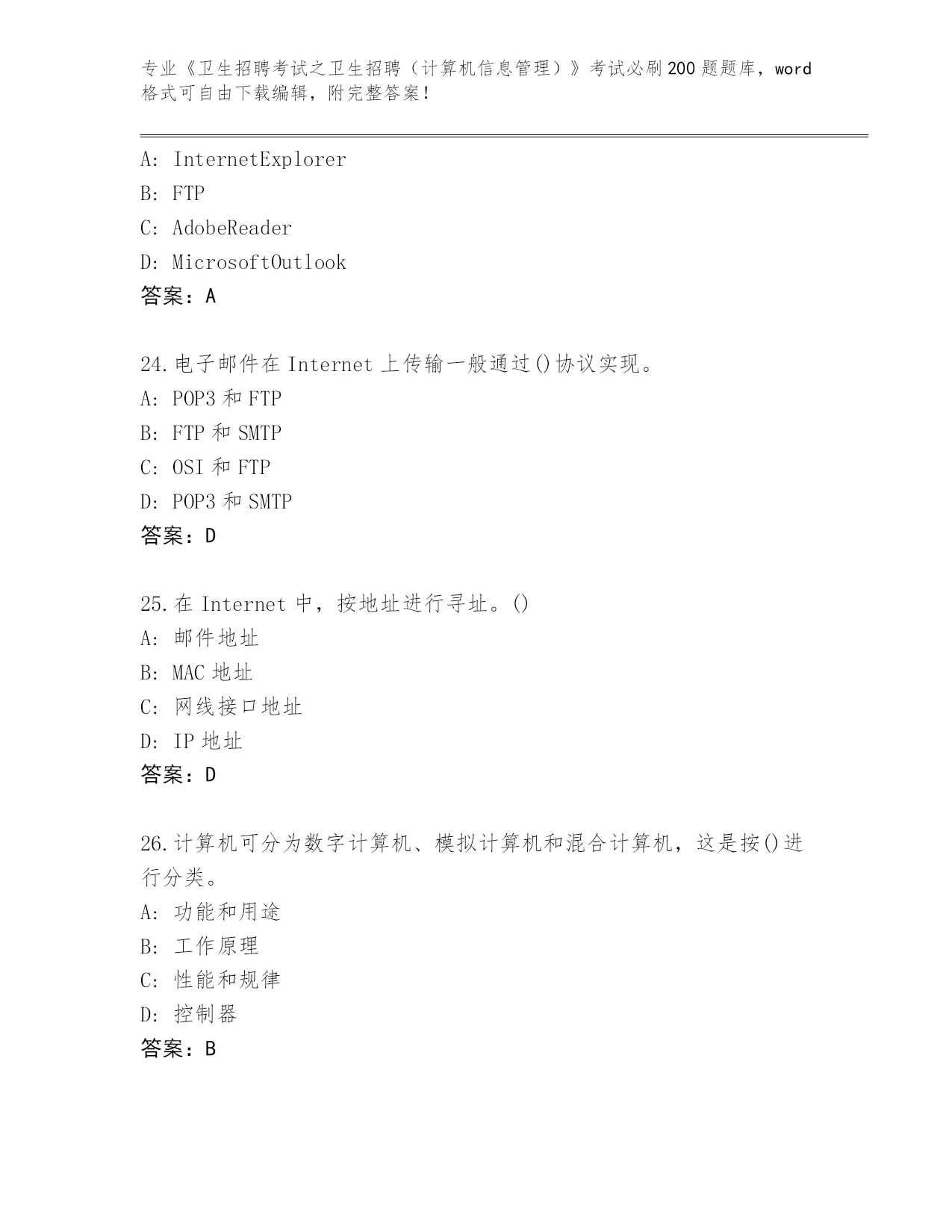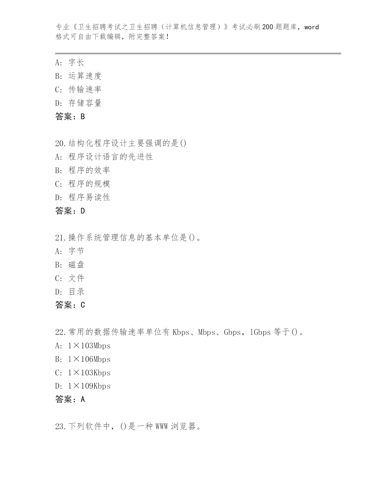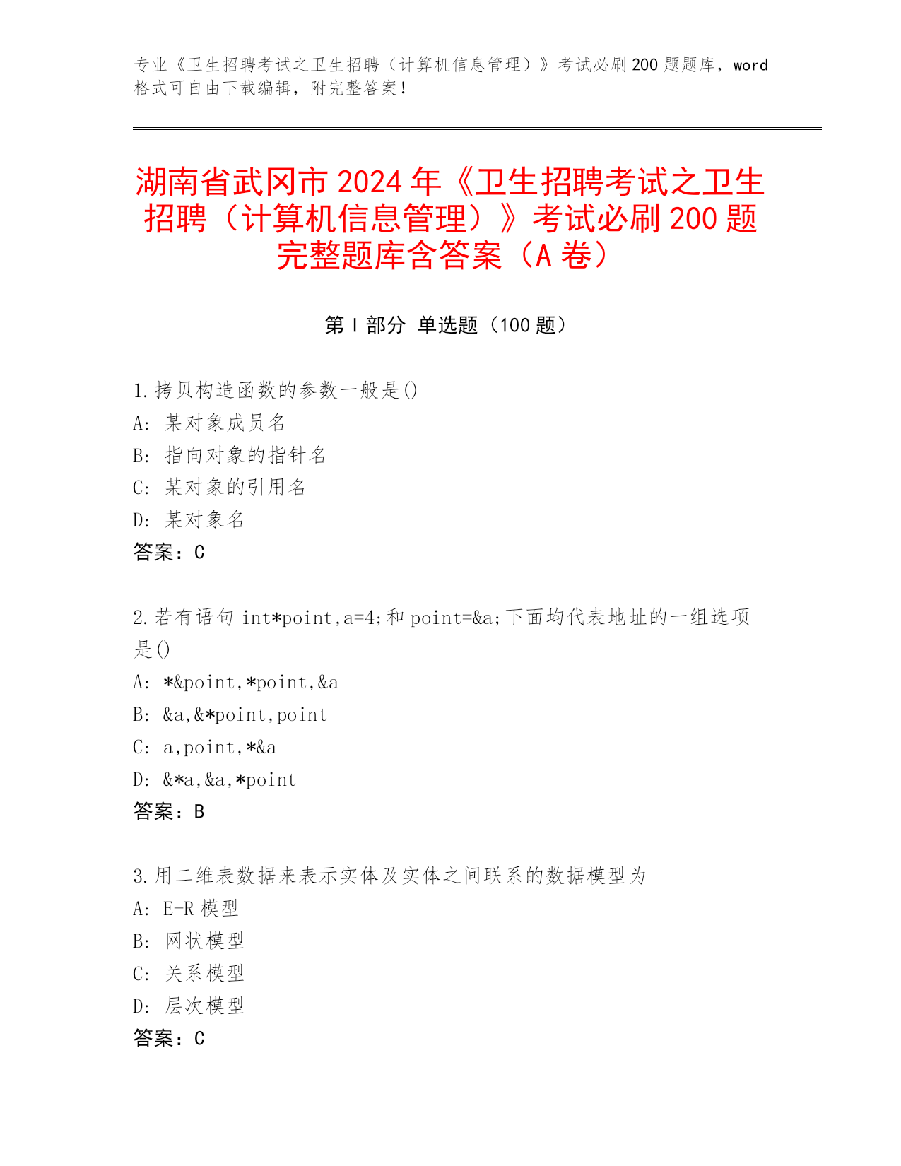 湖南省武冈市2024年《卫生招聘考试之卫生招聘(计算机信息管理)》考试必刷200题完整题库含答案(A卷)