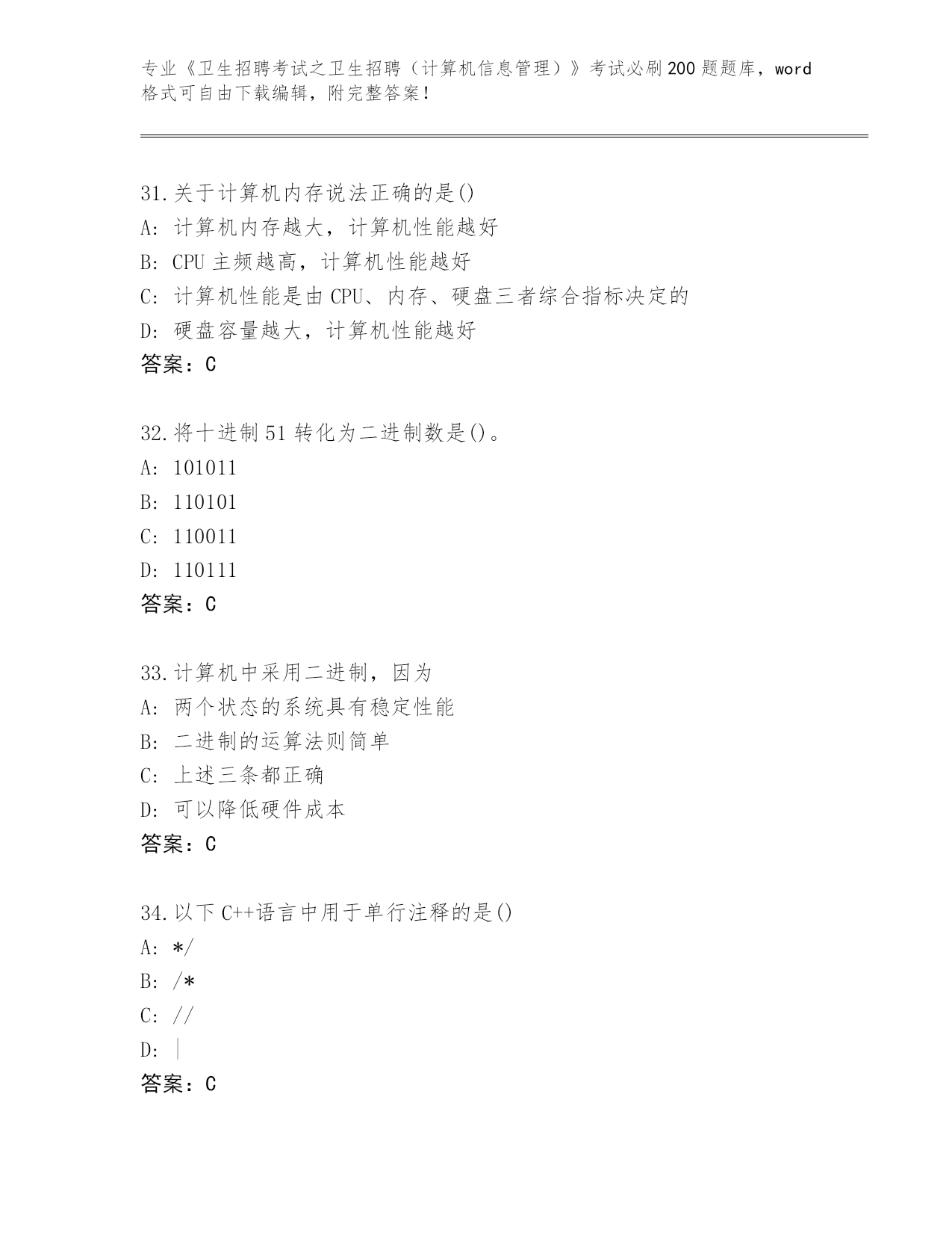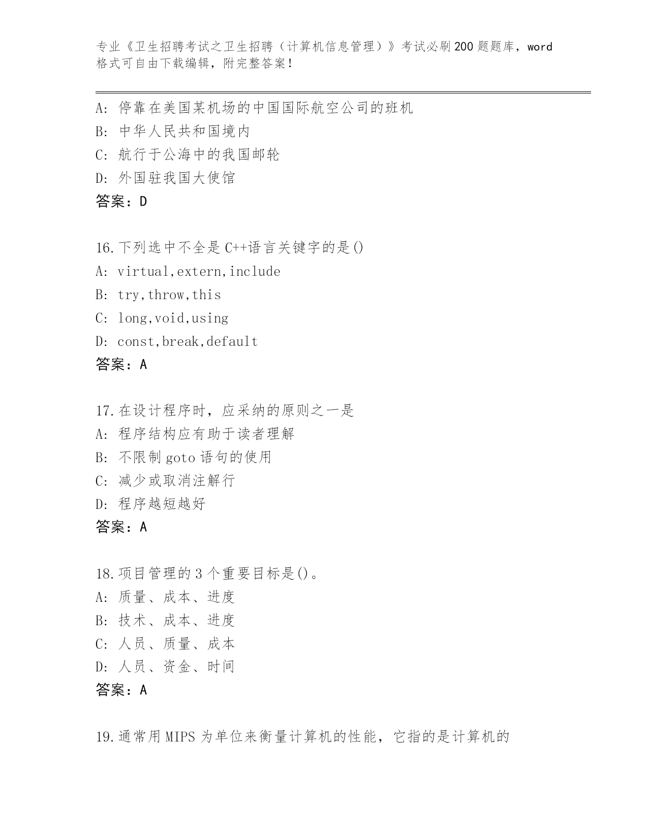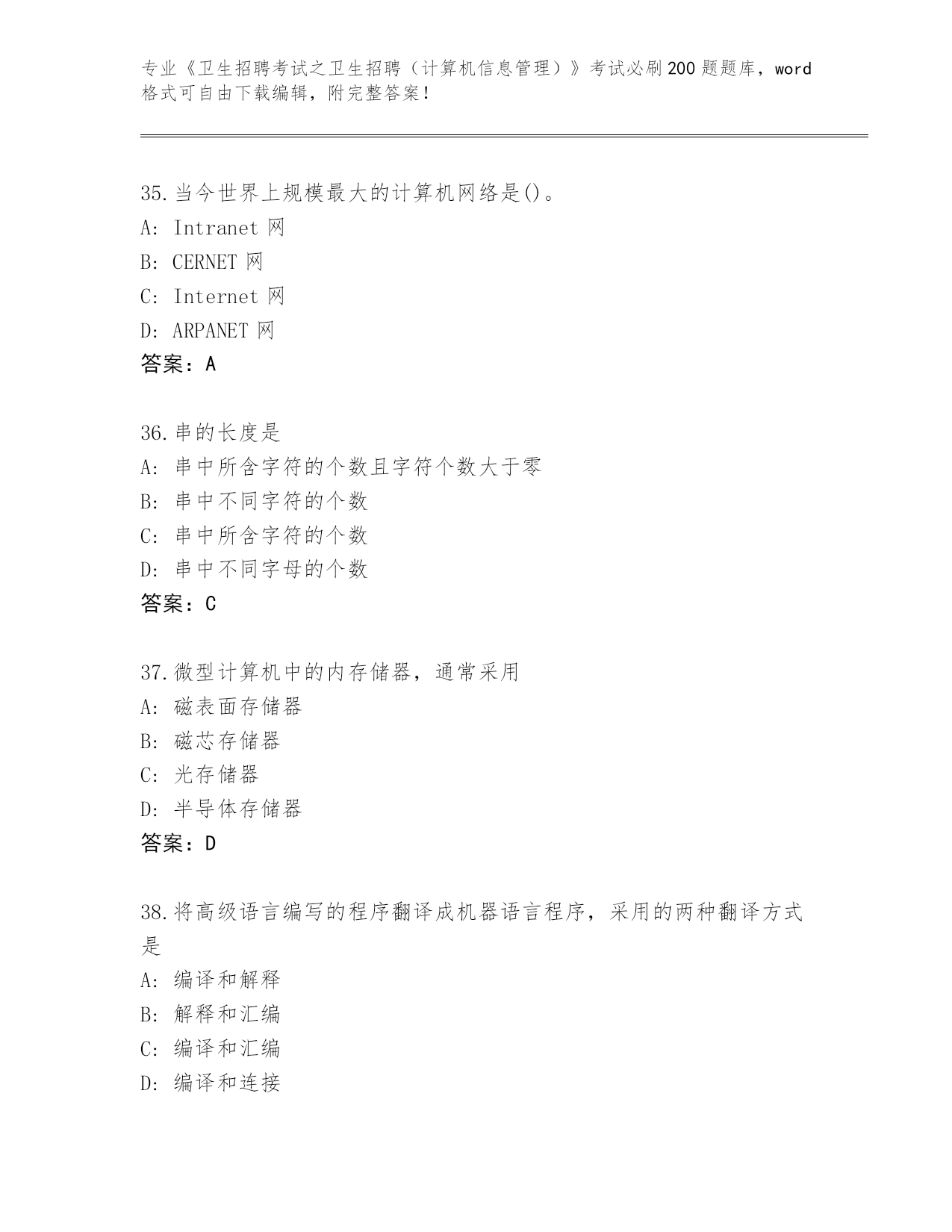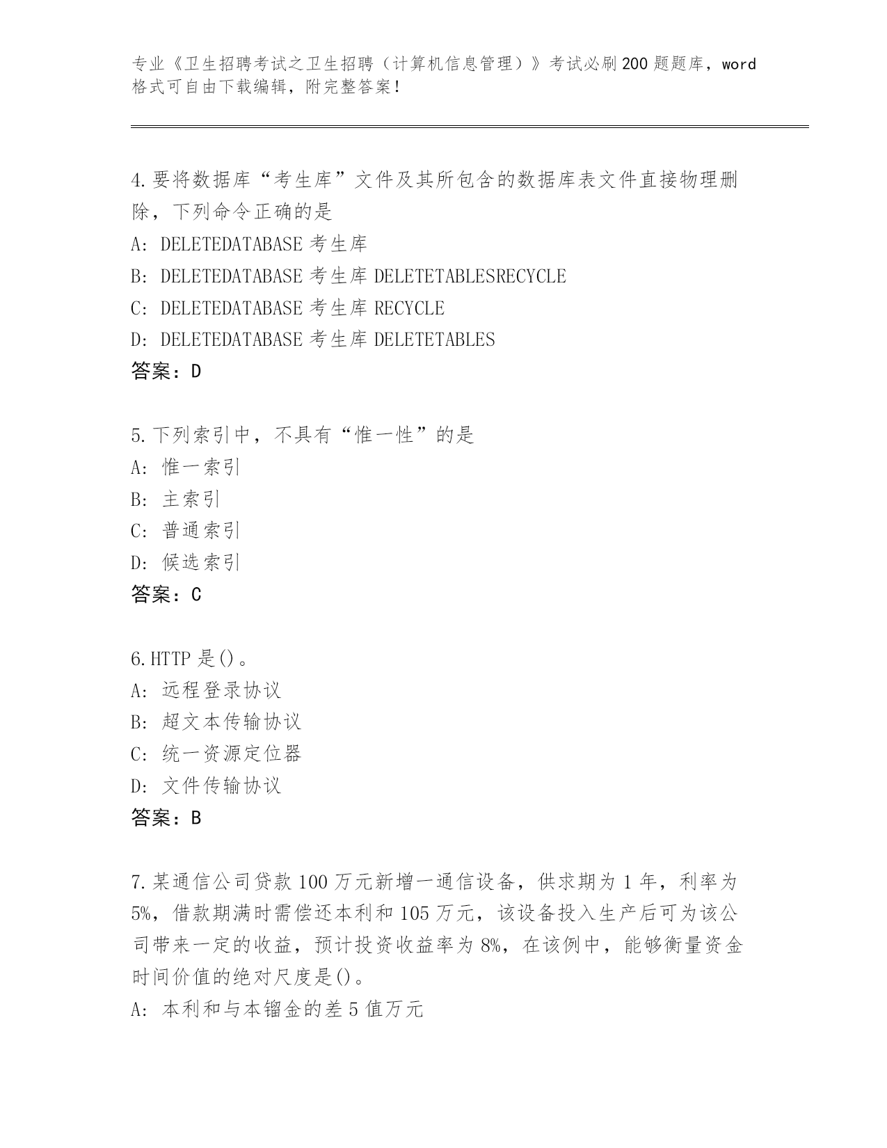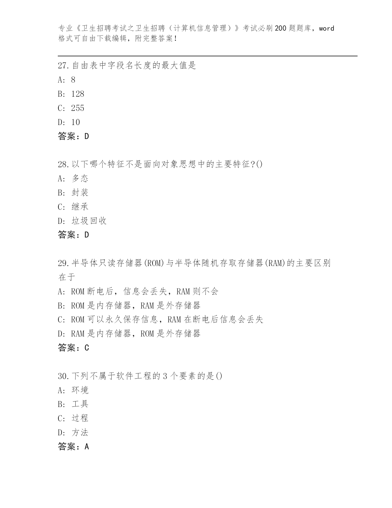 湖南省武冈市完整版《卫生招聘考试之卫生招聘(计算机信息管理)》考试必背200题题库含答案【模拟题】