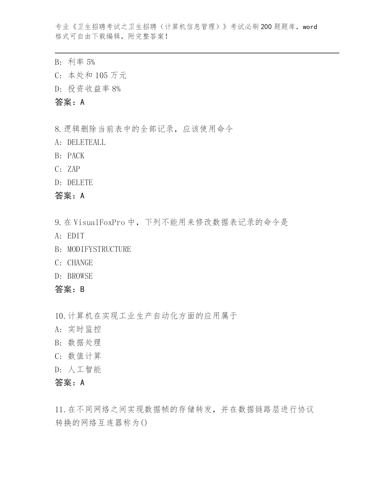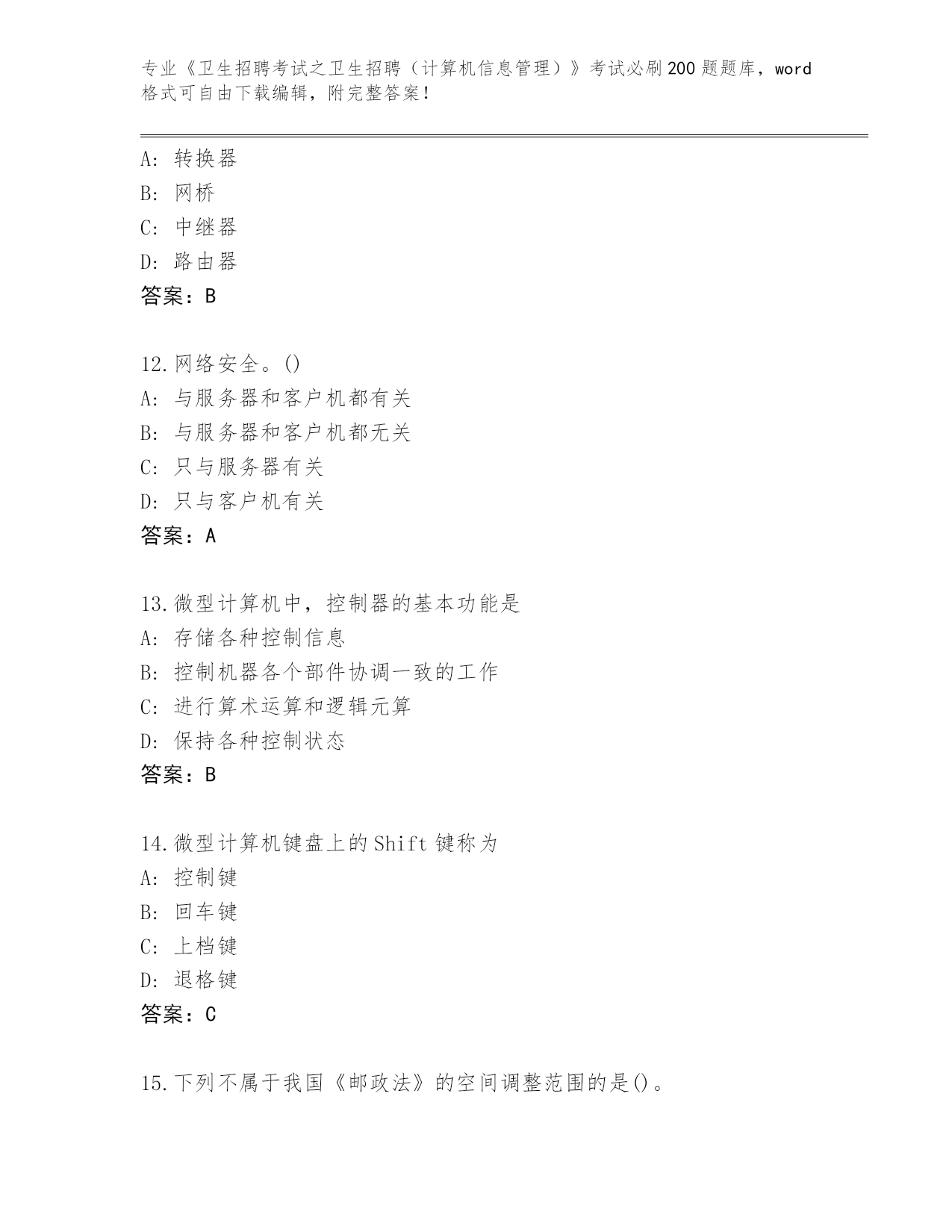 历年湖南省《卫生招聘考试之卫生招聘(计算机信息管理)》考试必刷200题题库【】