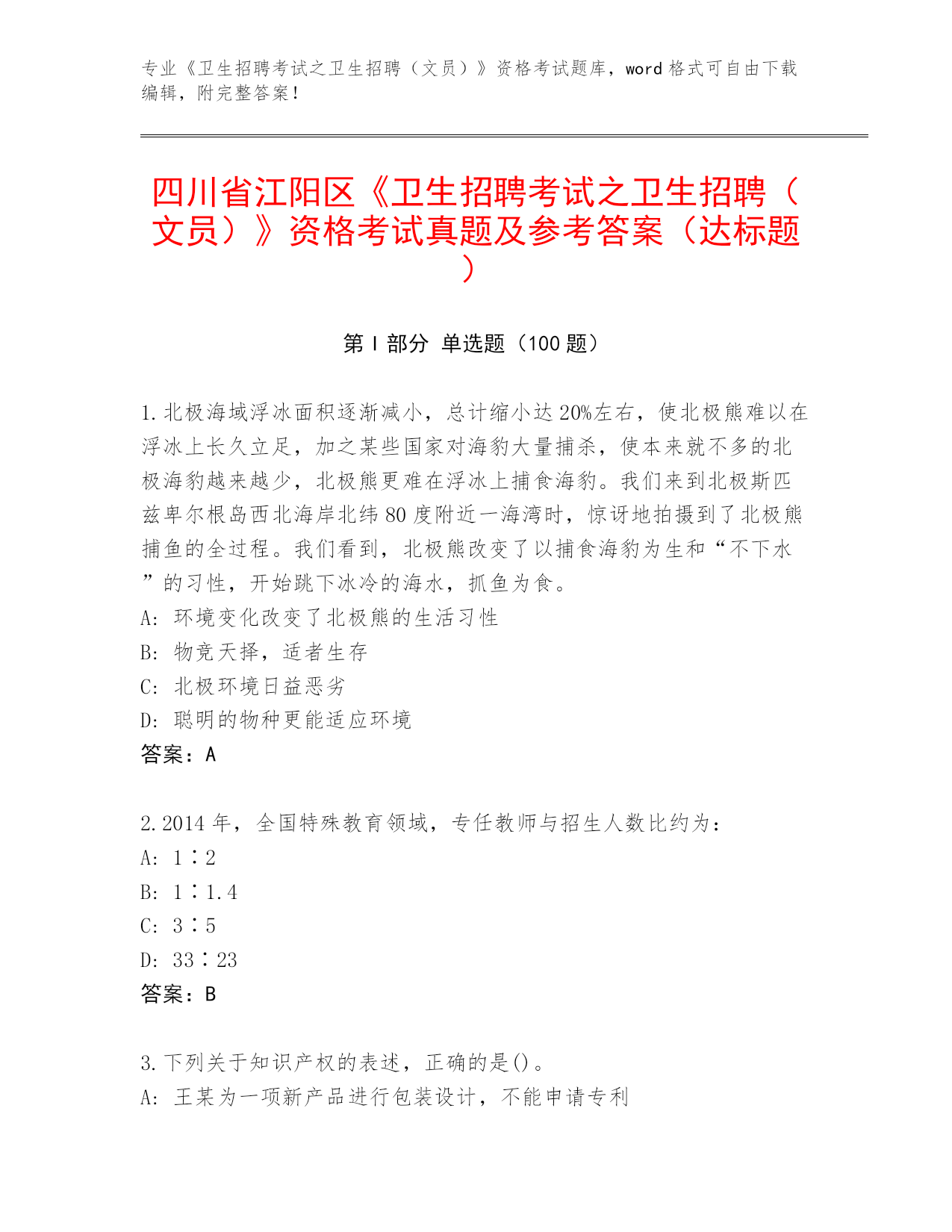 四川省江阳区整理《卫生招聘考试之卫生招聘(文员)》考试必刷200题真题含答案(基础题)